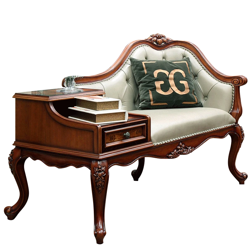 American Solid Wood Phone Chair with Genuine Leather, Lazy Chair, Balcony Beauty Lounger, Single Sofa, European Style Chaise Lounge – Perfect for Relaxation and Elegance!