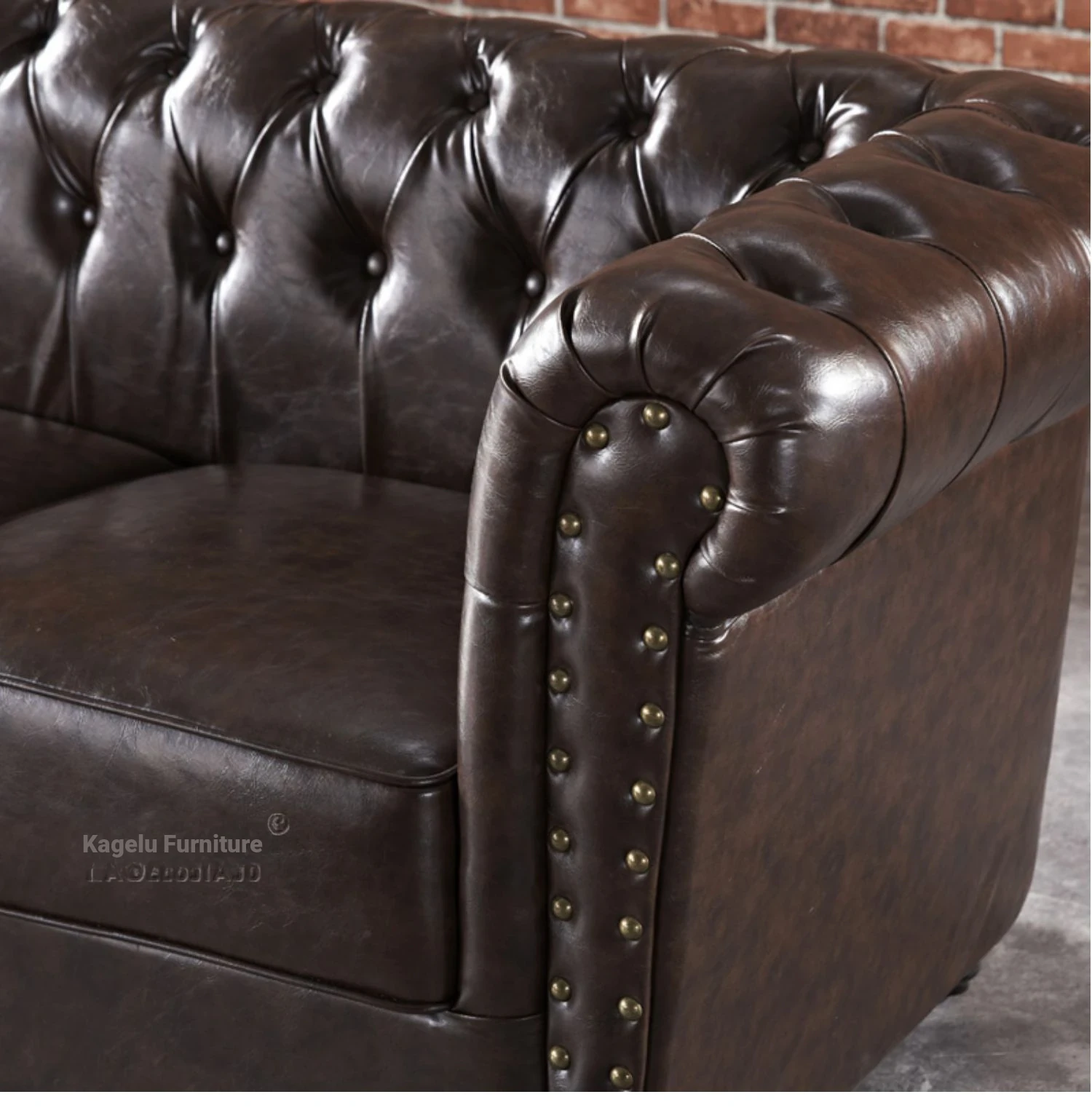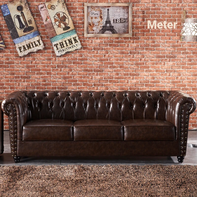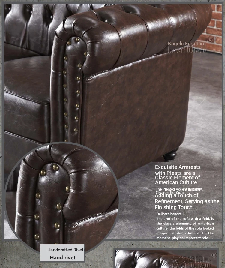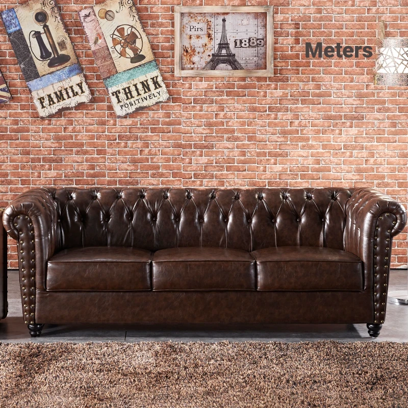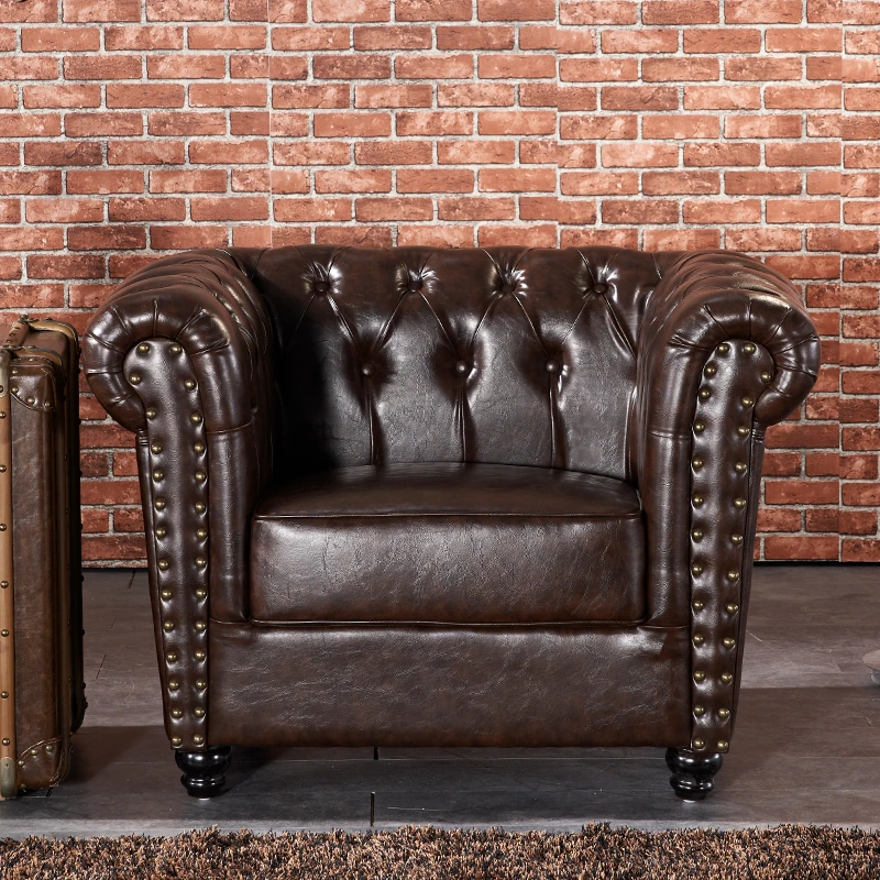 British Style Waxed Leather Sofa with Pull-Down Feature - American Light Luxury Vintage Single Genuine Leather Furniture for Clubs - French Antique Design
