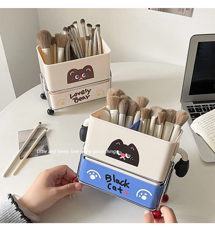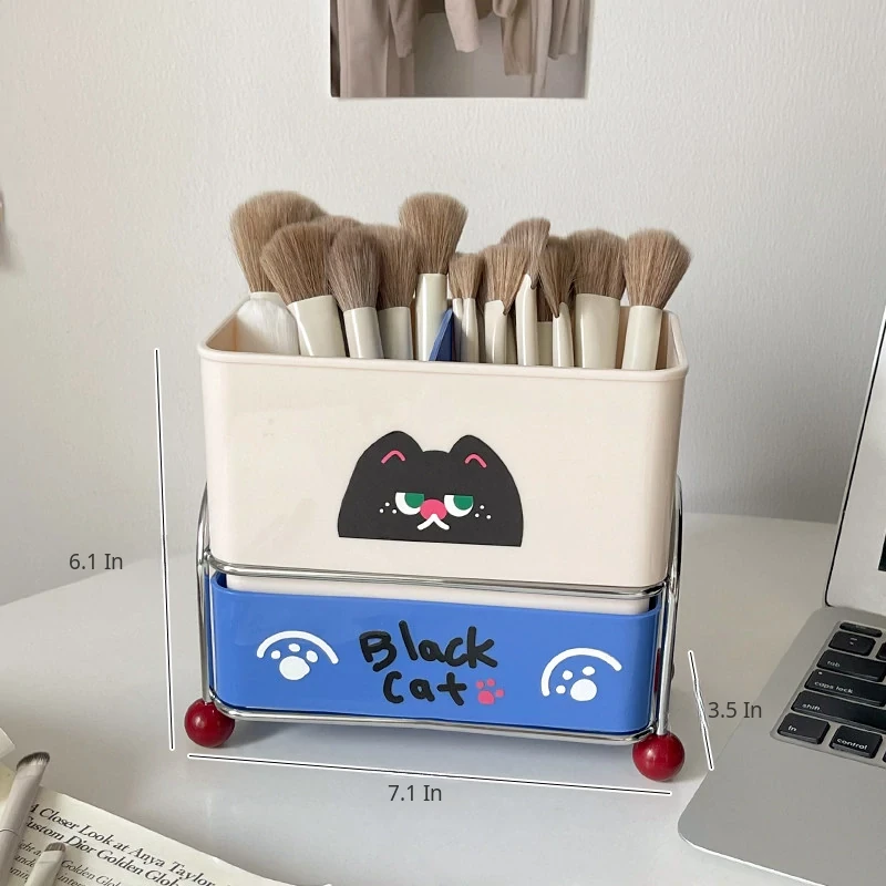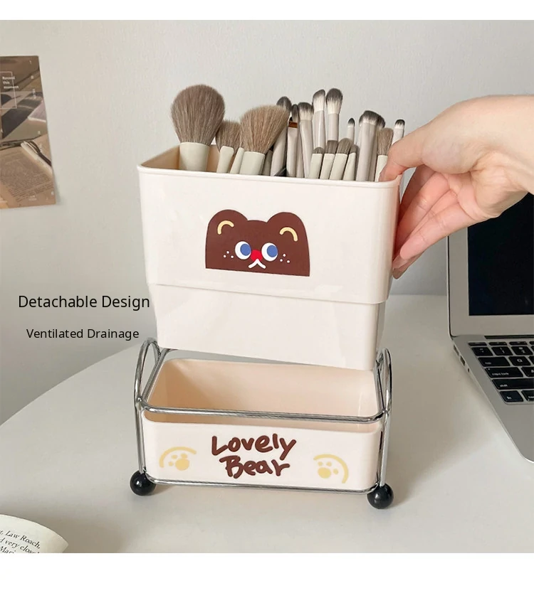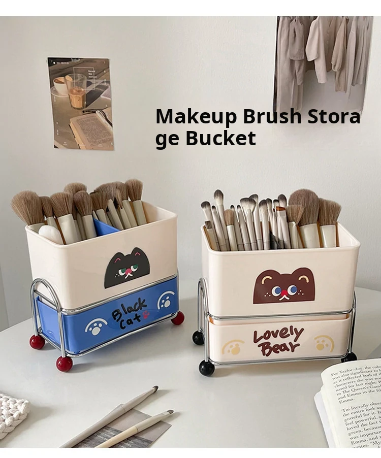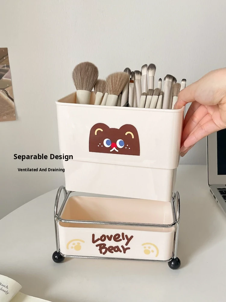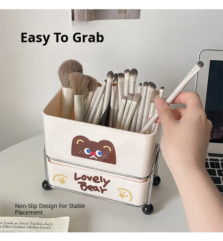 Charming Makeup Brush Organizer - Stylish Desktop Storage with Large Capacity, Multi-Functional Divided Box for Home and Dorm Use