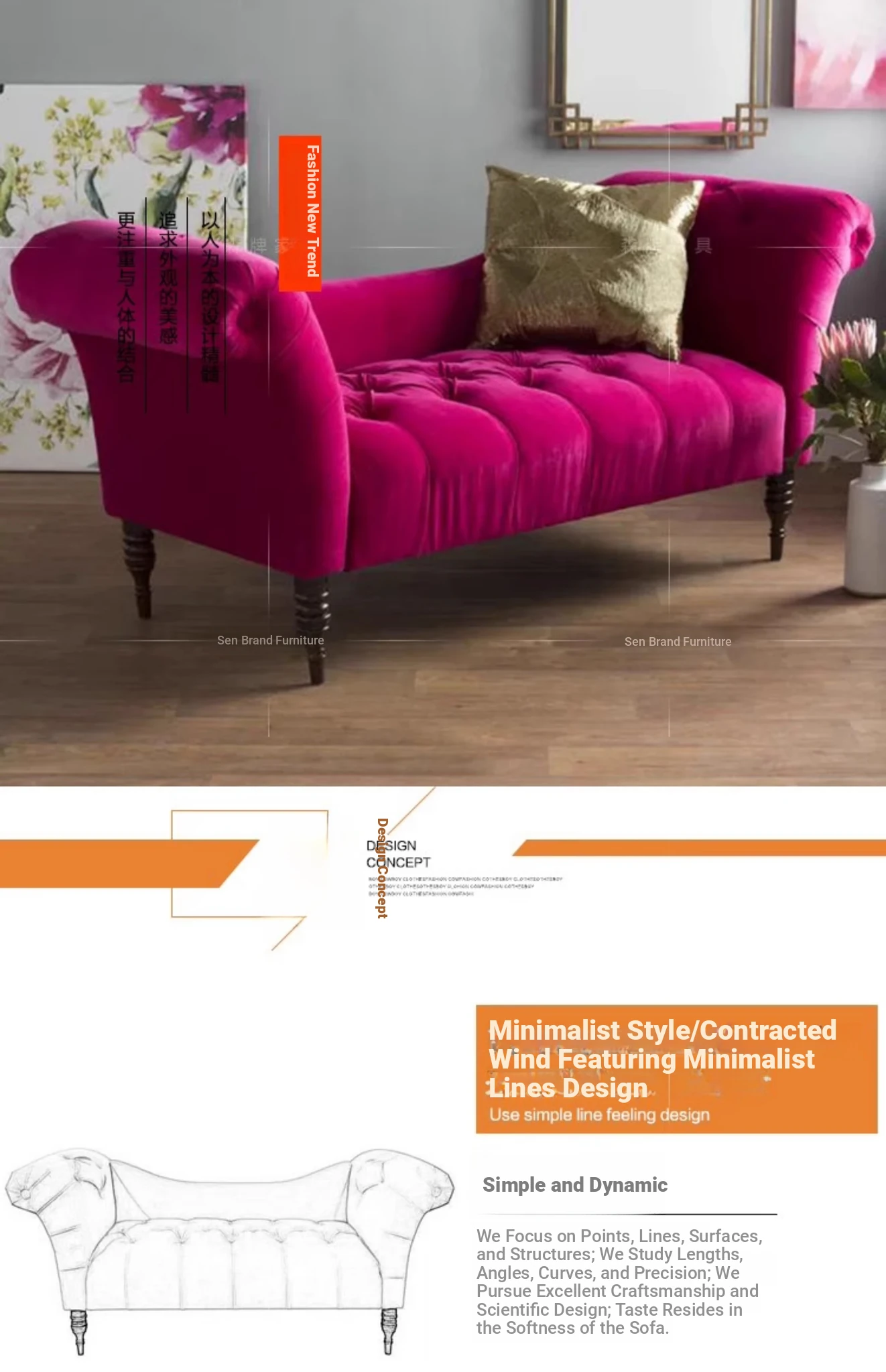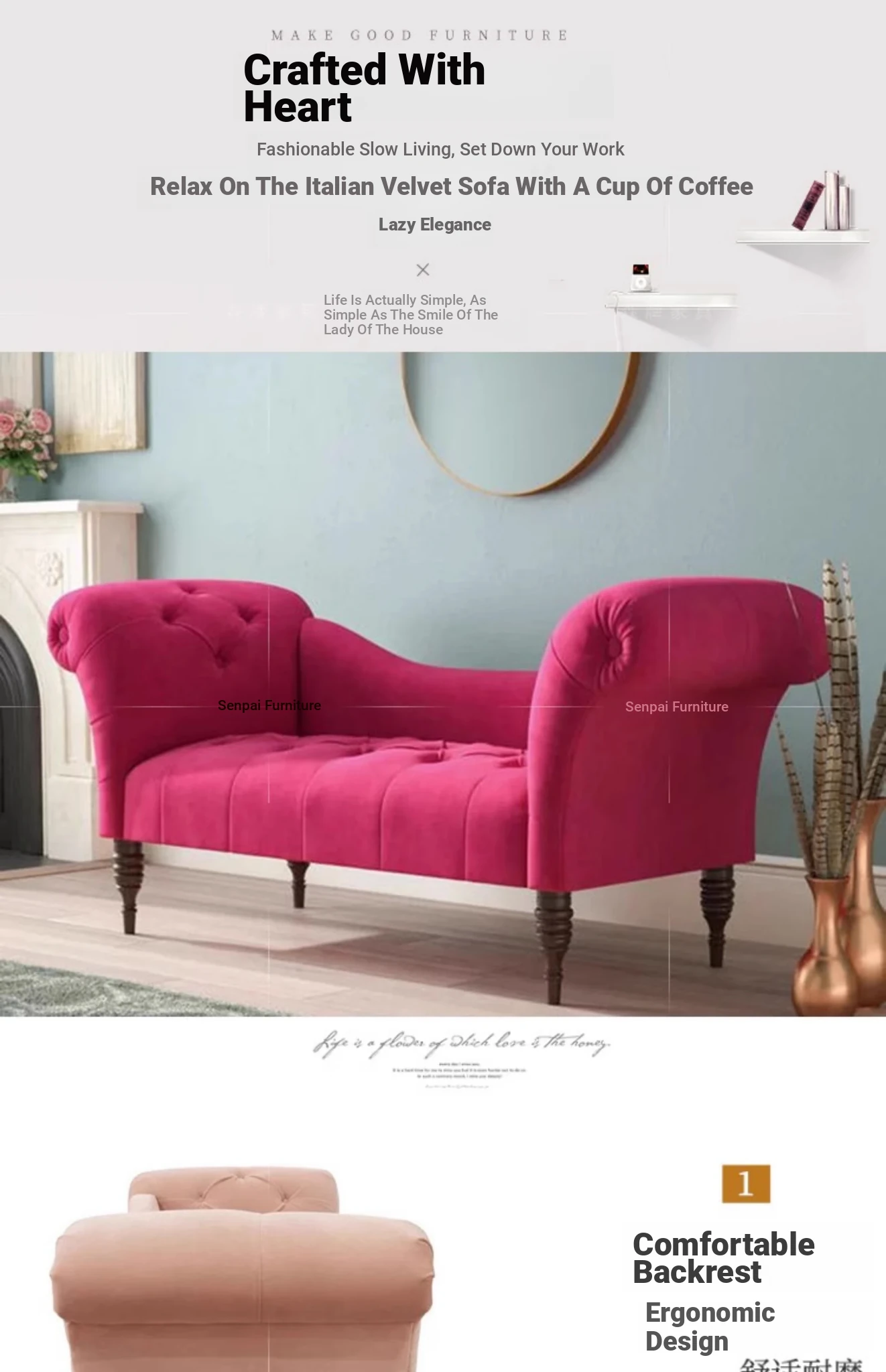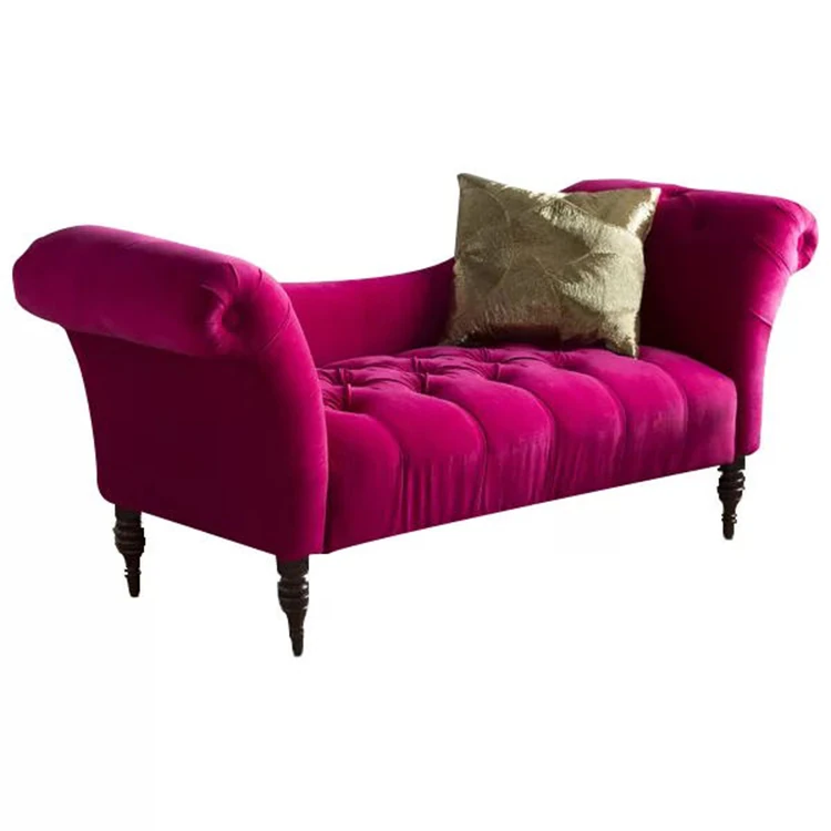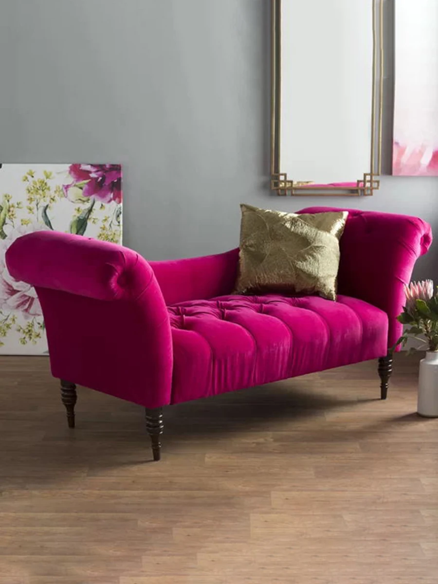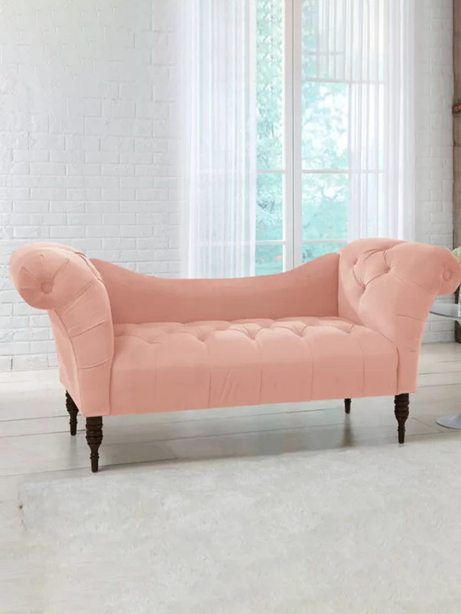 Chic American-Style Pink Fabric Chaise Lounge Sofa - Minimalist Single Bedside Chair for Your Bedroom, Perfect for Relaxation and Style!