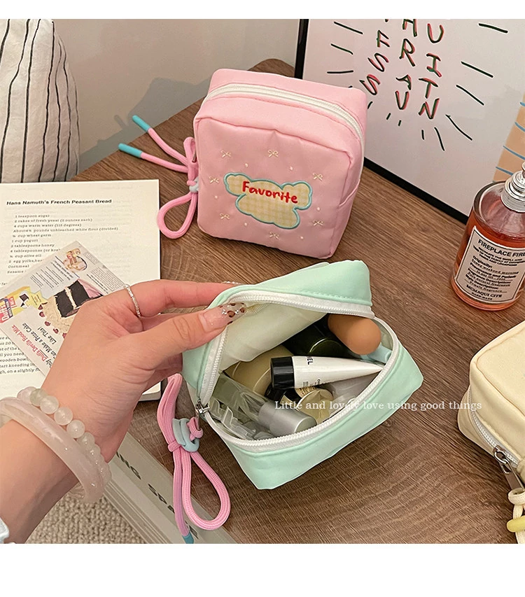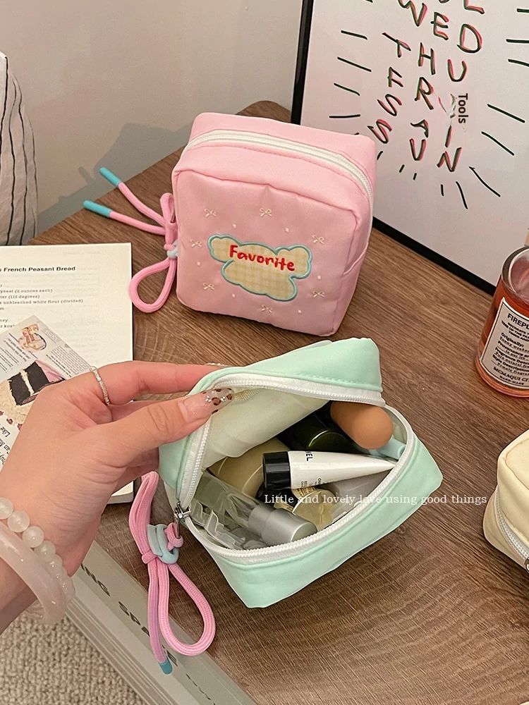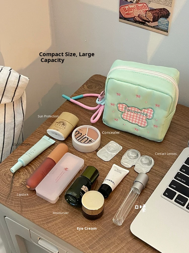 Chic Mini Makeup Bag for Women - Portable Travel Cosmetic Pouch for Touch-Ups, Lipstick, Skincare Essentials & More - Stylish Lambskin Tote for On-the-Go Beauty