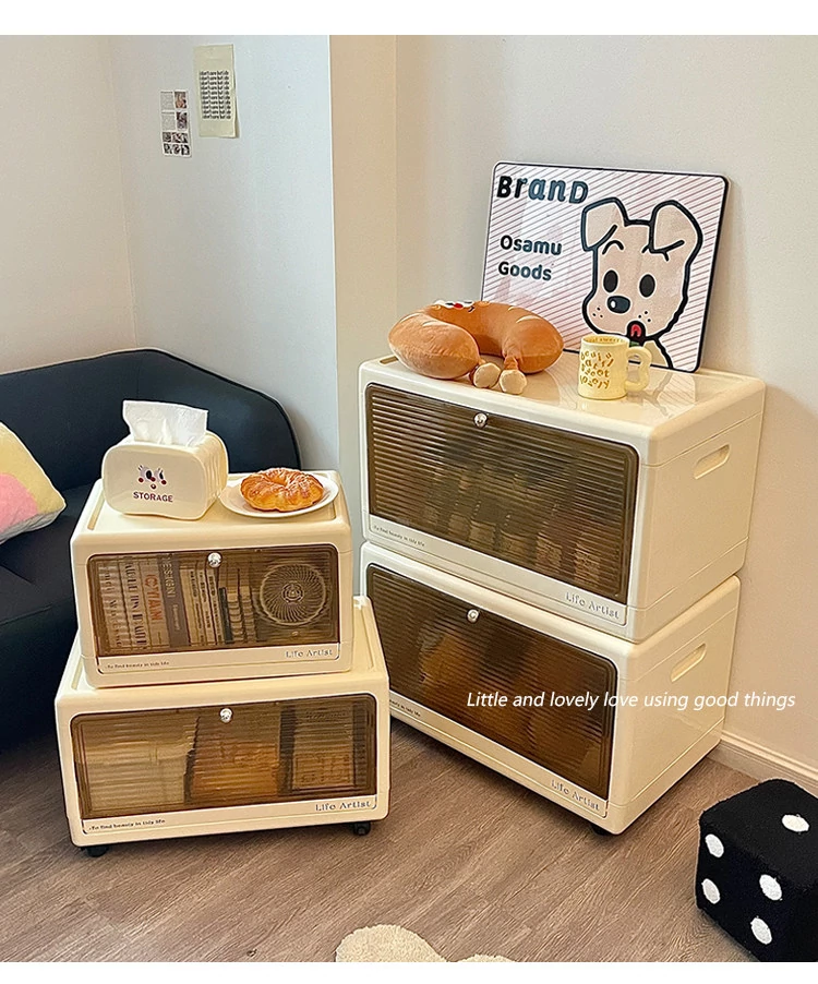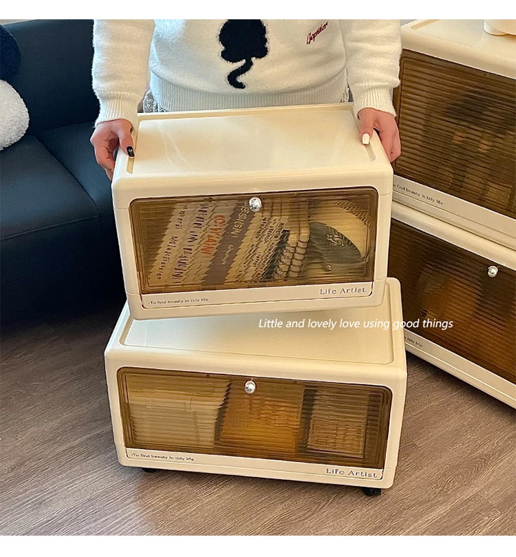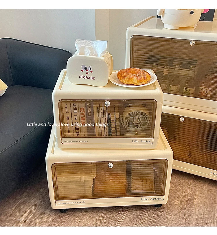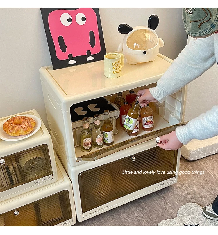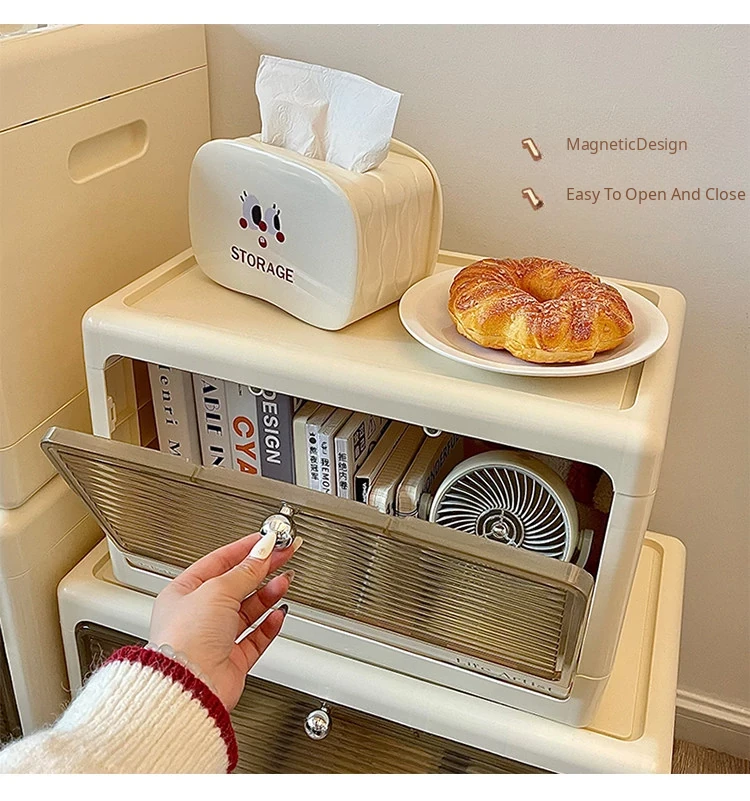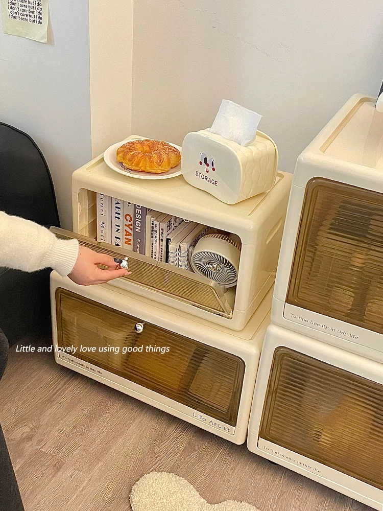 Creamy Bedside Storage Cabinet - Multi-Purpose Organizer for Snacks, Toys, and Clothes - Ideal for Kids’ Rooms - Stylish and Functional Storage Solution