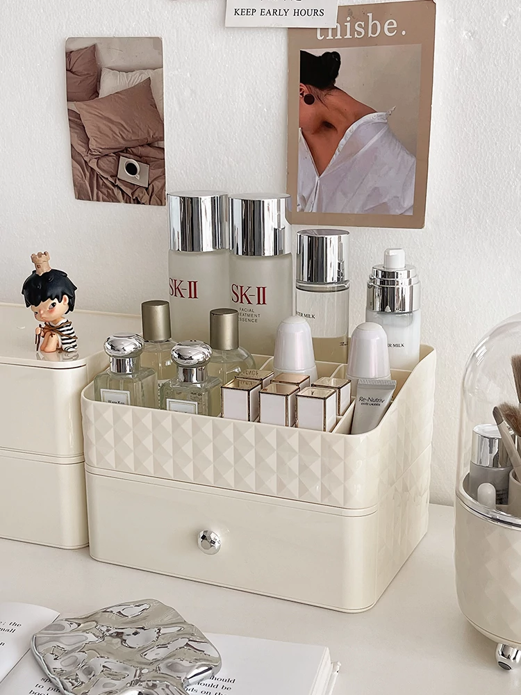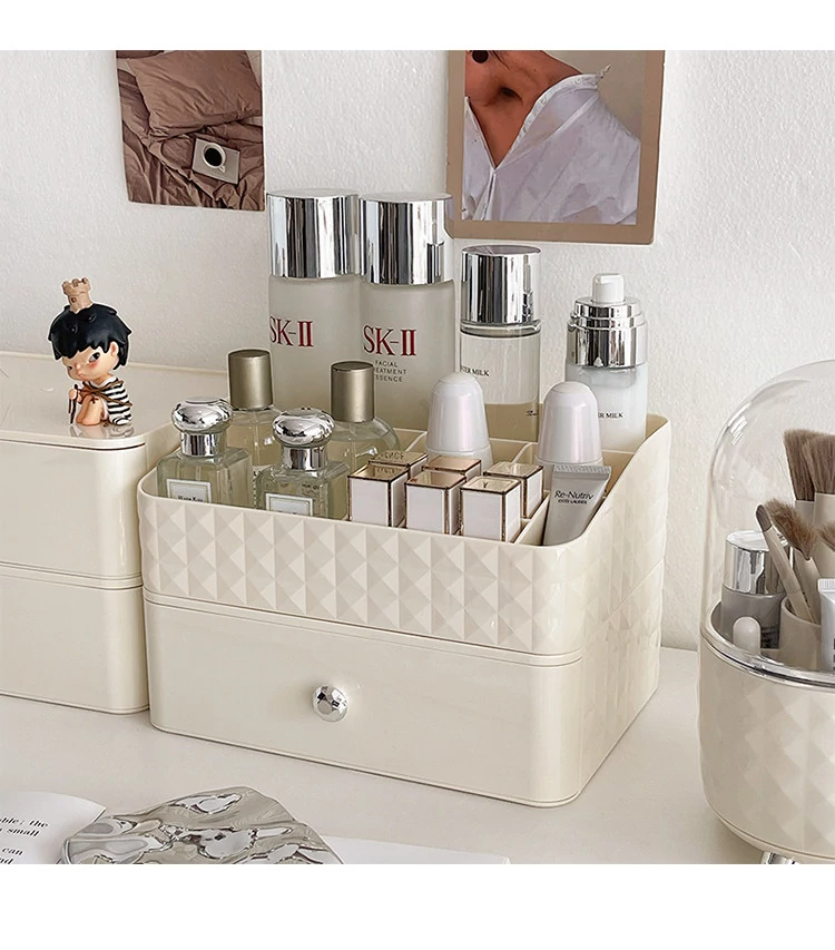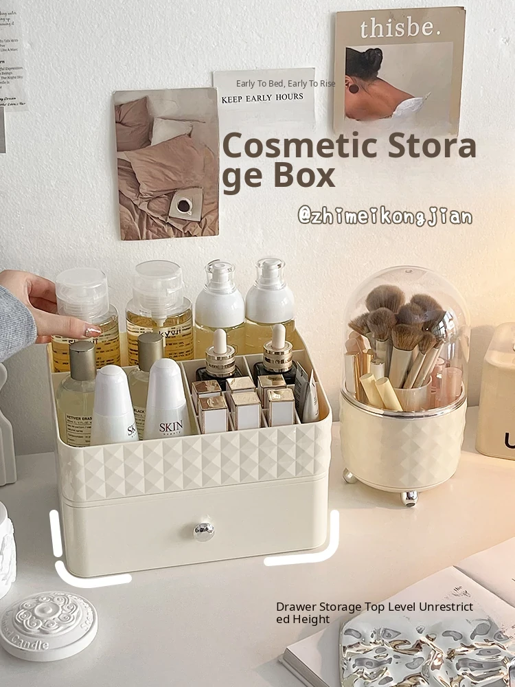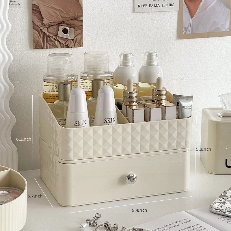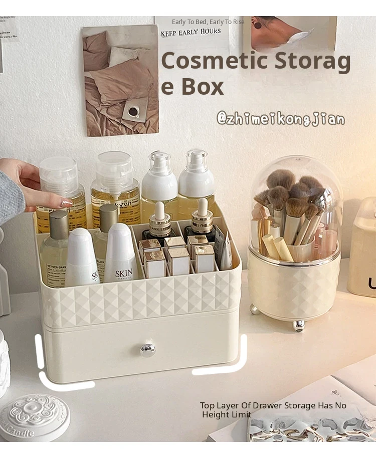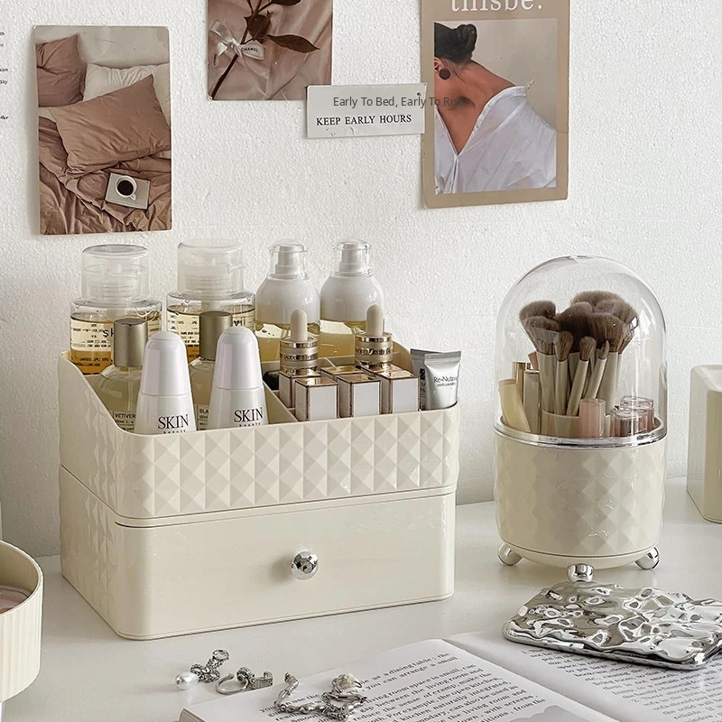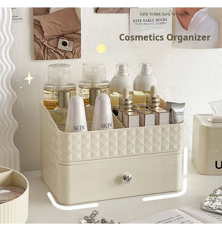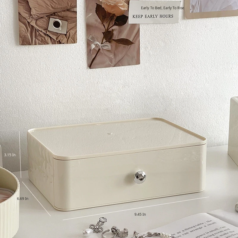 Creamy Makeup Organizer Box - Desktop Drawer for Makeup Brushes, Ideal for Students and Dorms, Perfect Skincare Storage Solution