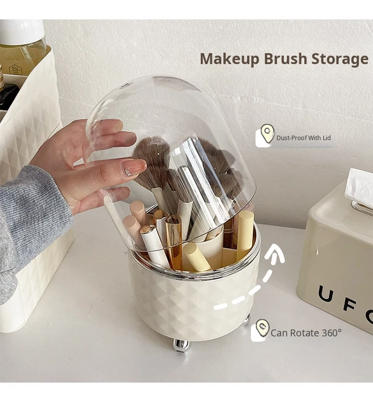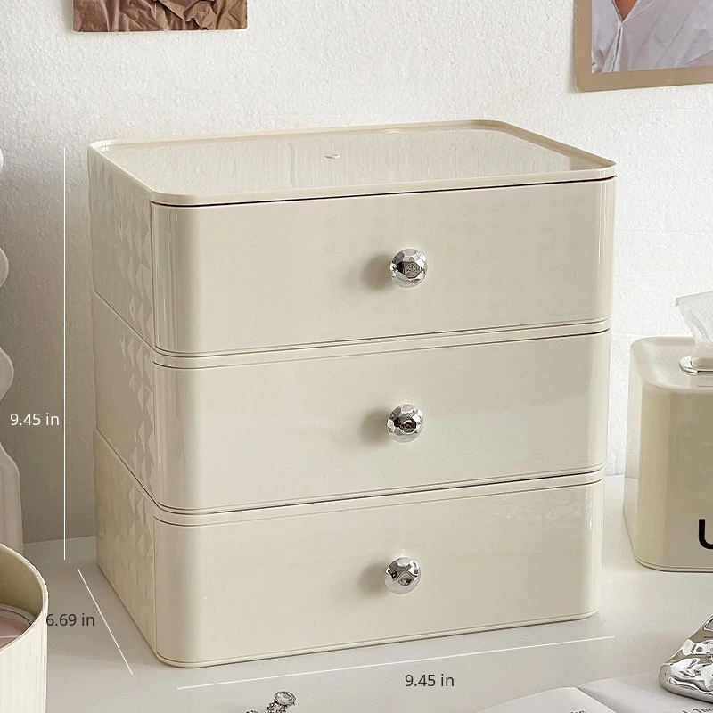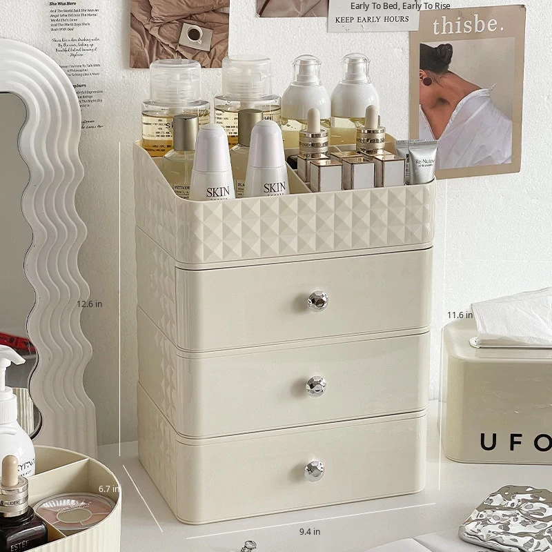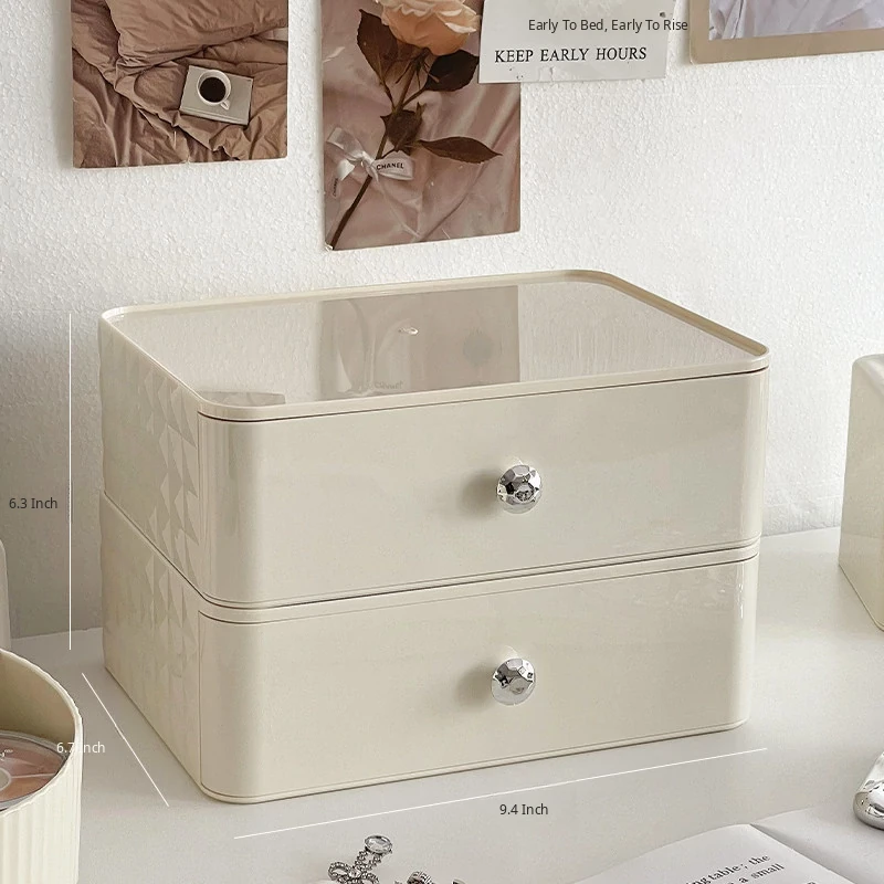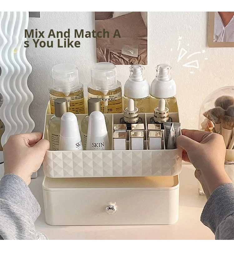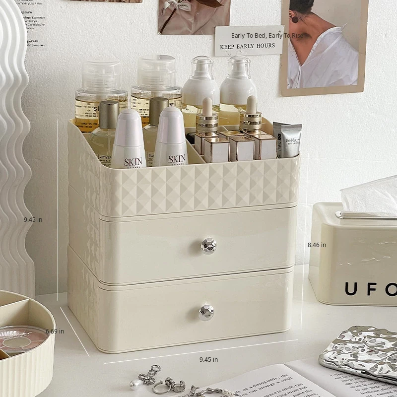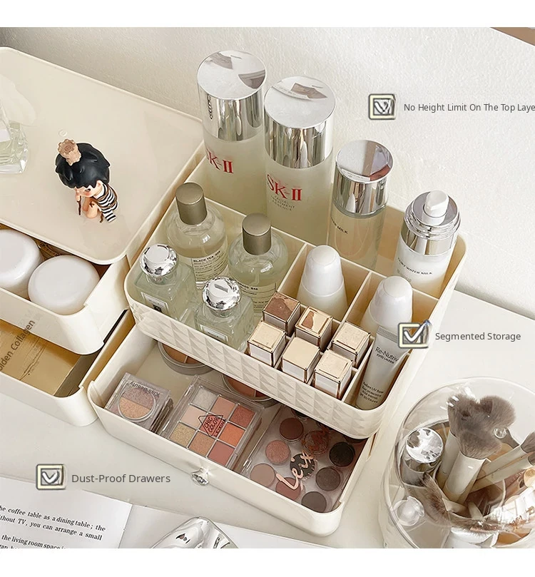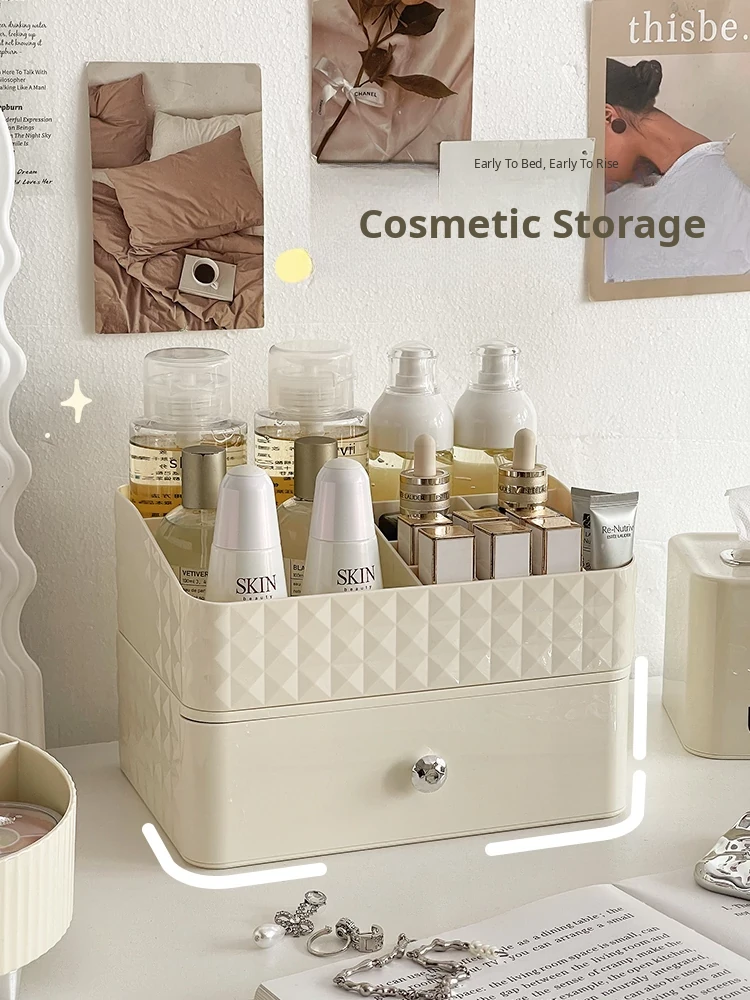Creamy Makeup Organizer Box - Desktop Drawer for Makeup Brushes, Ideal for Students and Dorms, Perfect Skincare Storage Solution