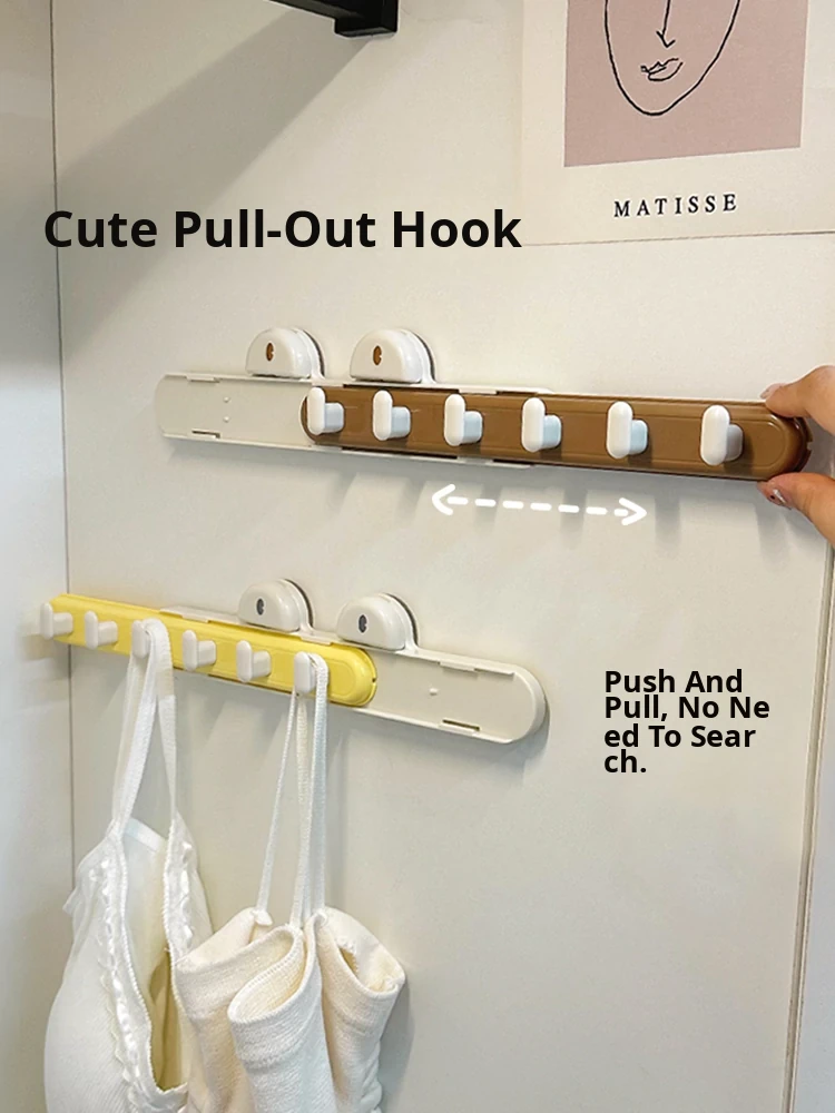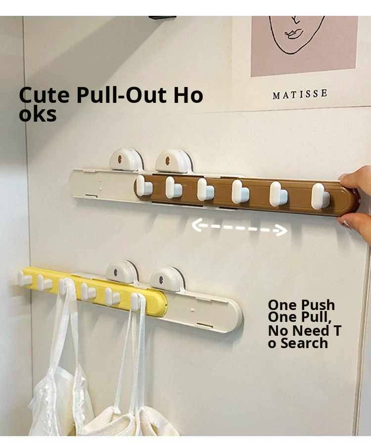 Creamy Pull-Out Gap Hooks - No Drilling, Adjustable Adhesive Hooks for Kitchen and Bathroom Storage Solutions