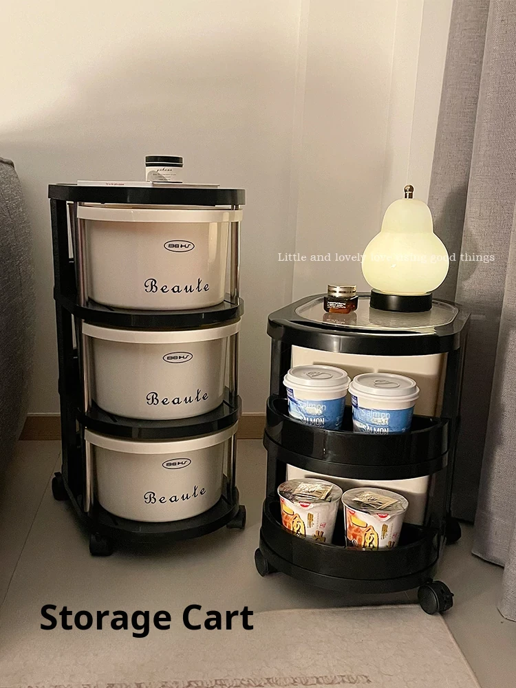 Creamy Style Cart Storage Rack - Large Capacity Drawer Organizer for Living Room, Bedroom, Nightstand - Perfect for Snacks and Beverages