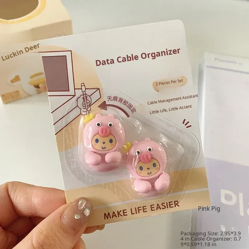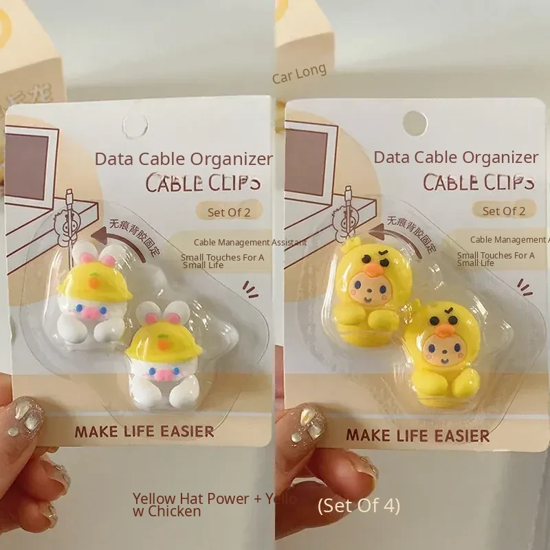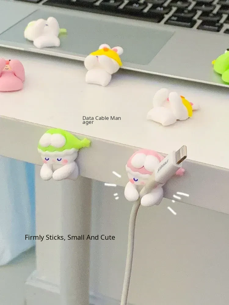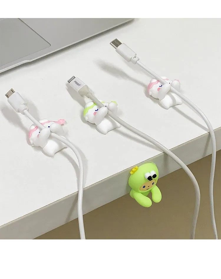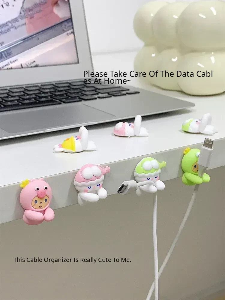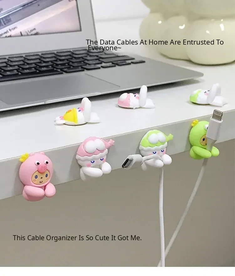 Cute Desktop Cable Organizer - No Drill, No Trace, Mobile Charging Line Holder with Clips for Tidy Cable Management