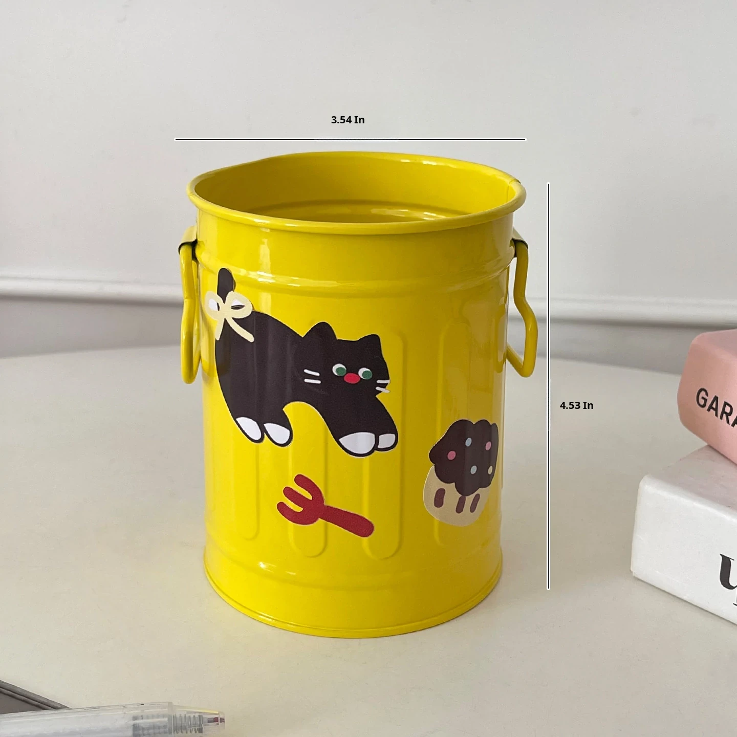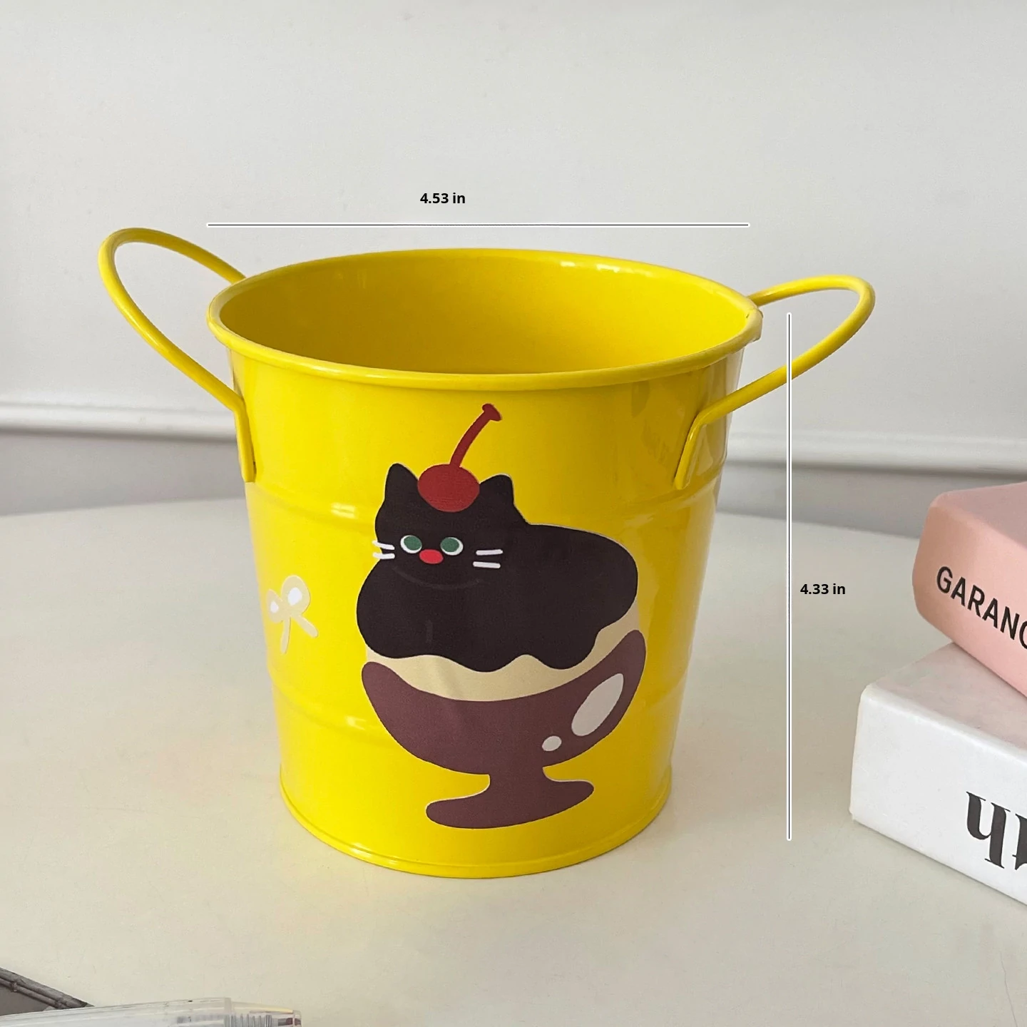 Yellow Wide-Mouth Bottle with Cherry Cake Cat Sticker