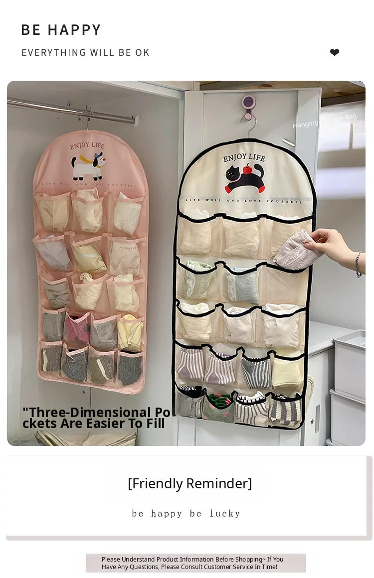 Cute Double-Sided Underwear Storage Bag - Hanging Organizer for Bras, Socks, and Panties - Perfect for Wardrobes and Dorm Rooms