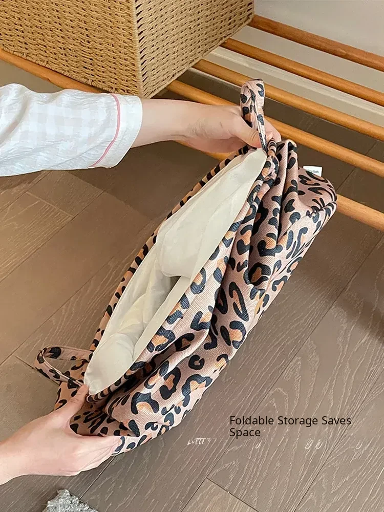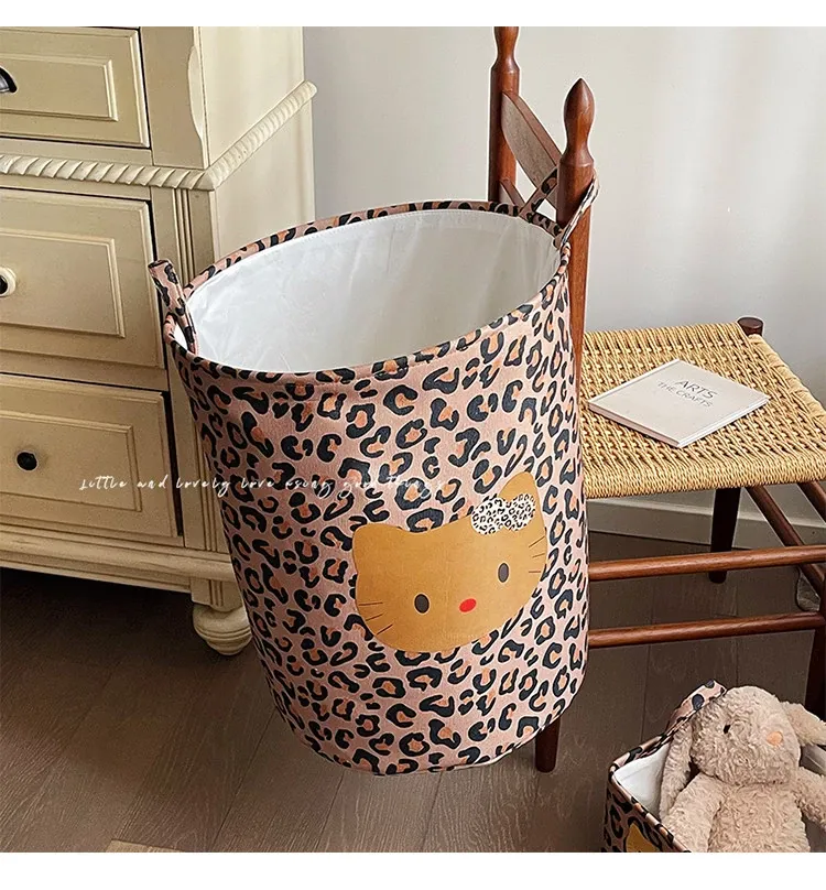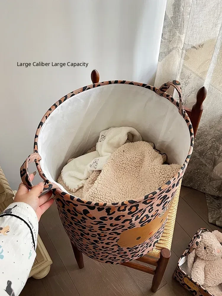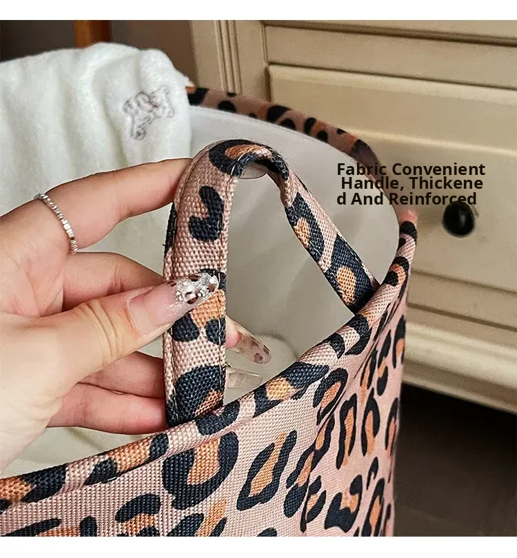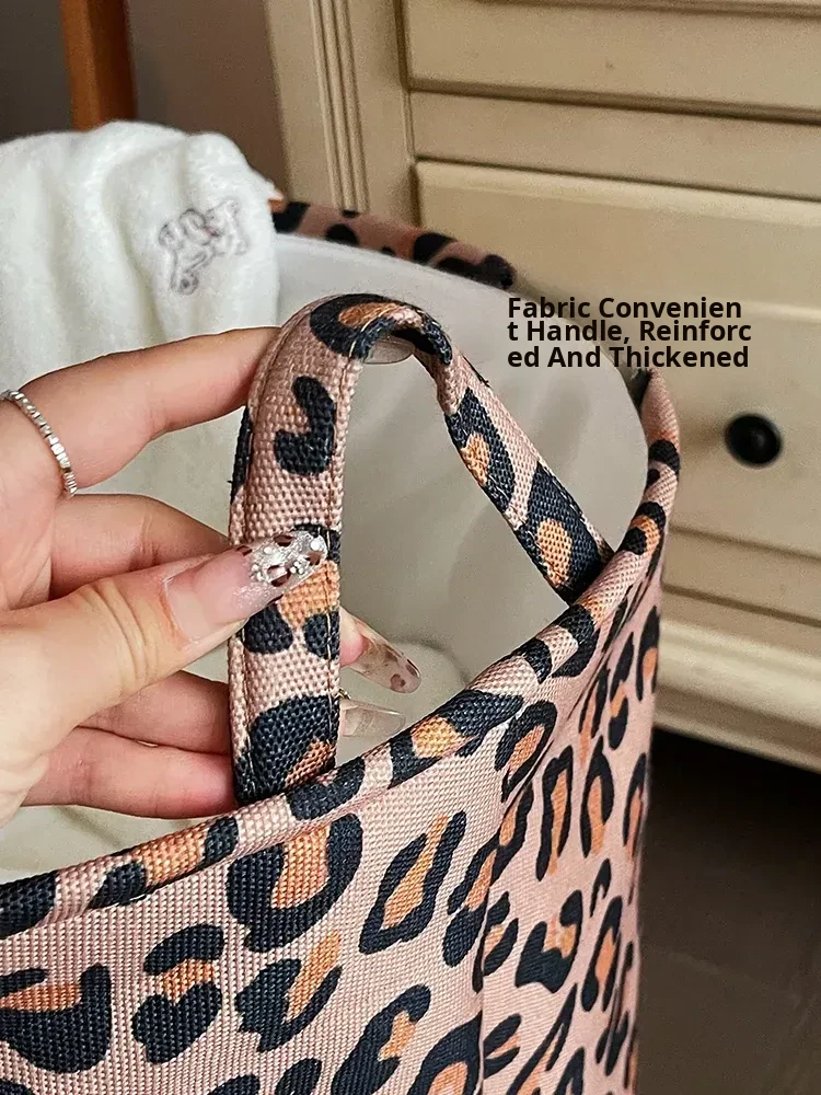 Cute Leopard Print Foldable Laundry Basket - Large Capacity Household Clothes Storage Bin, Stylish and Trendy Design for Modern Homes