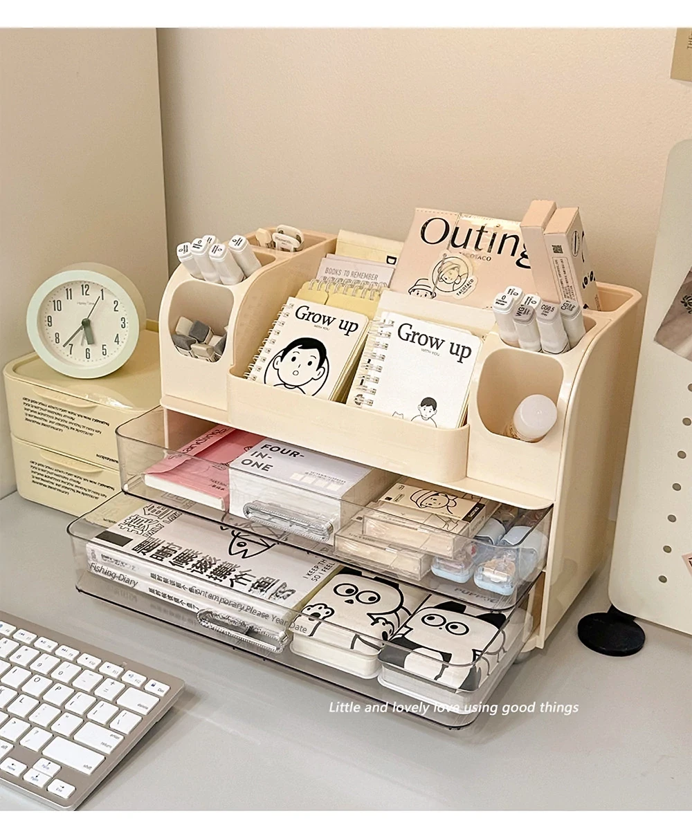 Desktop Organizer Box - Divided Drawer for Students, Perfect for Dorm Rooms and Desks, Ideal for Stationery and Miscellaneous Office Supplies, Space-Saving Solution for Your Workspace.