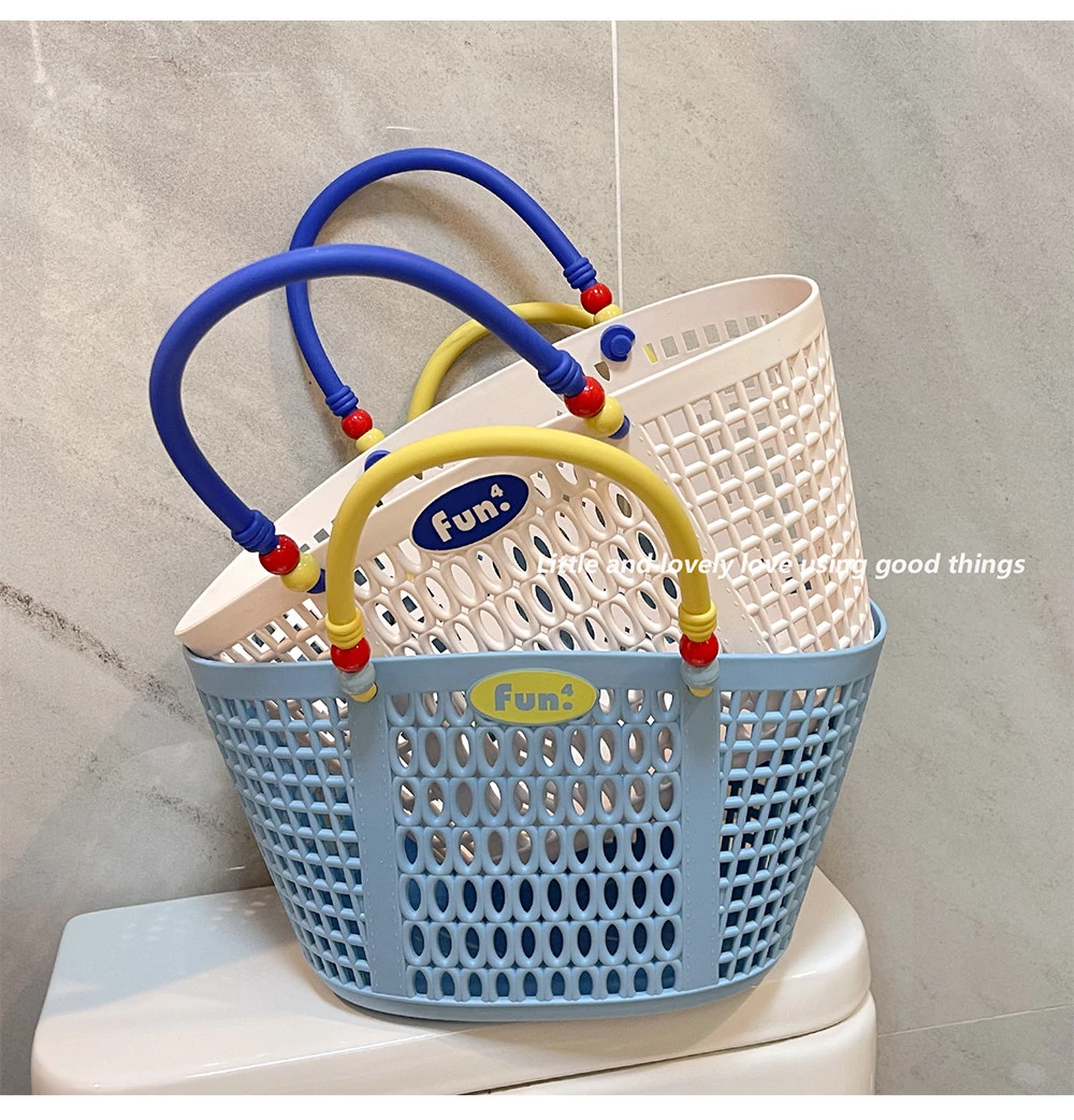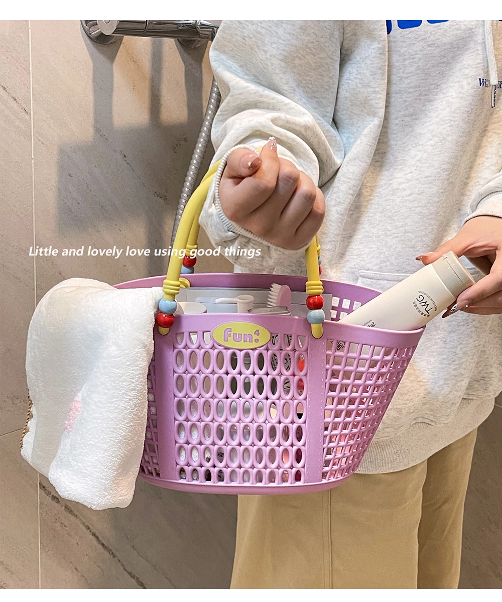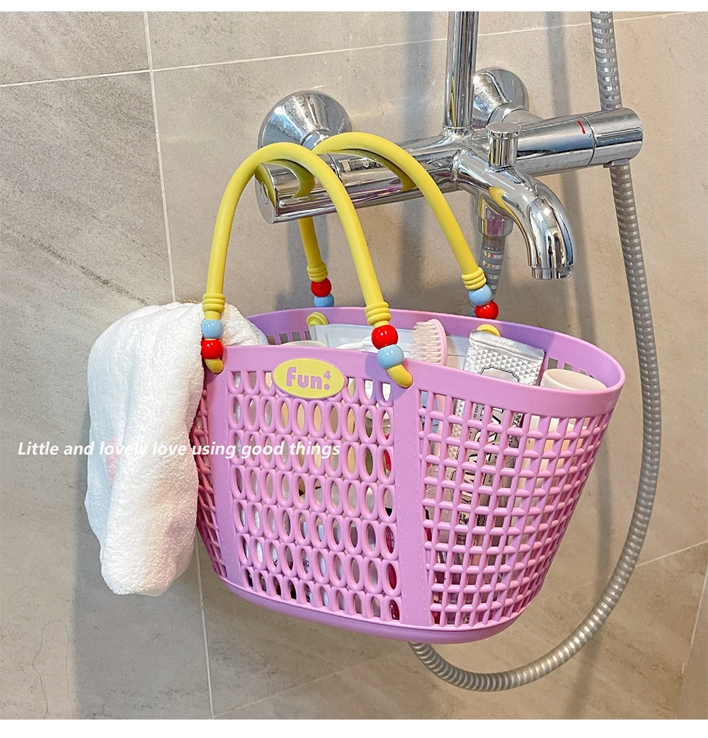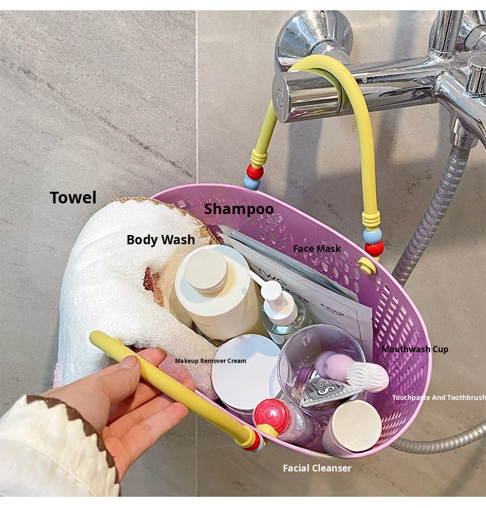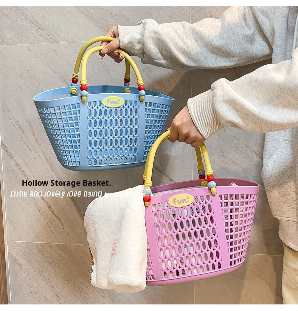 Dopamine Bathing Blue Handheld Mesh Shower Basket - Stylish Plastic Storage Caddy for Bathroom Essentials and Personal Care Items