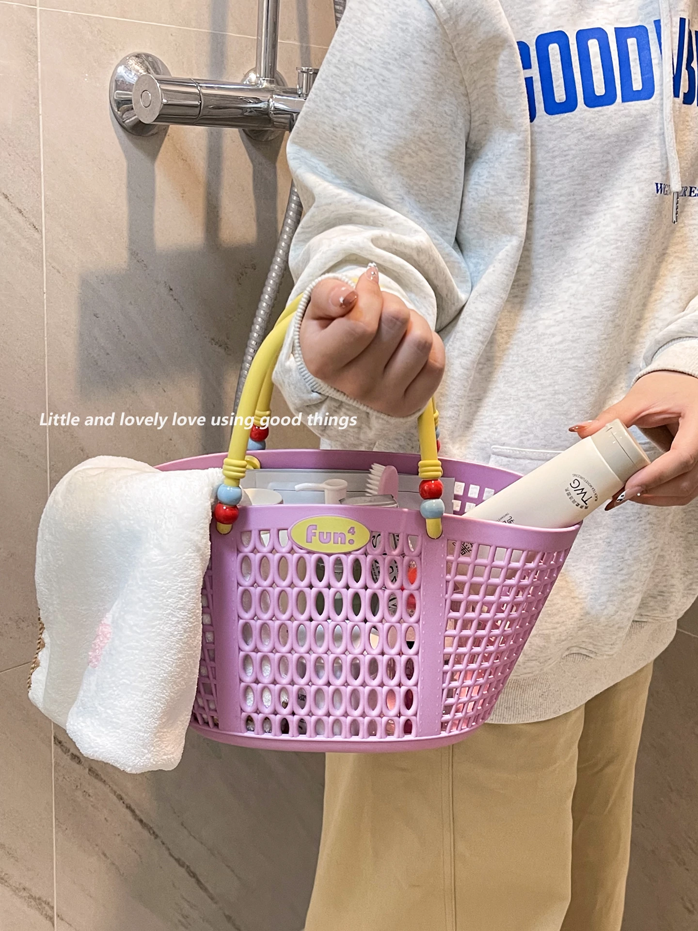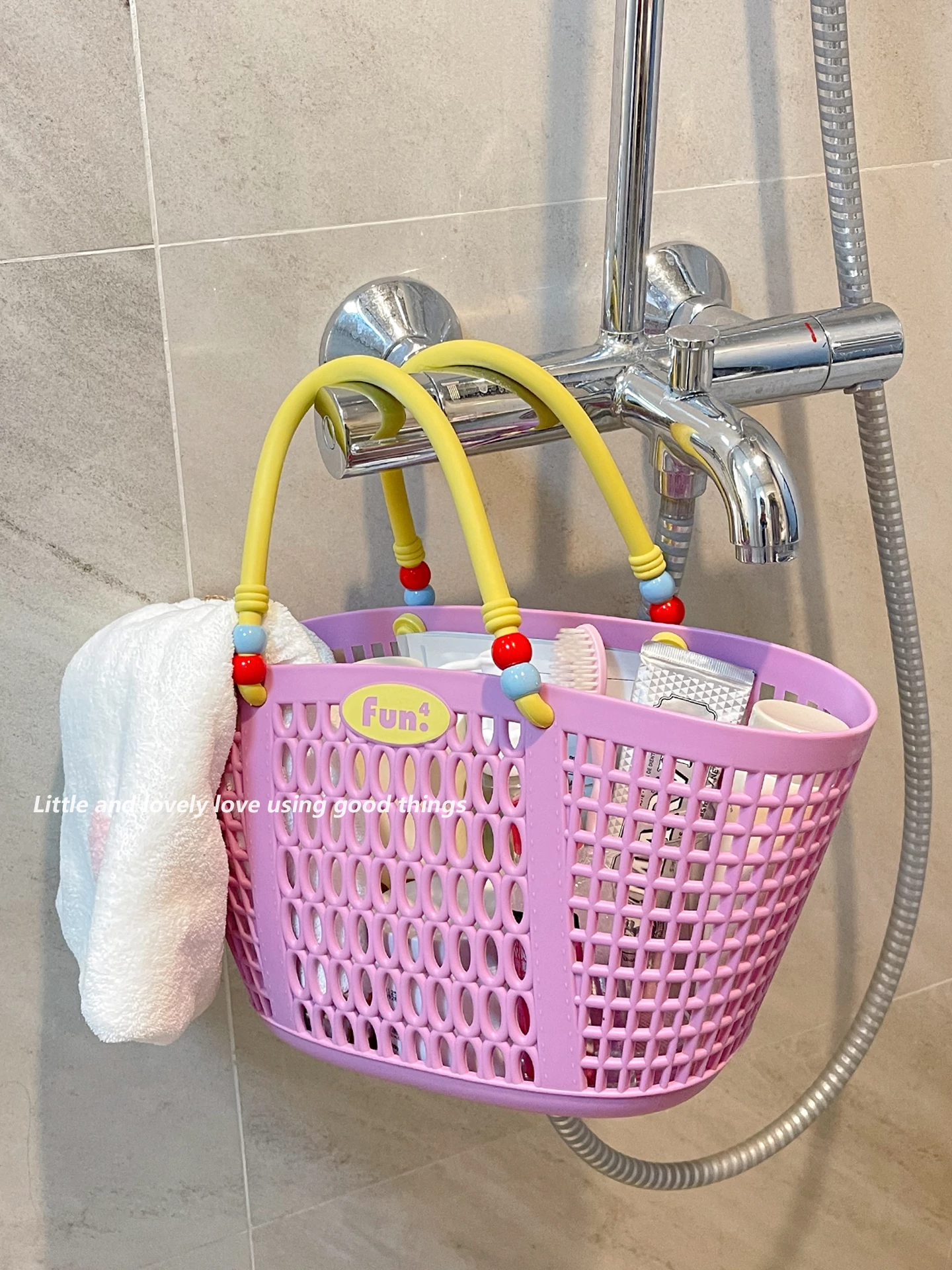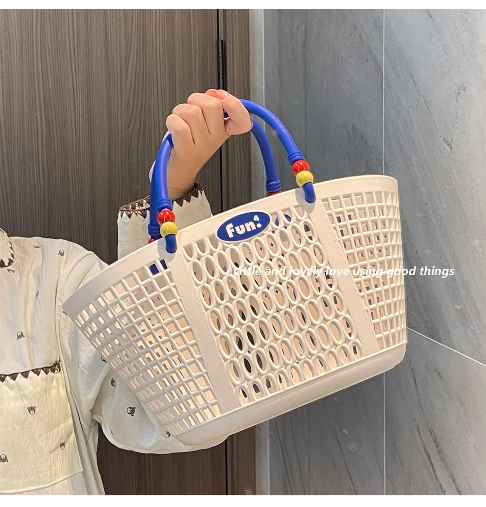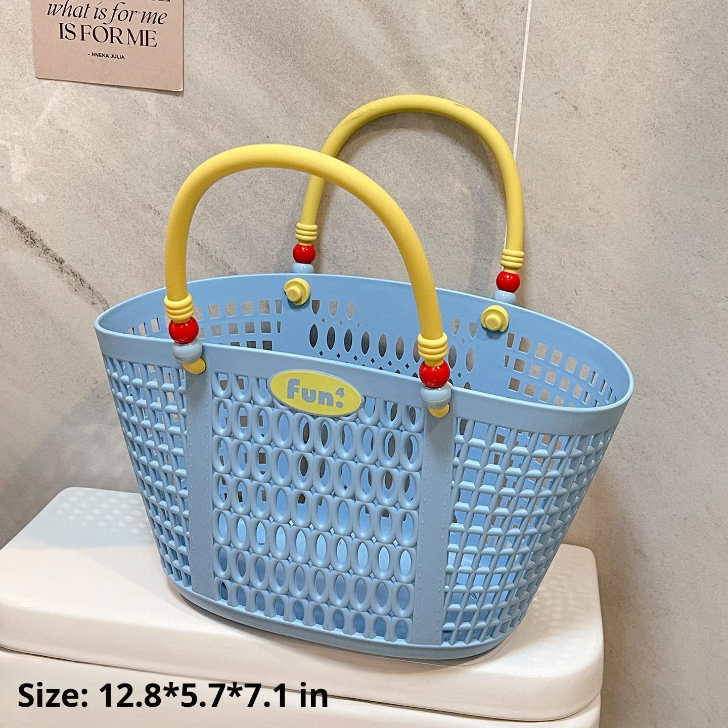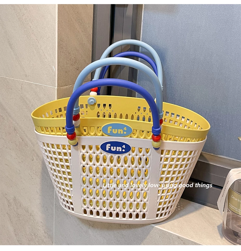 Dopamine Bathing Blue Handheld Mesh Shower Basket - Stylish Plastic Storage Caddy for Bathroom Essentials and Personal Care Items
