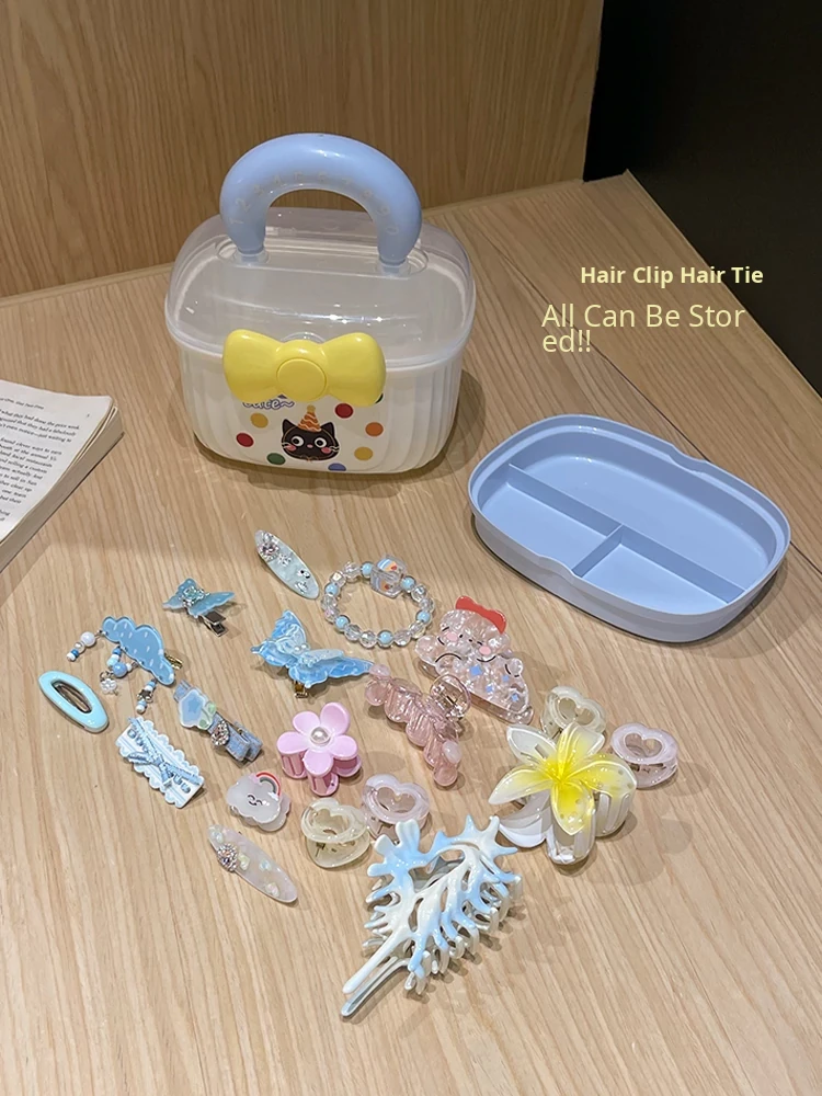 Dopamine Kids Hair Accessory Box - Stylish Double-Layer Desktop and Portable Storage for Girls' Hair Ties, Clips, Headbands, and Jewelry - Spacious and Organized!