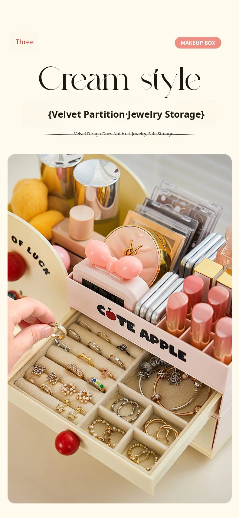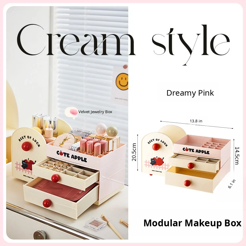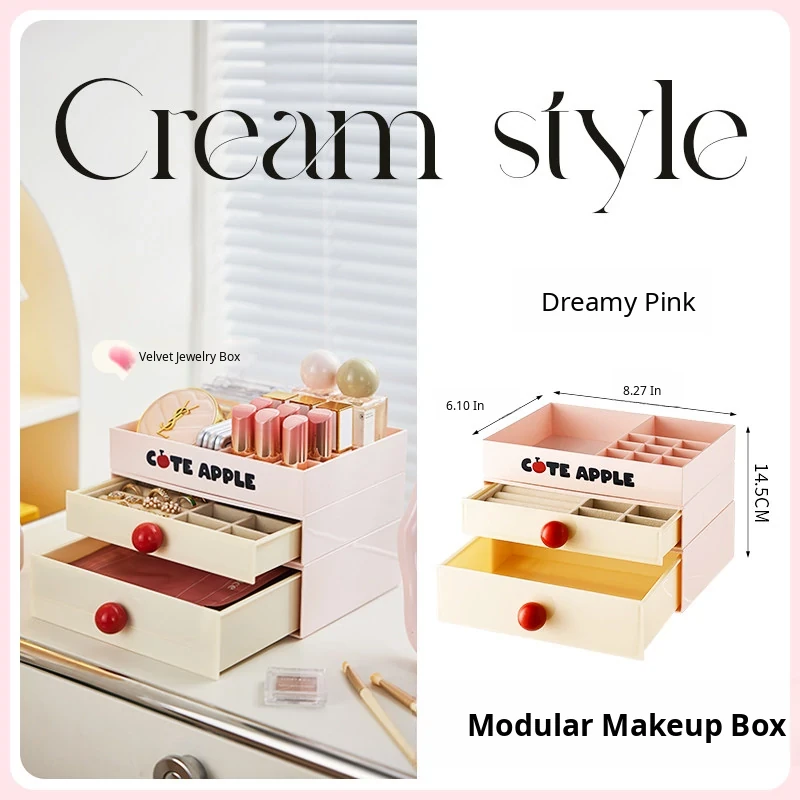 Pink [Three-Layer Storage Box + Velvet Jewelry Box]