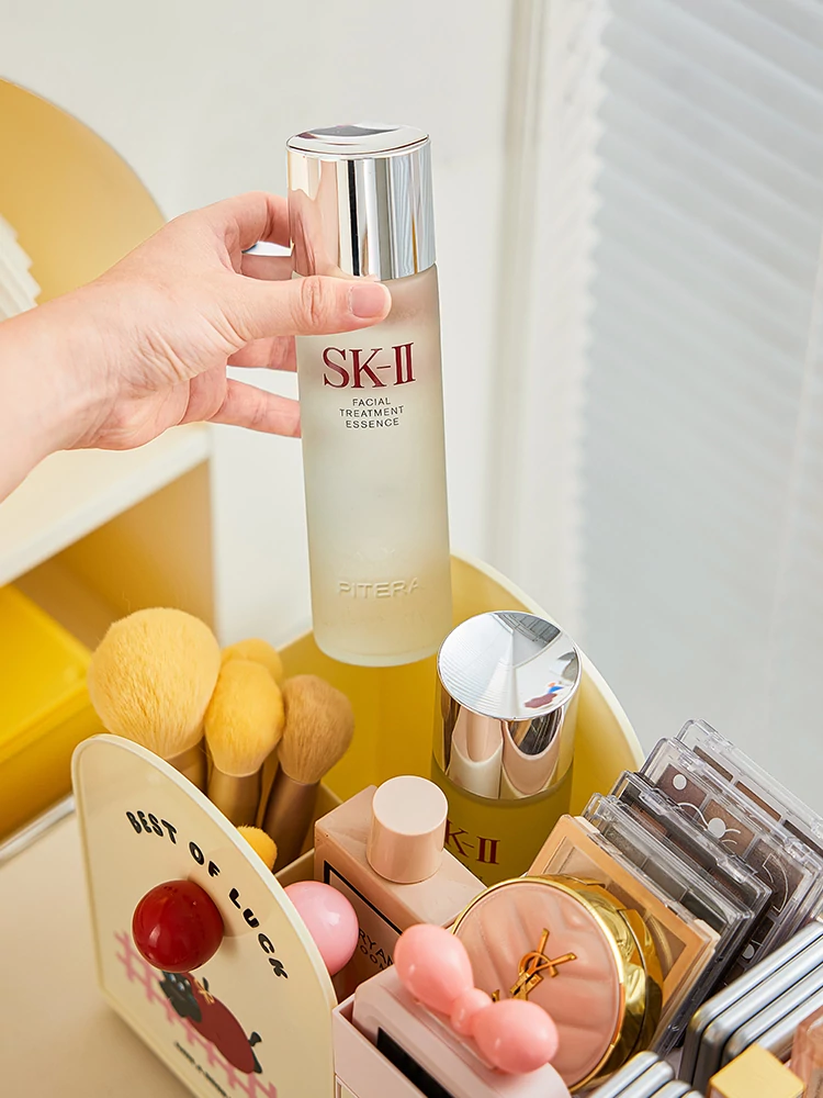 Dopamine Makeup Organizer - Stylish Desktop Jewelry Storage with Dividers for Cosmetics, Skincare, Perfumes, and Lipsticks - Perfect Vanity Accessory for a Clutter-Free Space!