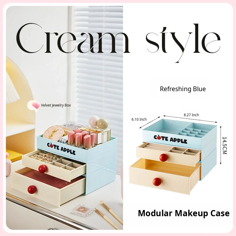 Blue [Three-Layer Storage Box + Velvet Jewelry Box]