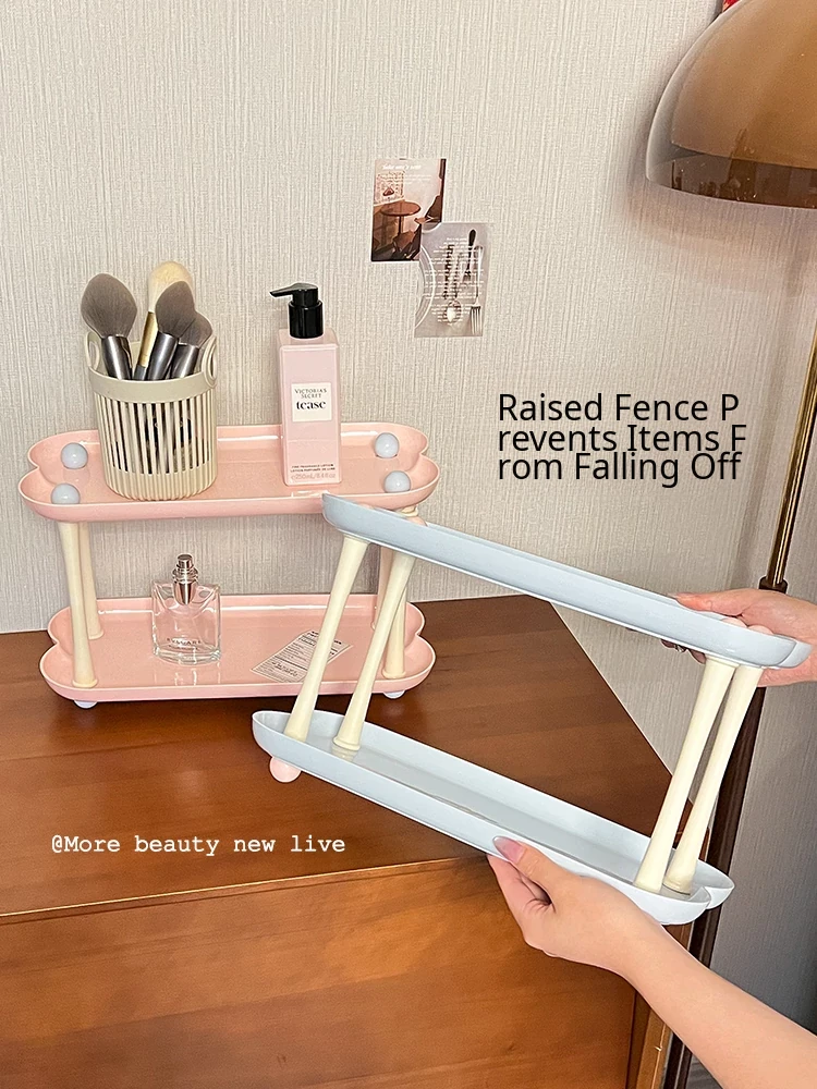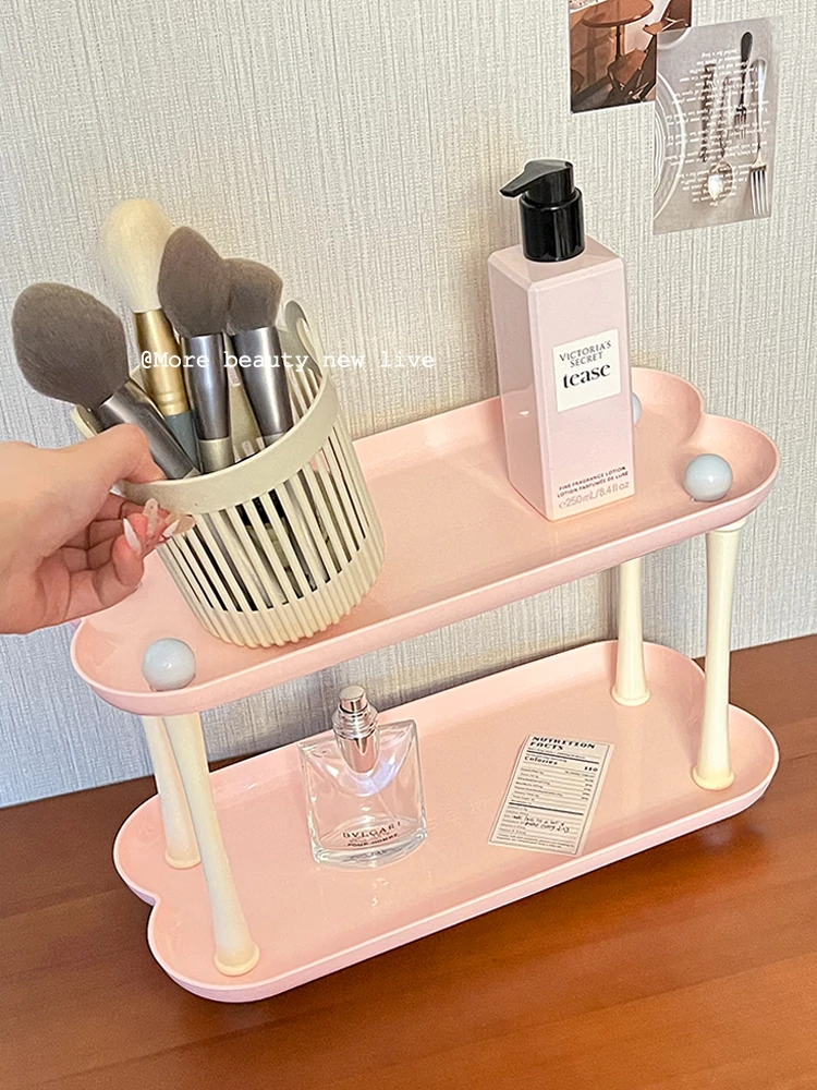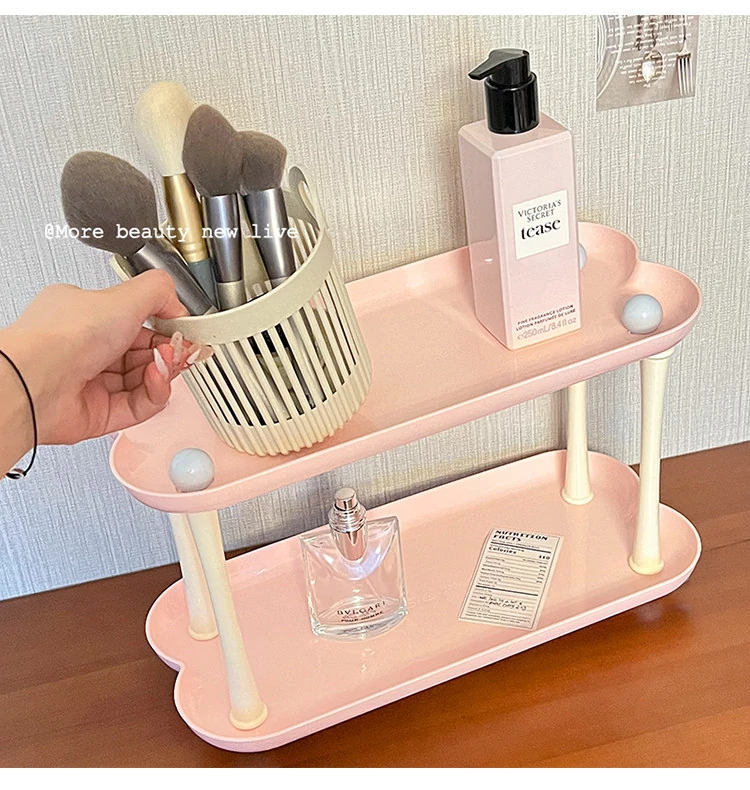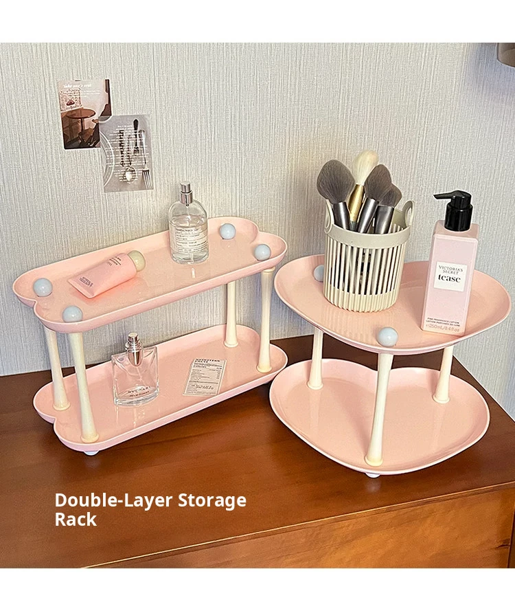 Dopamine Perfume Display Rack - Double-Layer Cosmetic Organizer for Bathroom and Vanity - Heart-Shaped Skincare Storage Solution