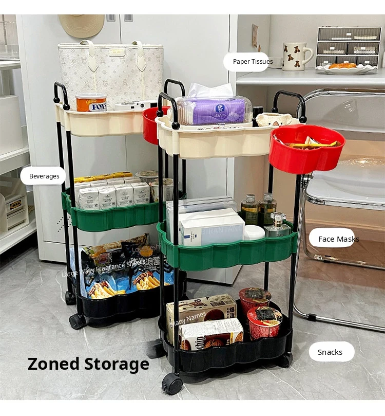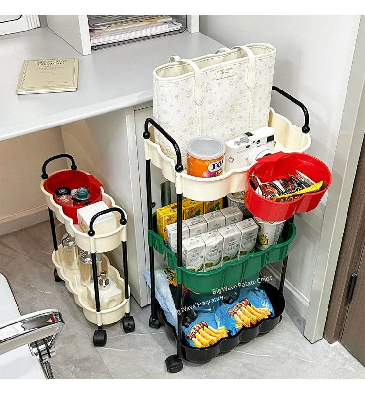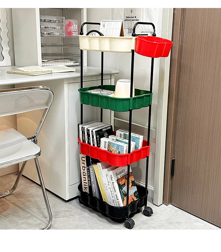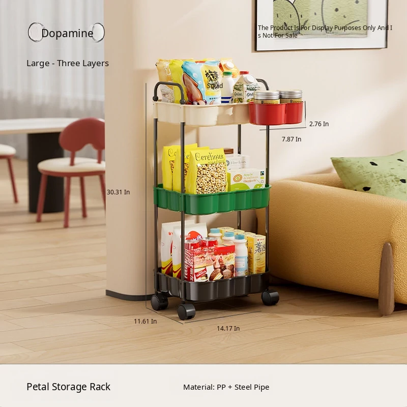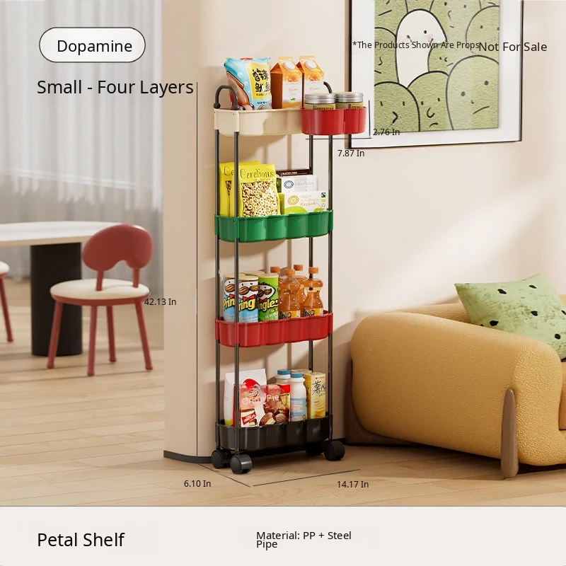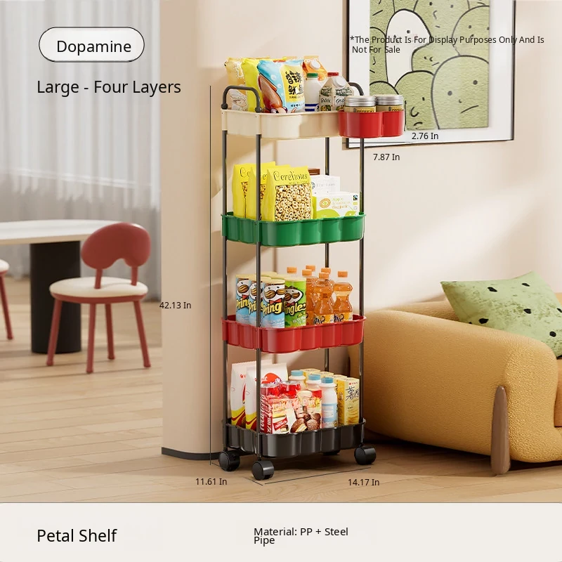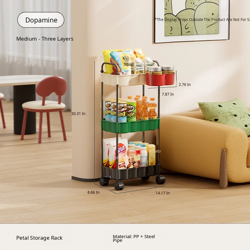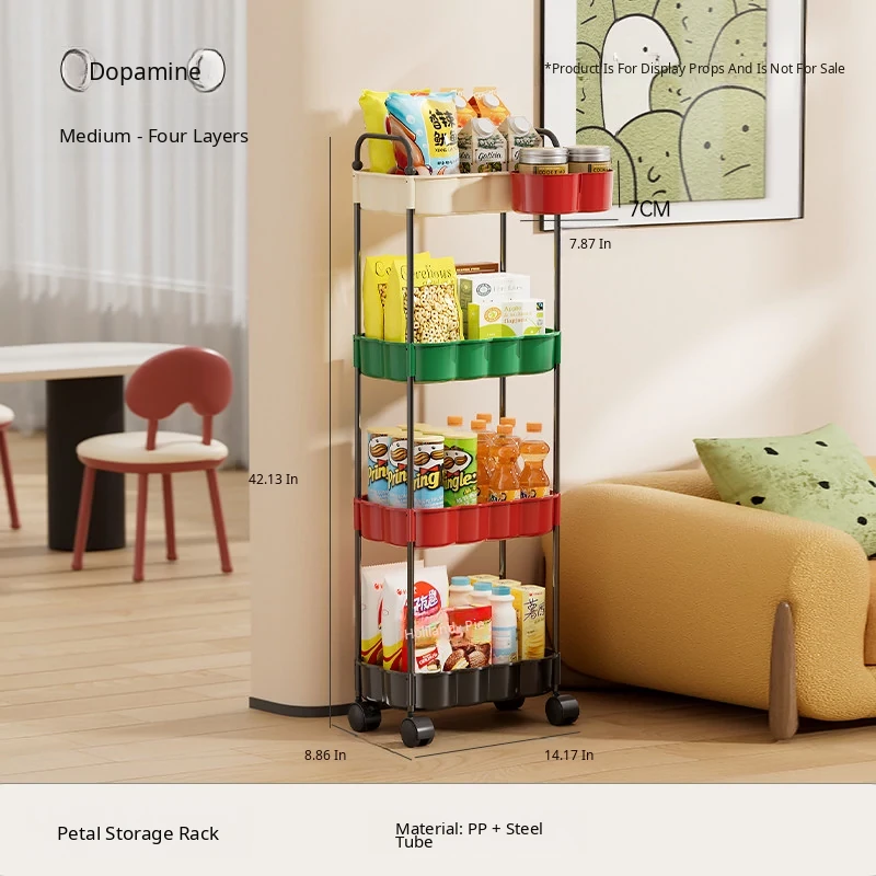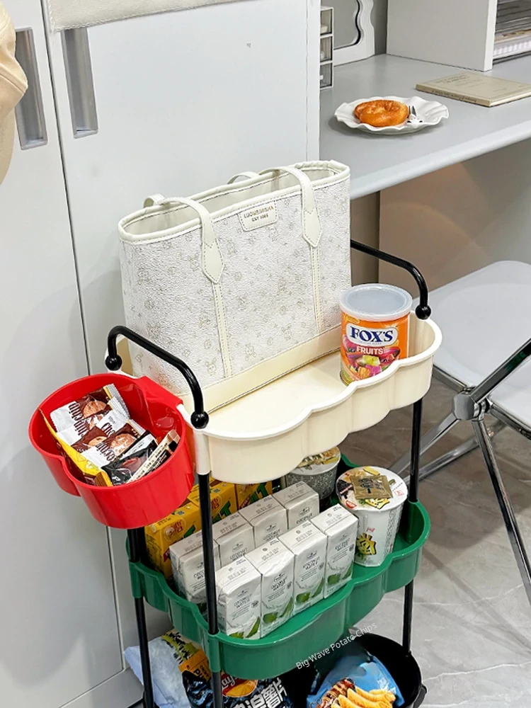 Dopamine Rolling Cart - Multi-Layer Mobile Storage Shelf for Snacks, Books, and Miscellaneous Items - Perfect for Dorm Rooms with Large Capacity and Stylish Design!
