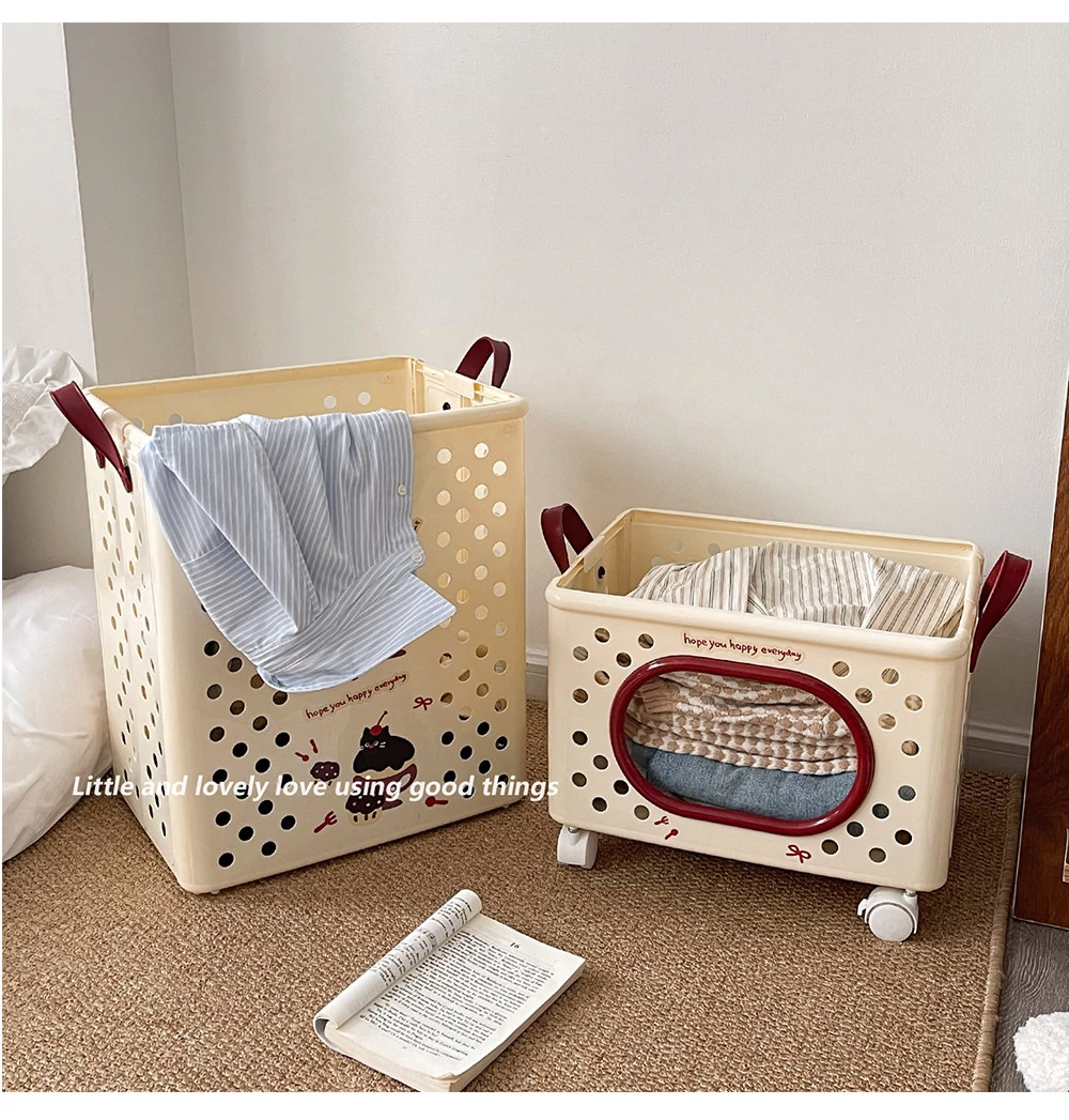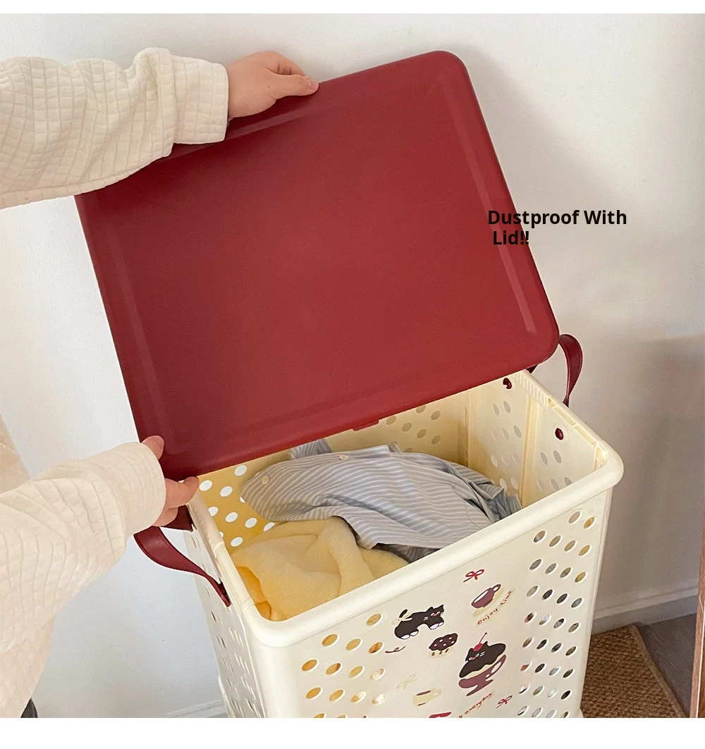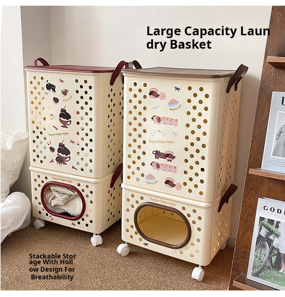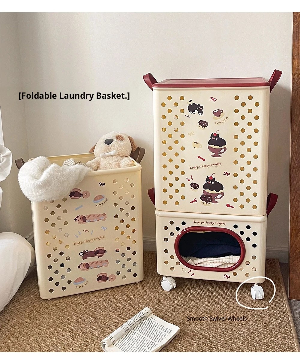 Dual-Layer Divided Laundry Basket with Wheels - Foldable Laundry Cart for Home Use, Perfect for Dirty Clothes and Toy Storage