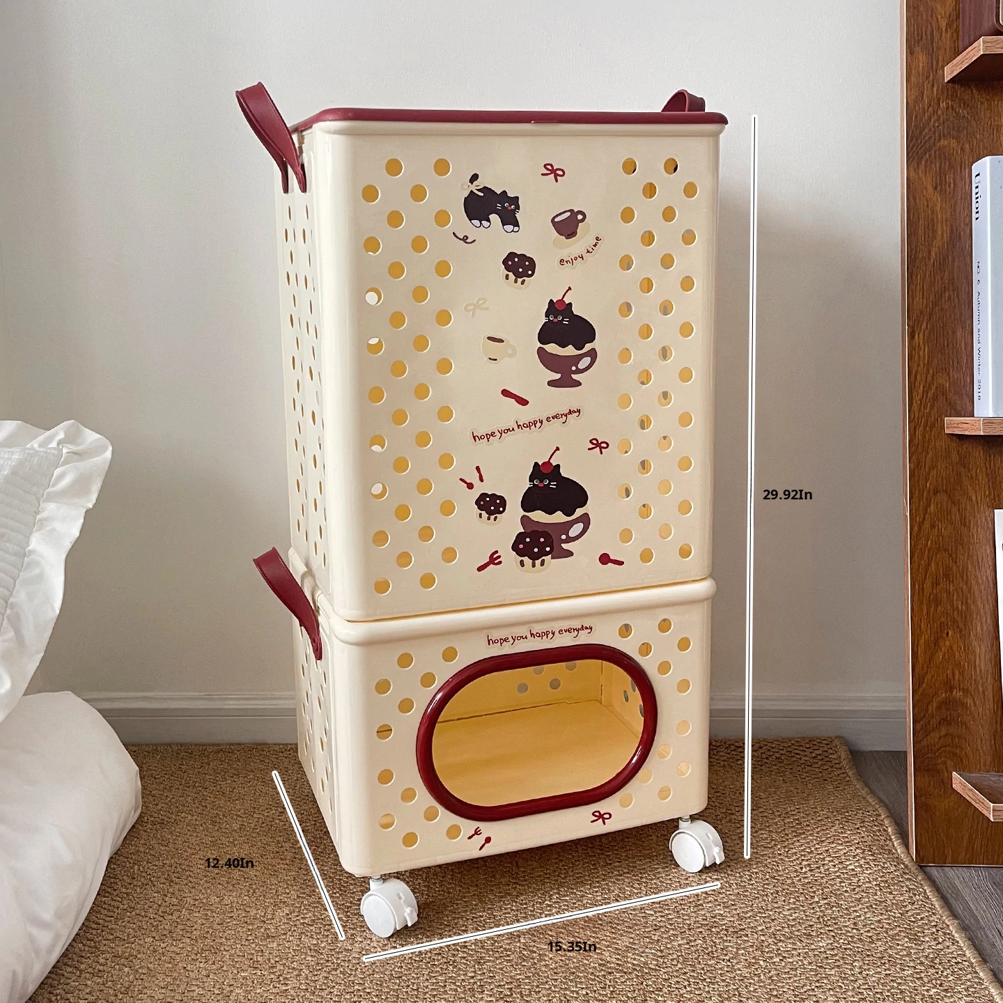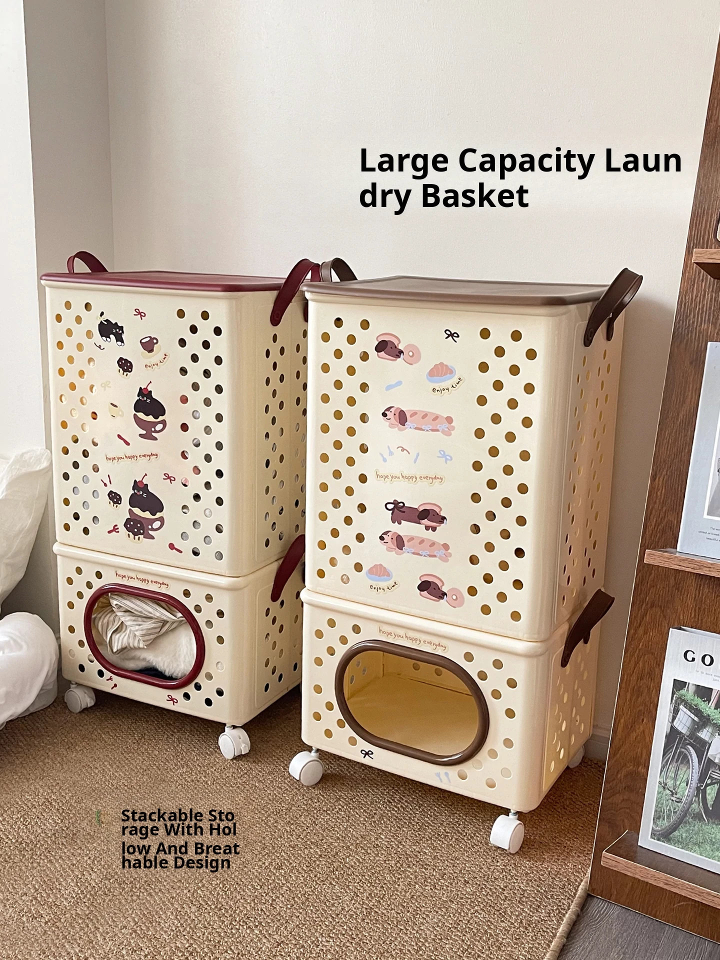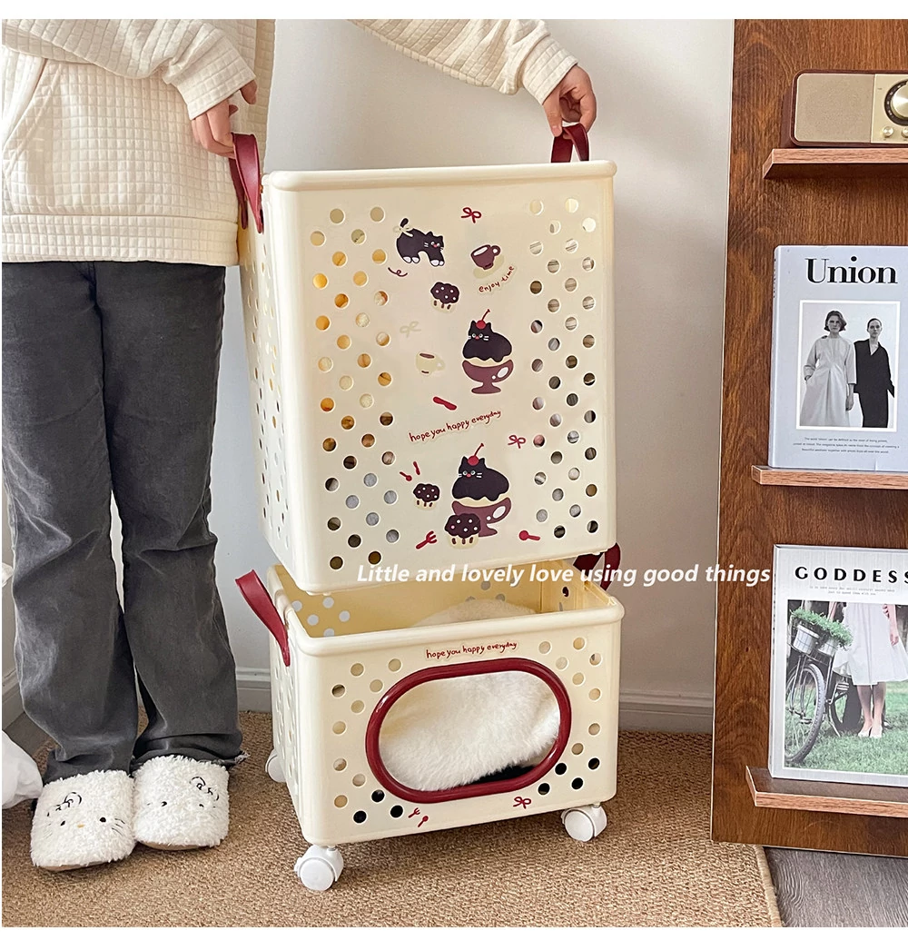 Dual-Layer Divided Laundry Basket with Wheels - Foldable Laundry Cart for Home Use, Perfect for Dirty Clothes and Toy Storage