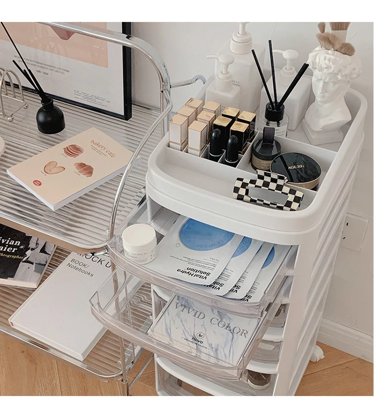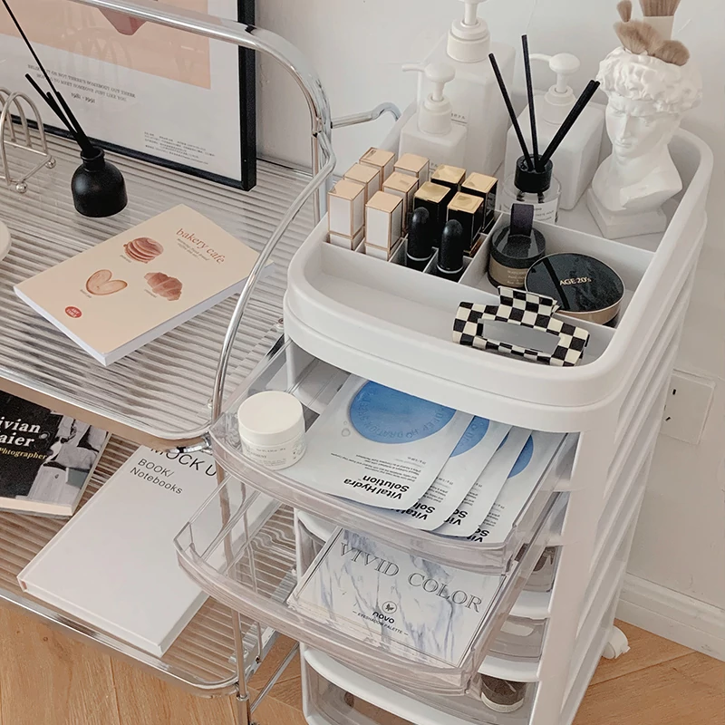 Dustproof Mini Cart Storage Rack - Multi-Layer Movable Organizer for Bedroom Nightstands, Features Drawer Storage for Snacks and Essentials, Perfect for Clutter-Free Living