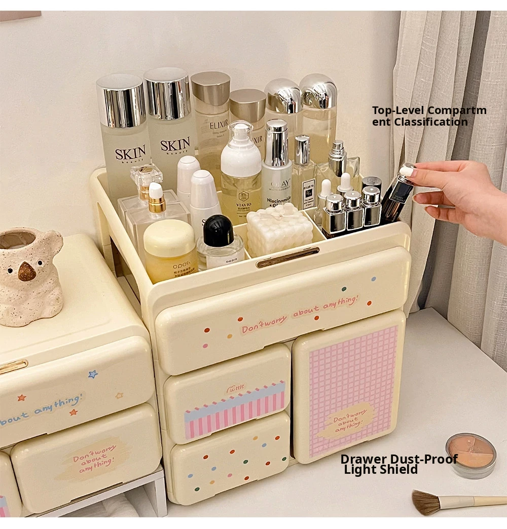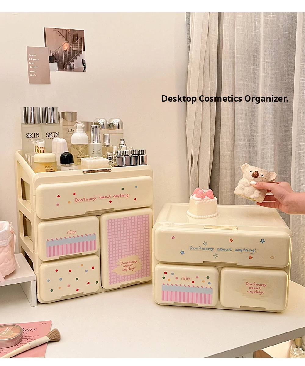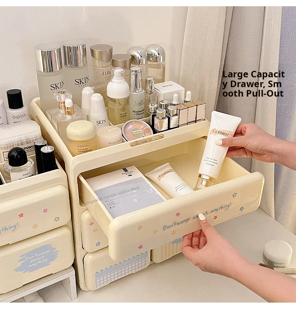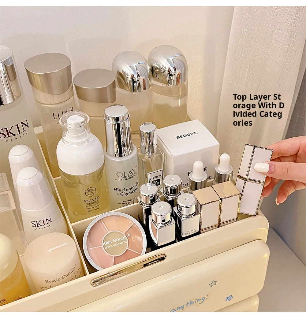 Elegant Cosmetic Organizer Box - Stylish Desktop Storage for Makeup, Skincare Products, Lipsticks, and Miscellaneous Items - Drawer Dividers for Perfect Organization