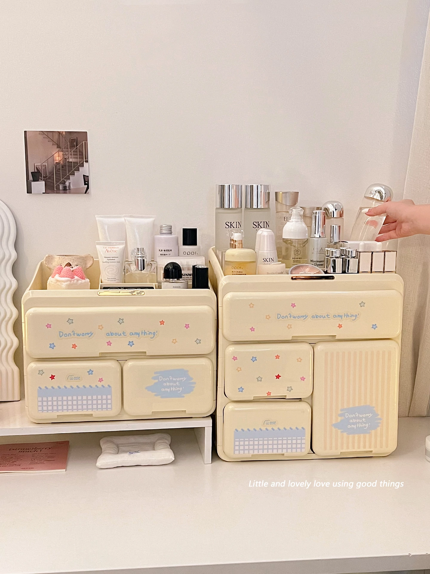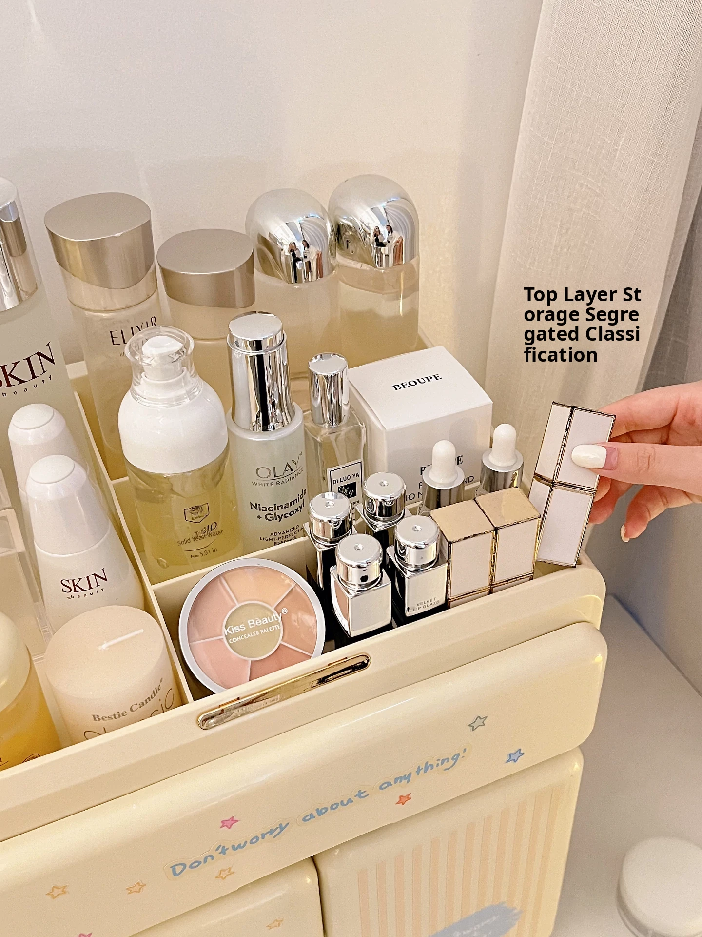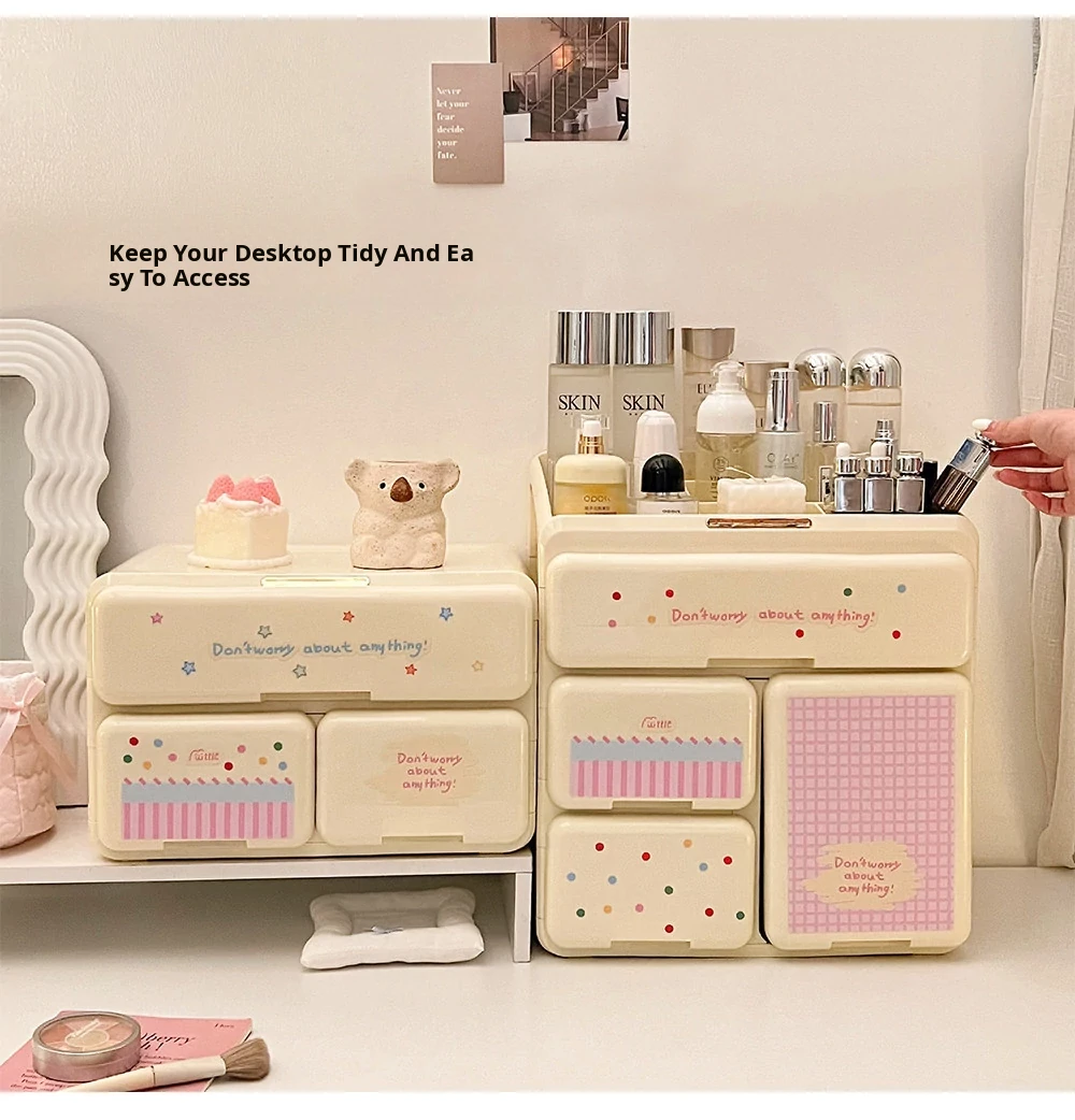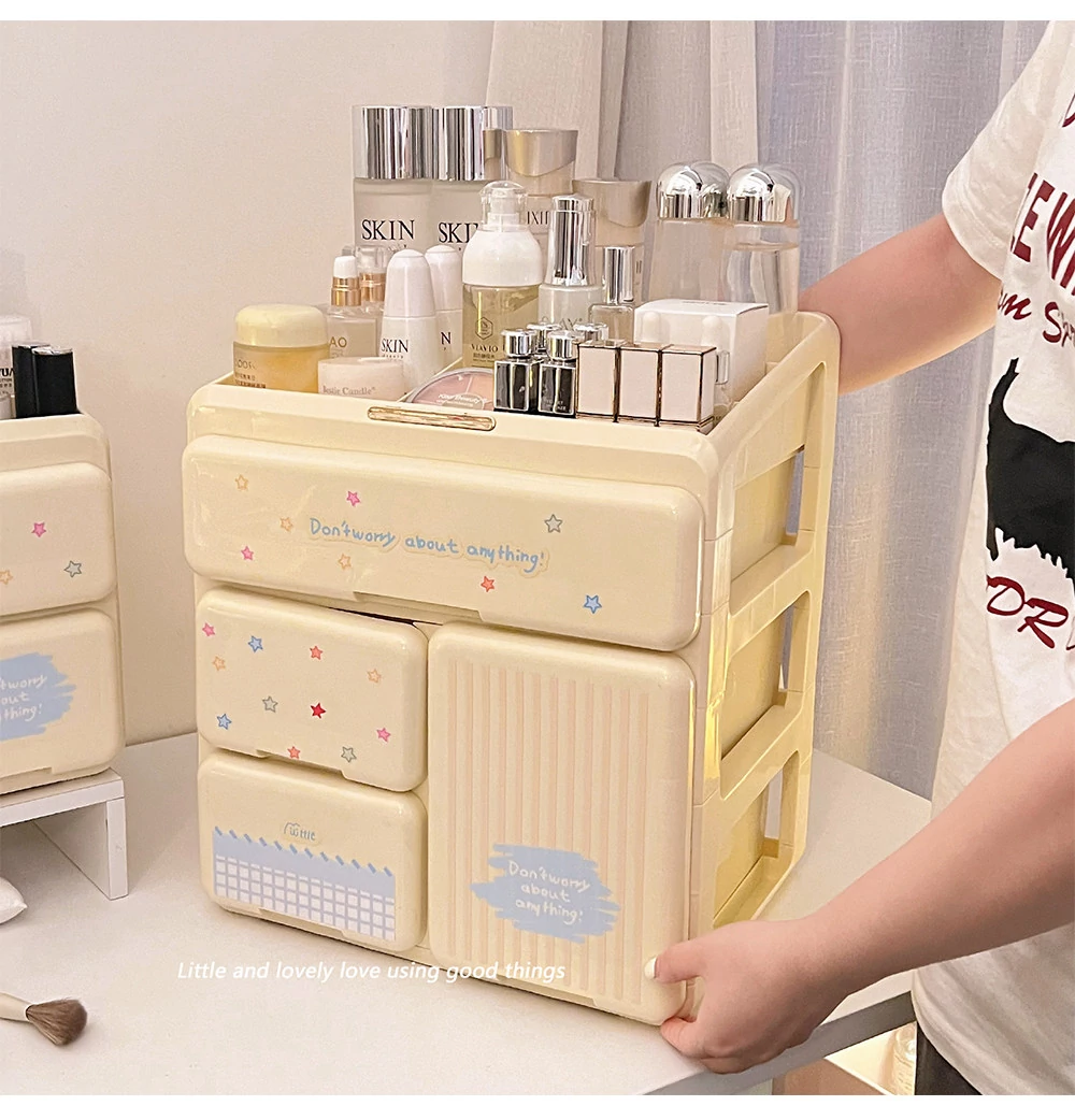 Elegant Cosmetic Organizer Box - Stylish Desktop Storage for Makeup, Skincare Products, Lipsticks, and Miscellaneous Items - Drawer Dividers for Perfect Organization