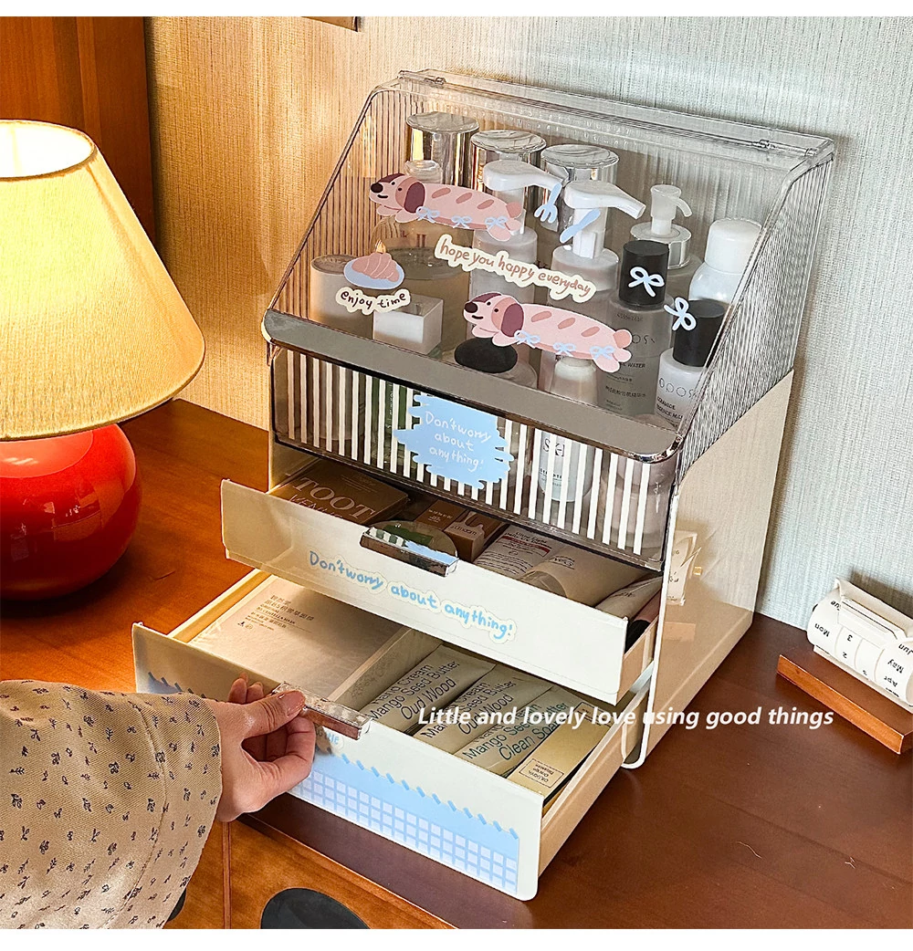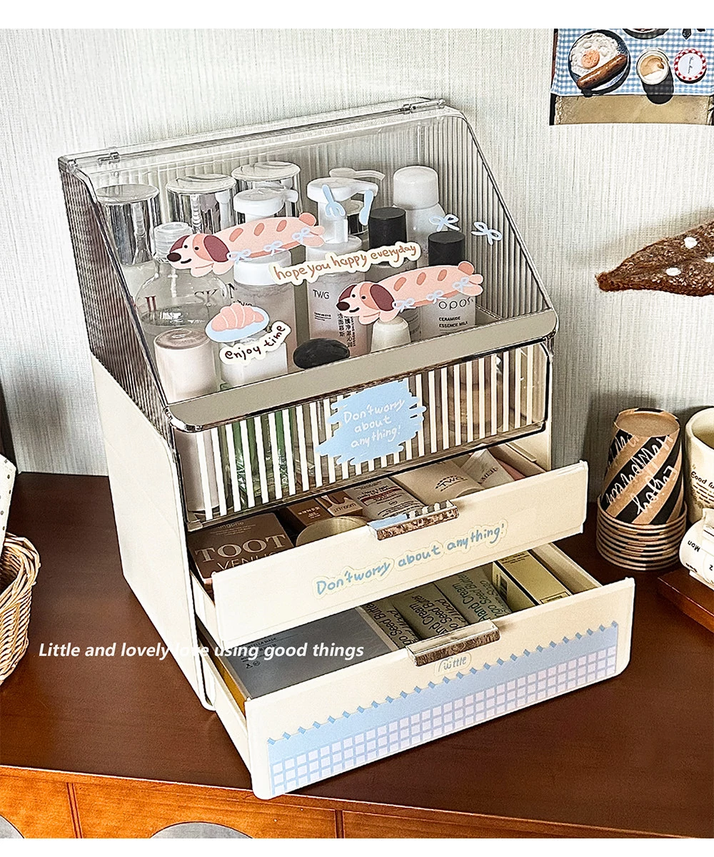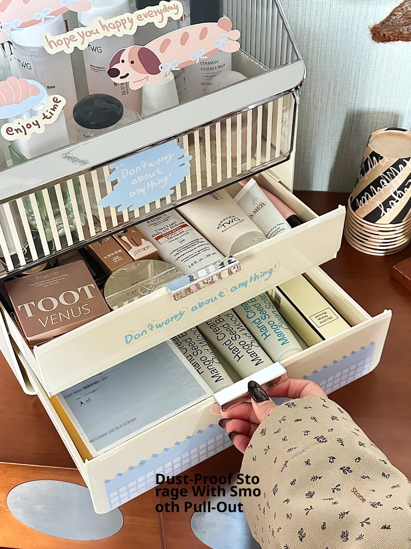 Elegant Cosmetic Organizer with Lids - Multi-layer Drawer Storage Box for Home Vanity, Perfect for Skincare & Beauty Products