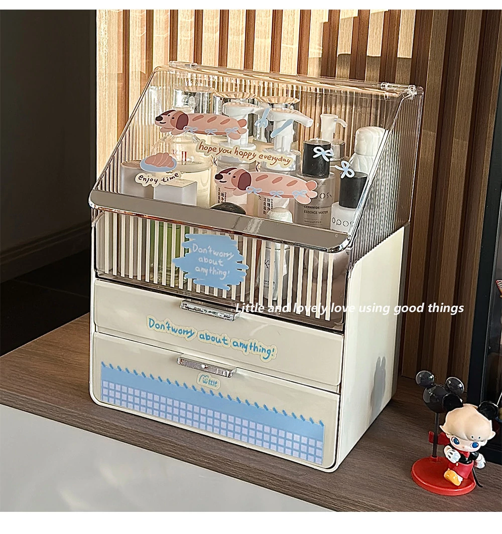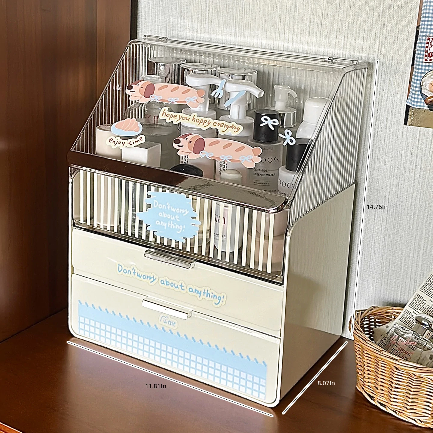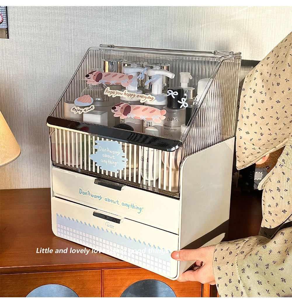 Elegant Cosmetic Organizer with Lids - Multi-layer Drawer Storage Box for Home Vanity, Perfect for Skincare & Beauty Products