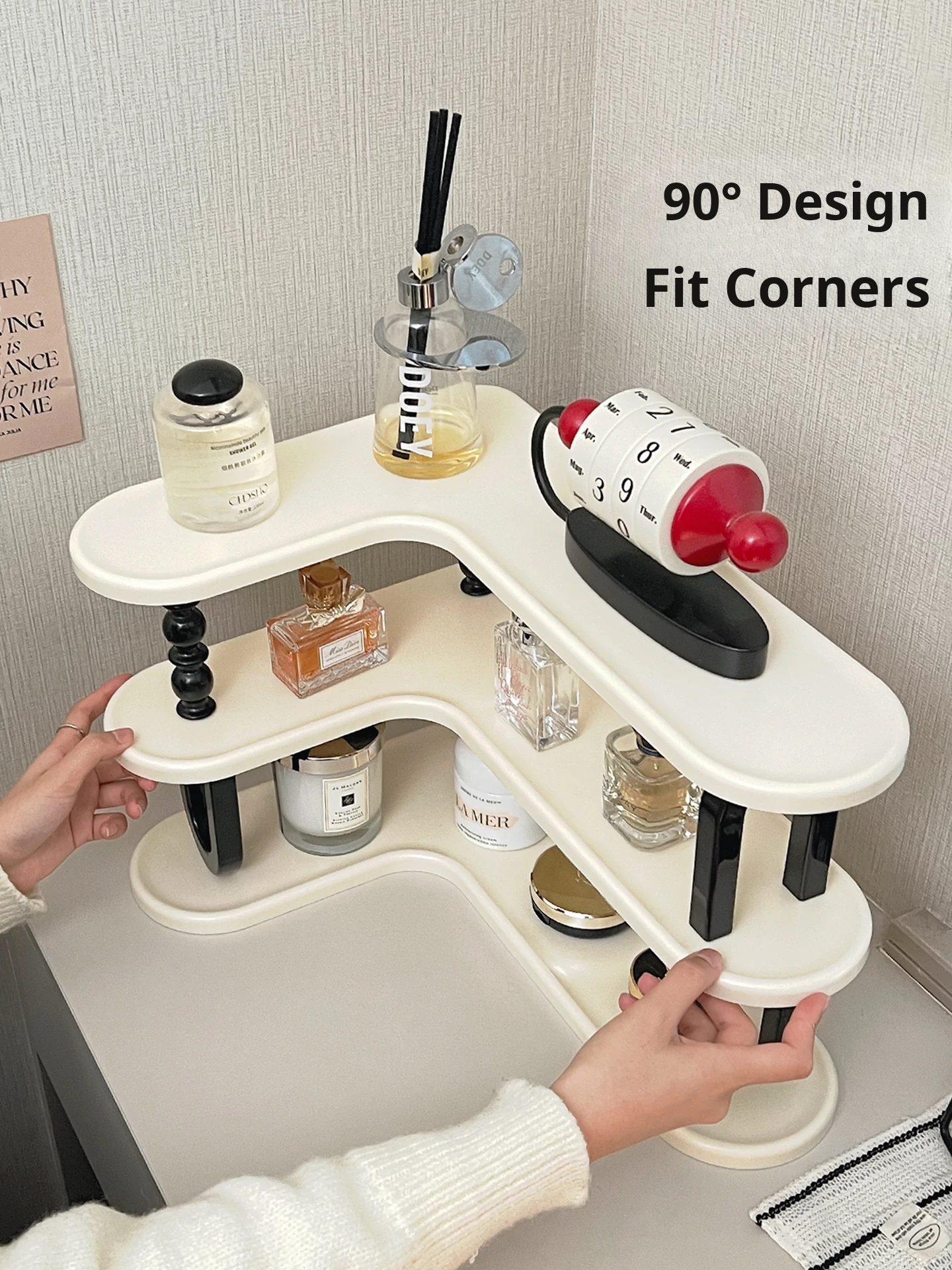 Cream White-Three-Layer Cup Holder [Placed in the Corner/Saves Space]