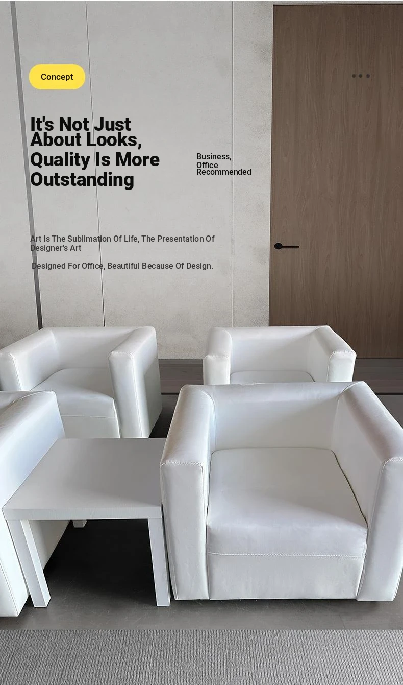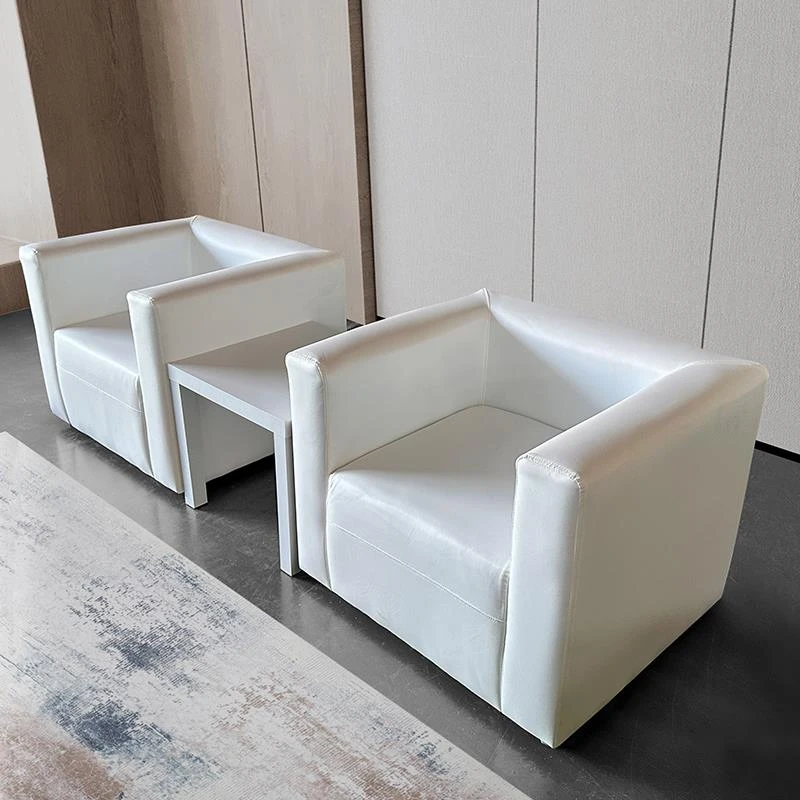 Elegant White Single Sofa with Backrest and Coffee Table Set for Exhibition Events – Perfect for VIP Reception Areas and Meeting Rooms