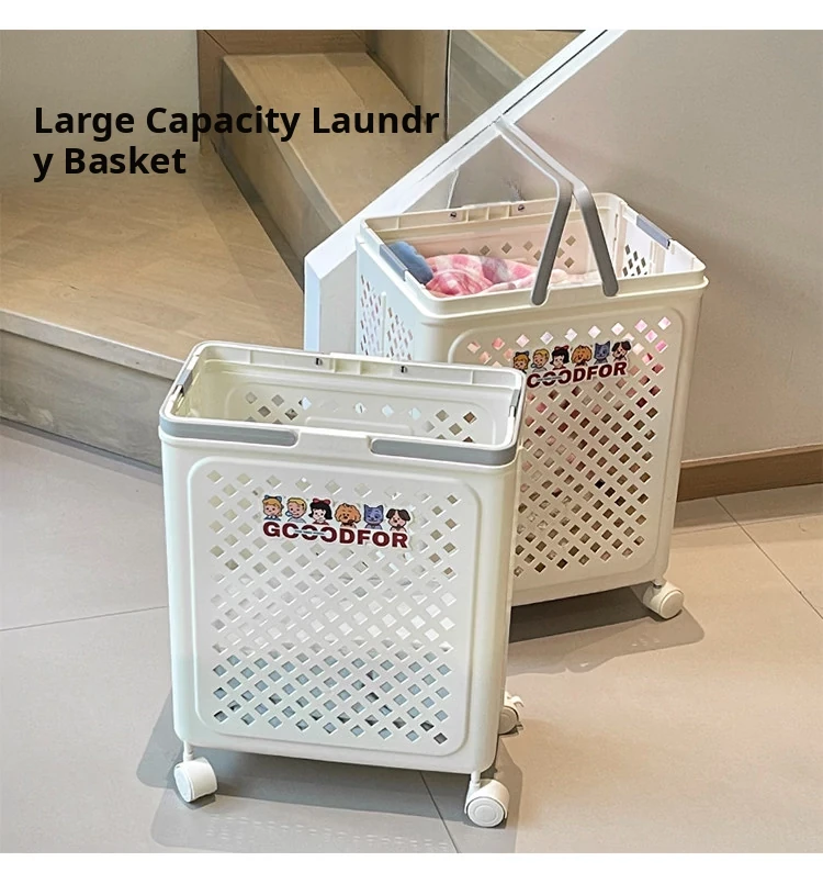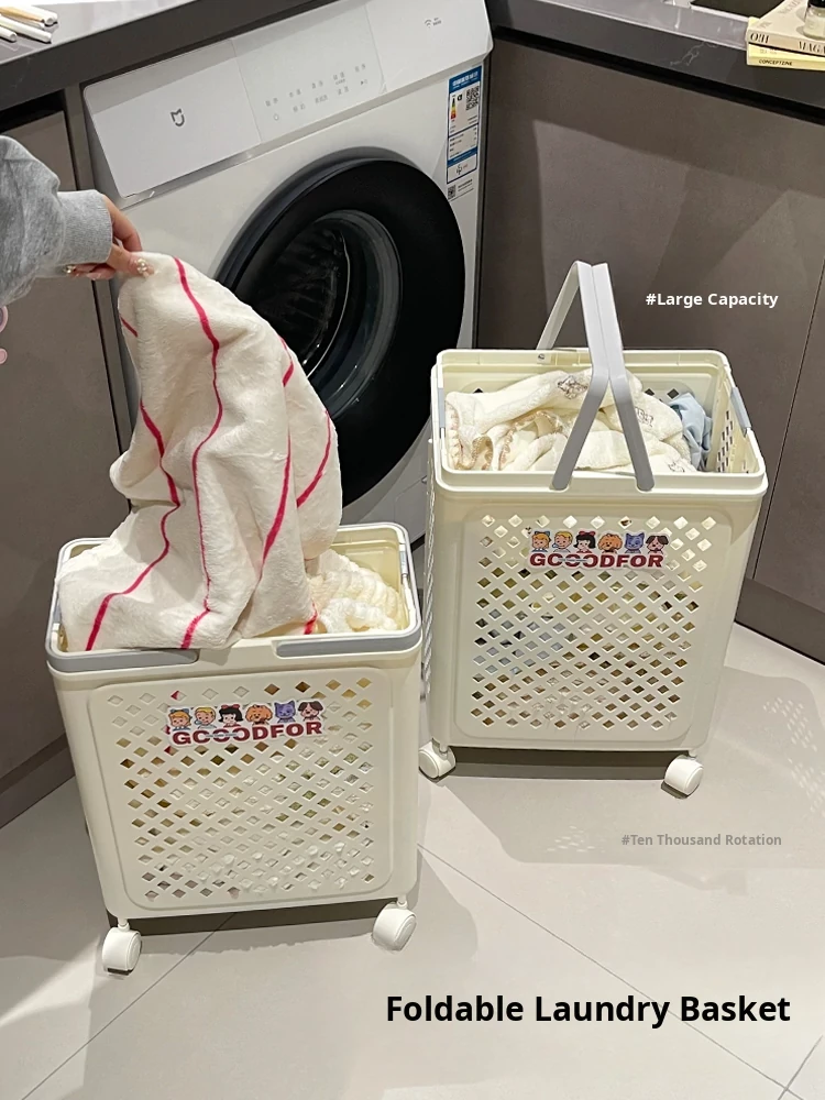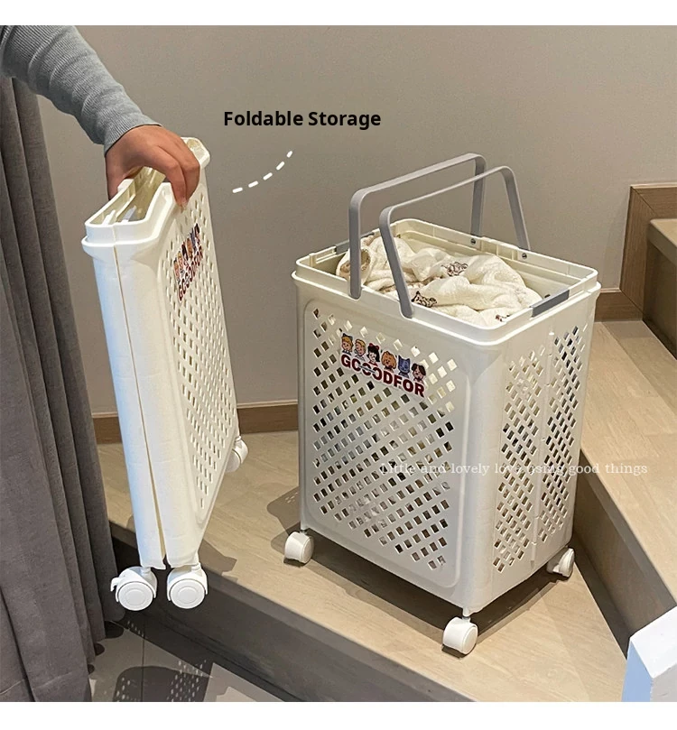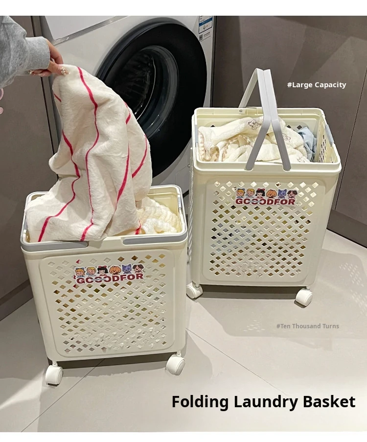 Foldable Laundry Basket with Wheels - Multi-functional, Portable and Spacious Storage Solution for Home, Perfect for Bathrooms and Easy to Carry!