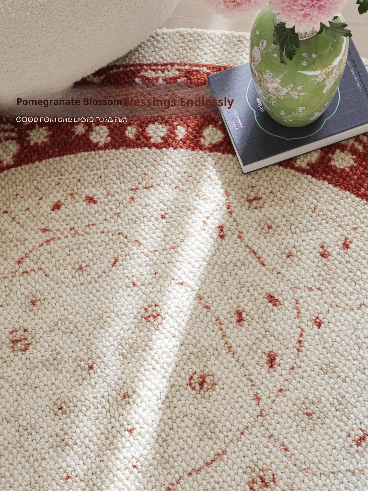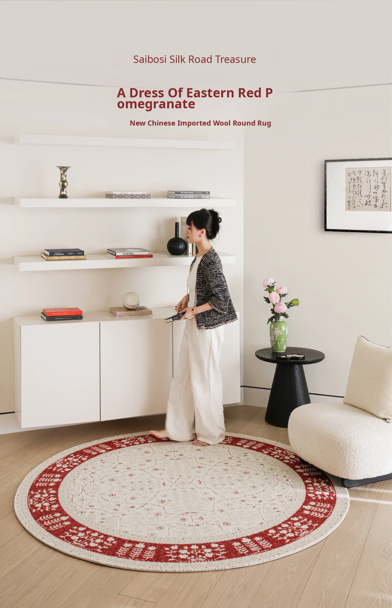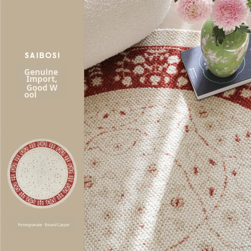 Imported Cyprose Red Pomegranate Round Wool Rug - Elegant New Chinese Style for Living Room, Study, Bedroom, and Walk-in Closet - Luxurious and Stylish Home Decor
