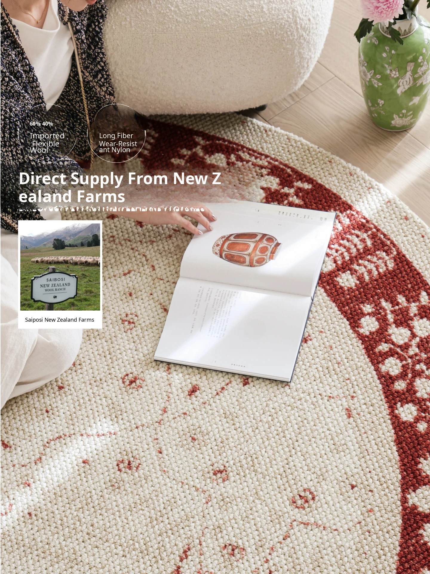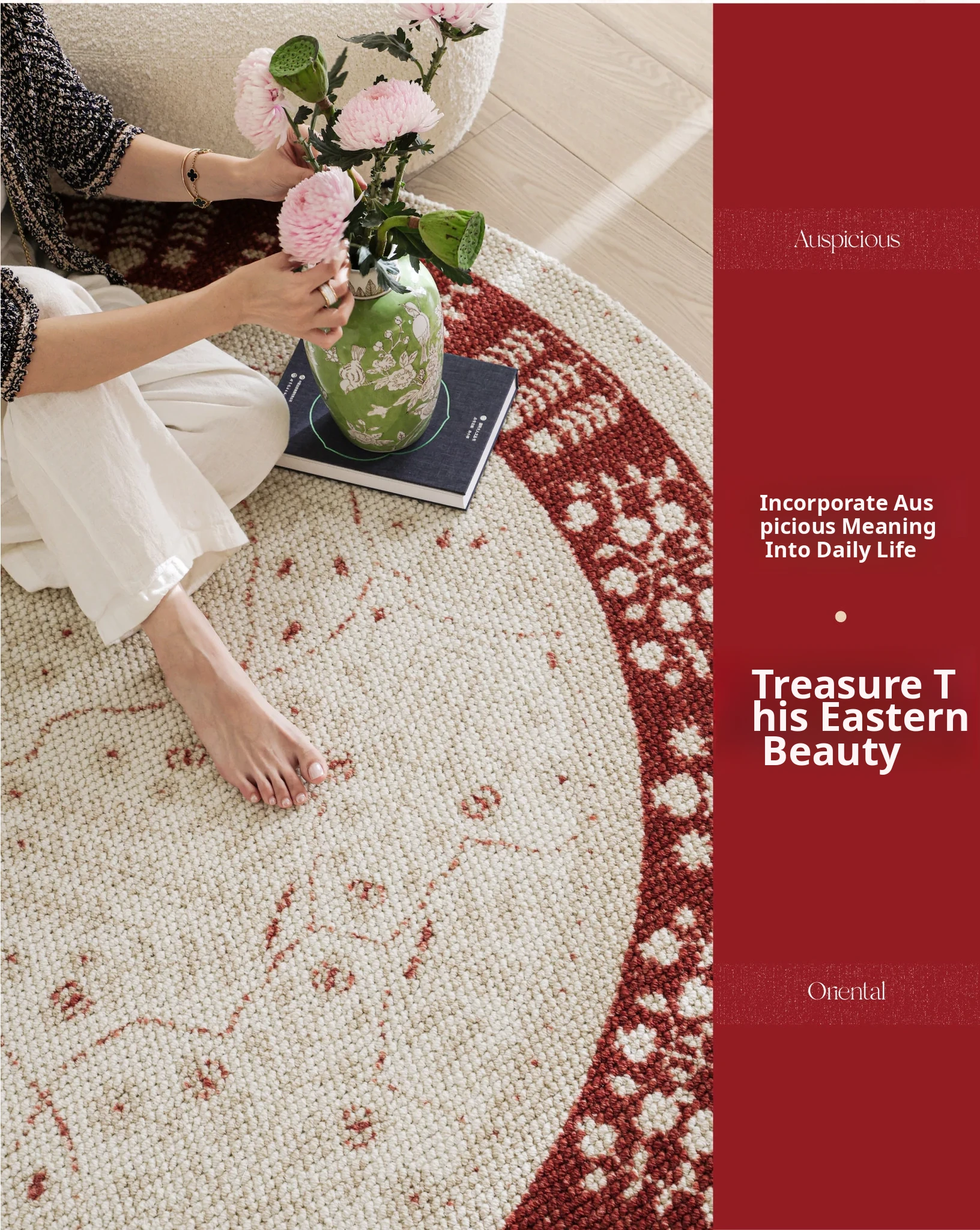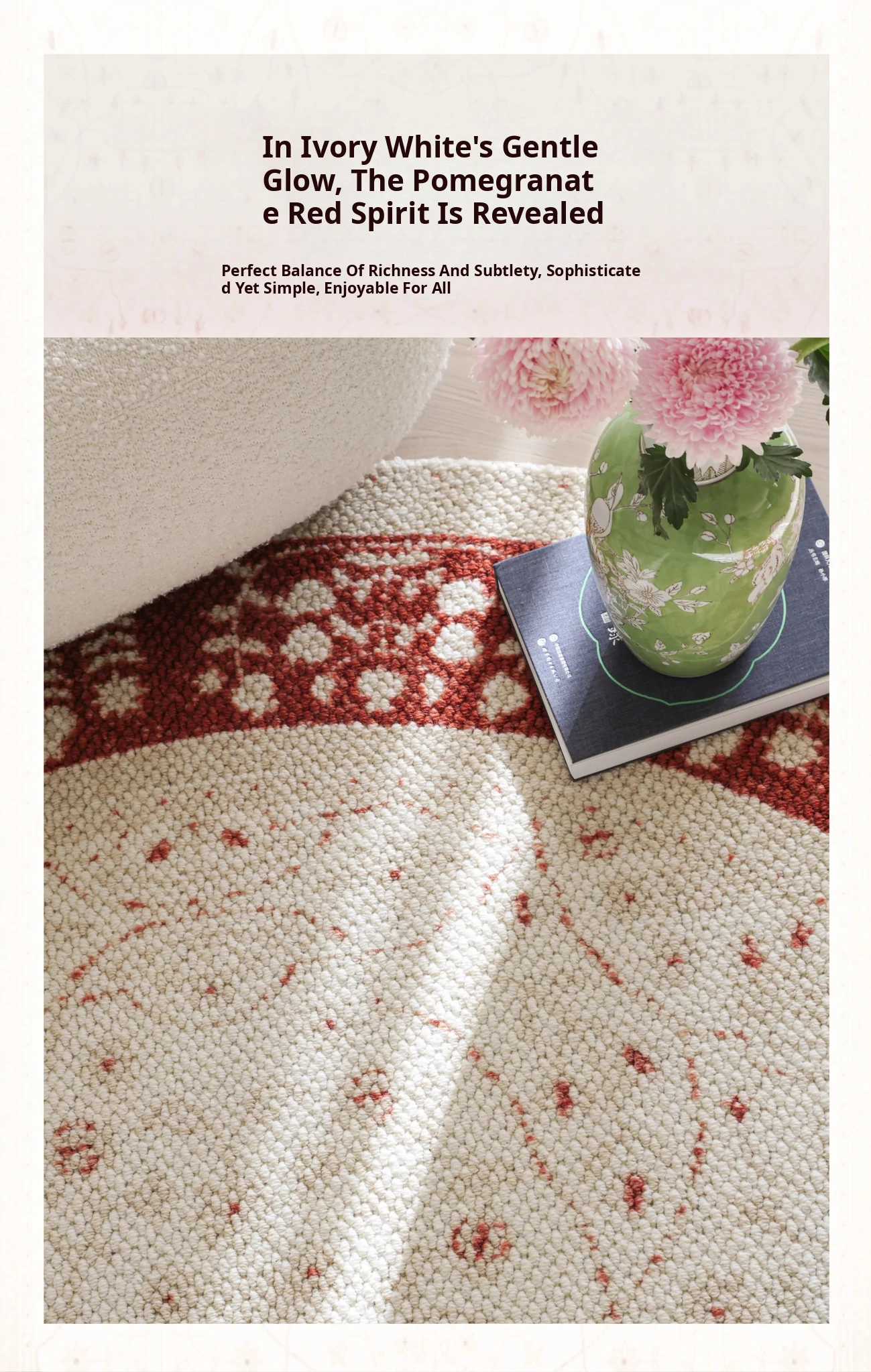 Imported Cyprose Red Pomegranate Round Wool Rug - Elegant New Chinese Style for Living Room, Study, Bedroom, and Walk-in Closet - Luxurious and Stylish Home Decor