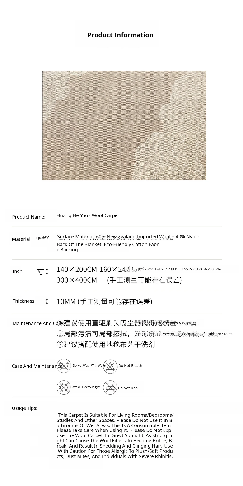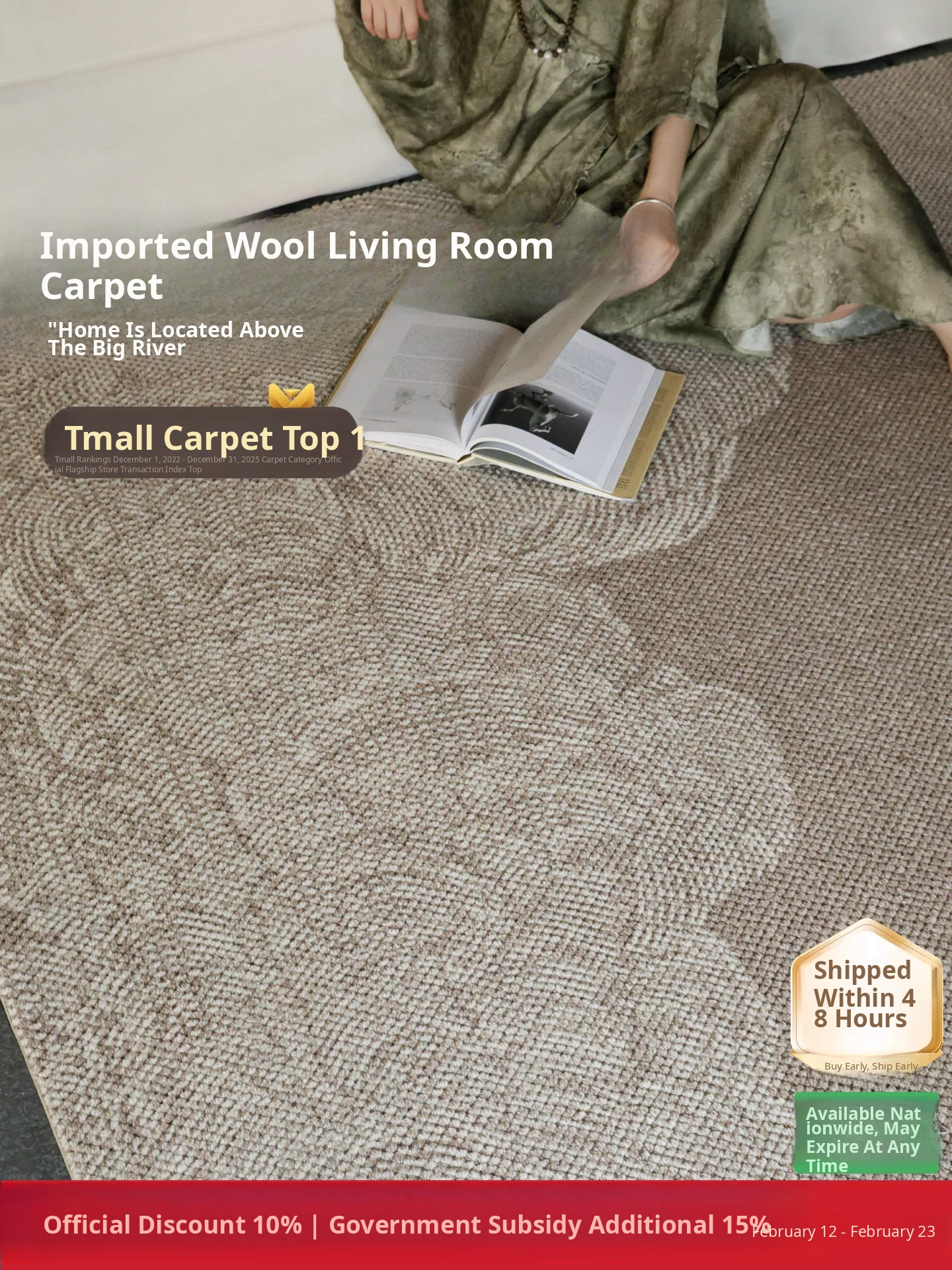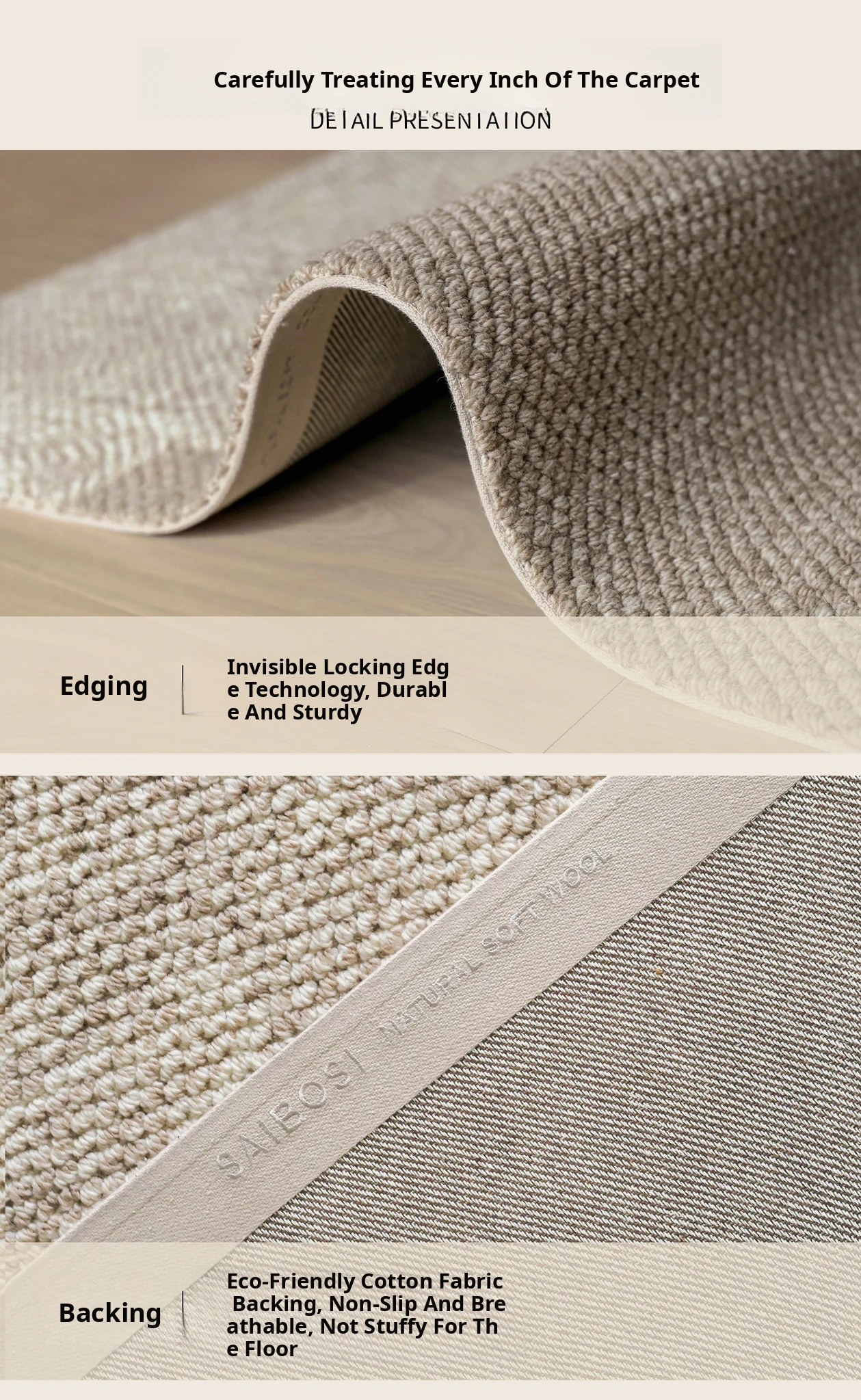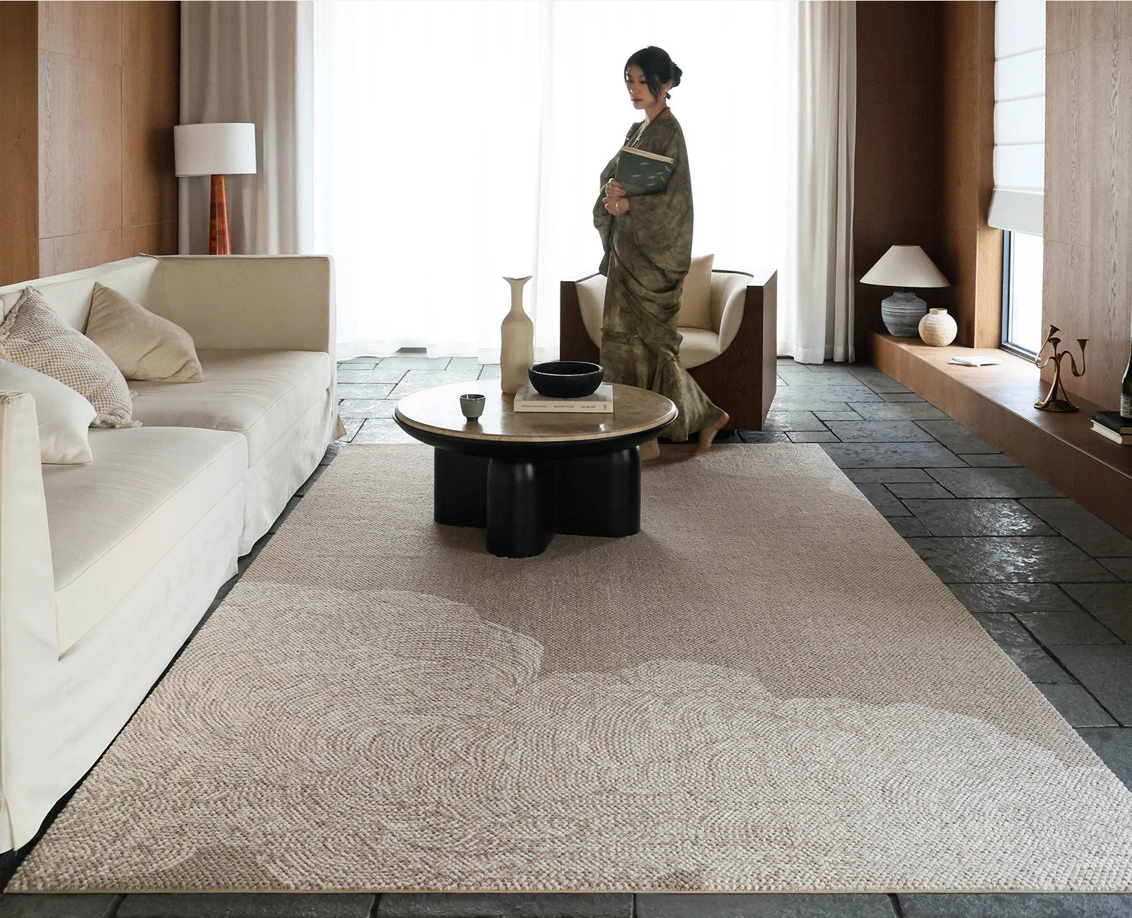 Imported Saibosi Yellow River Rhyme Series Wool Carpet - Luxurious Mid-Century Modern Design for Living Room, Sofa & Bedroom Décor