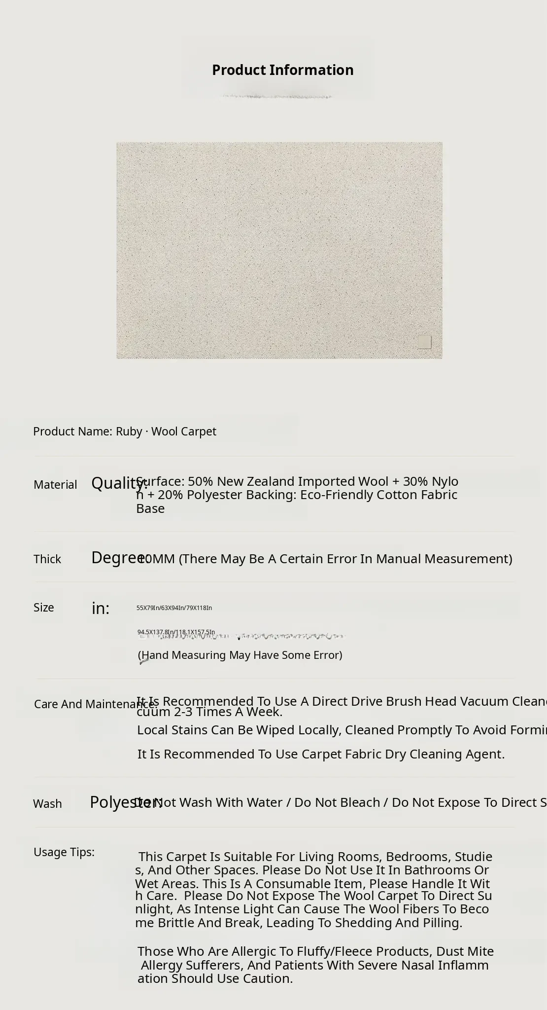 Carpet size