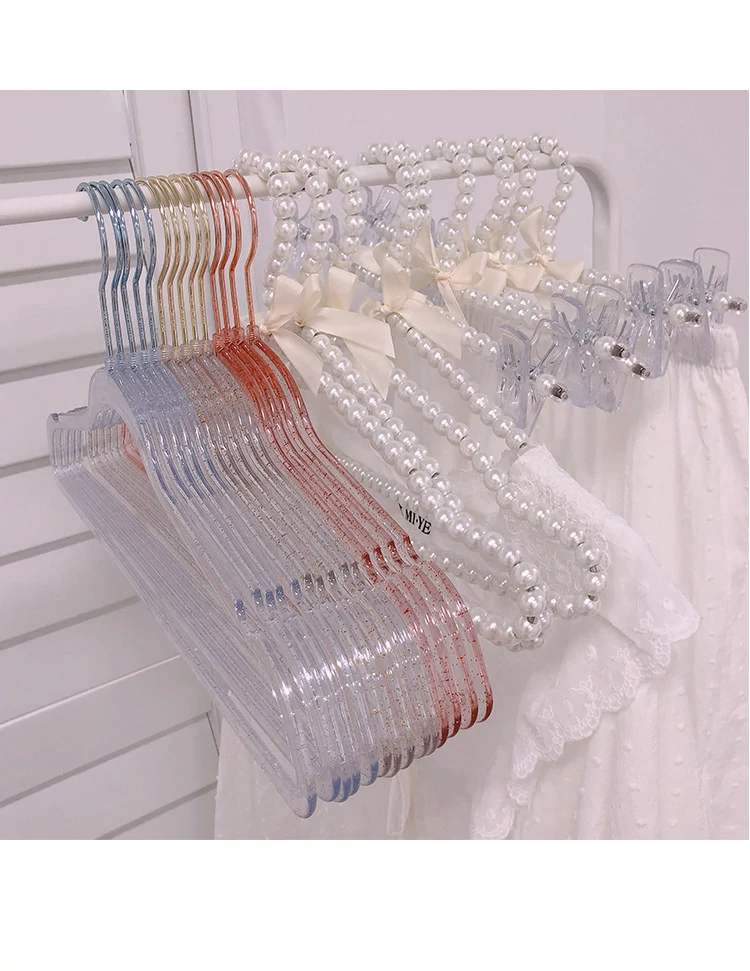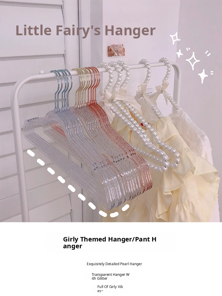 "Ins Style Pearl-Inspired Sparkling Hangers - The Ultimate Home Clothing Organizer for Dresses, Pants, and More! Perfect for Fashion-Forward Girls!"
