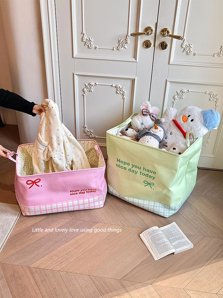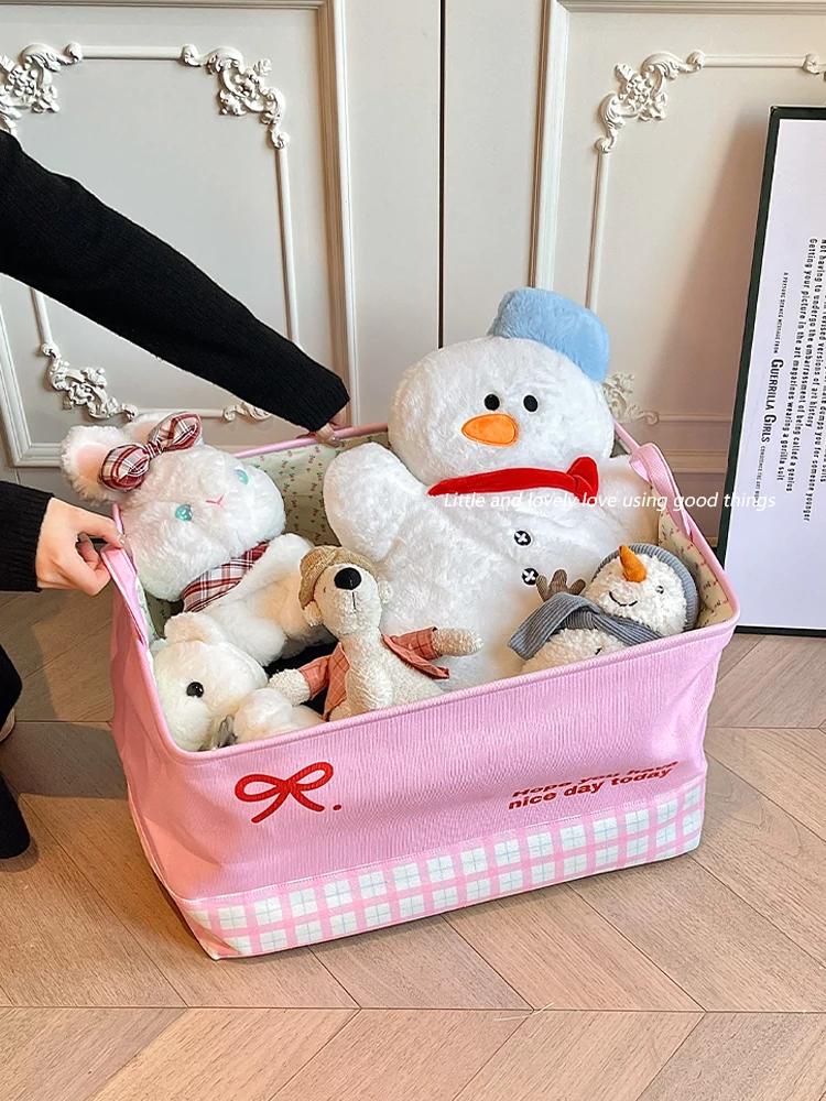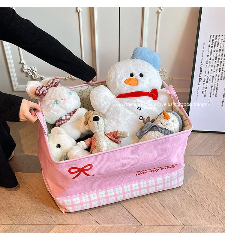 Ins Style Plush Toy Storage Basket - Foldable Handheld Laundry Hamper for Kids' Dolls and Stuffed Animals - Perfect for Home Organization and Fun Décor