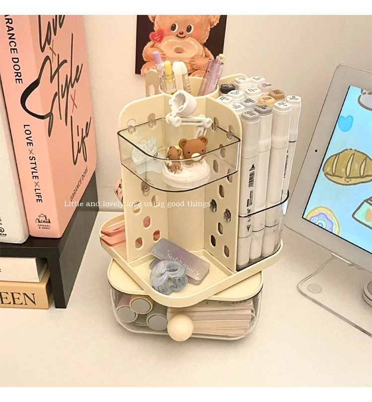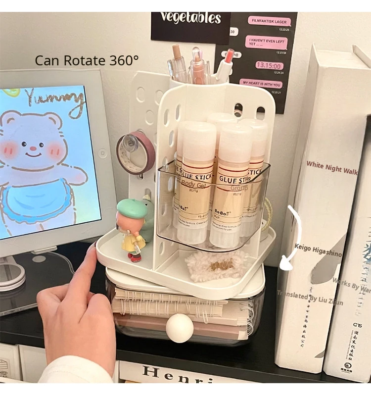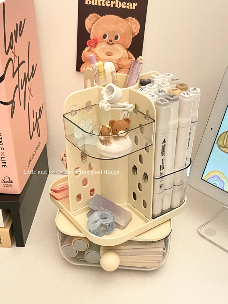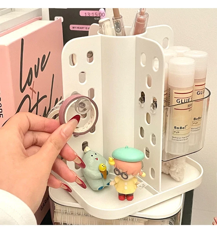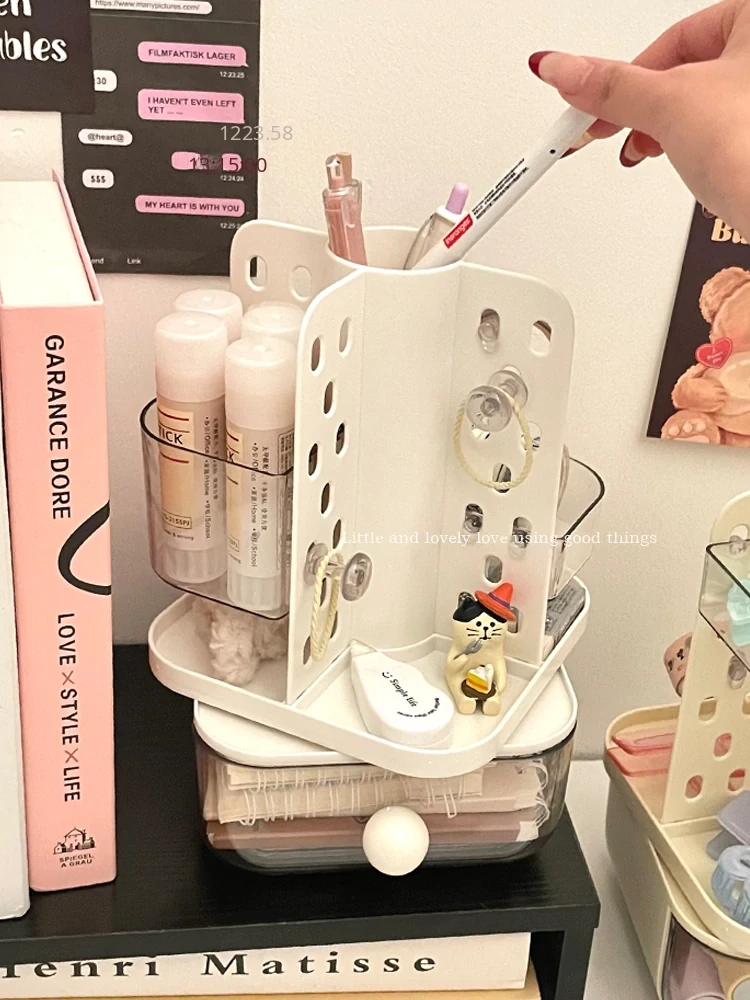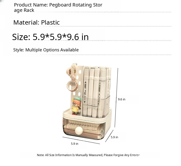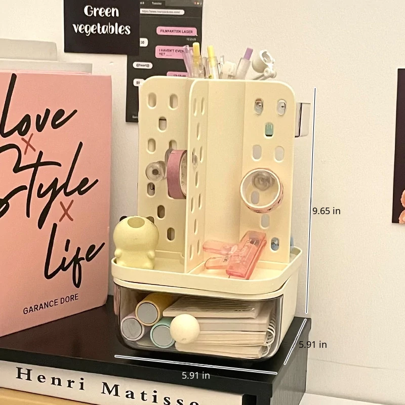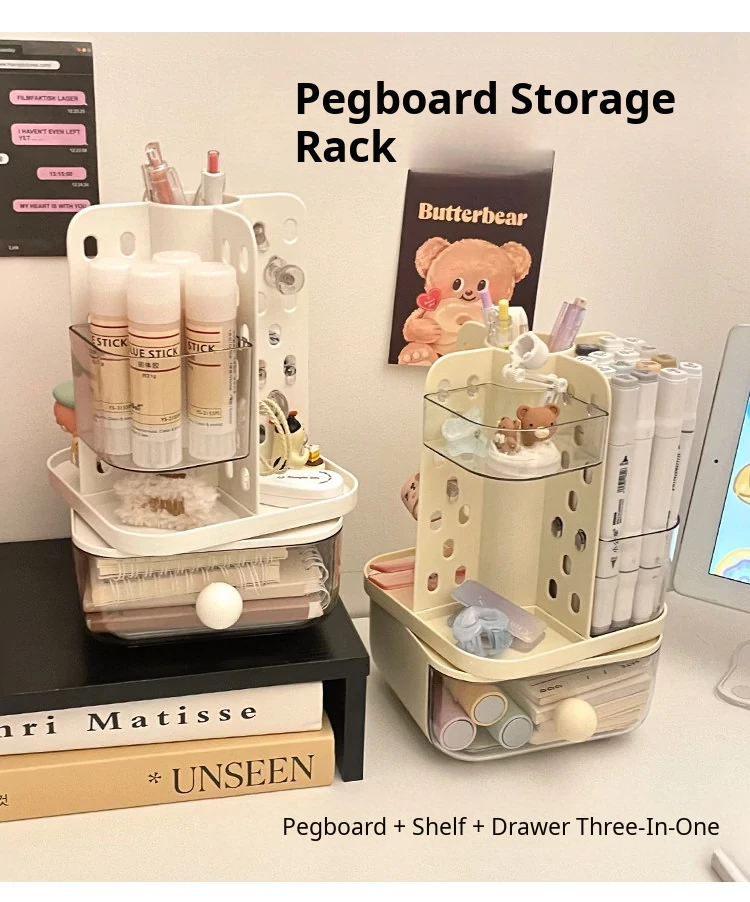 INS Style Rotating Desktop Pegboard Organizer – Versatile Storage Box for Stationery, Drawer, and Desk Supplies – Perfect for Student Dorms and Clutter Management