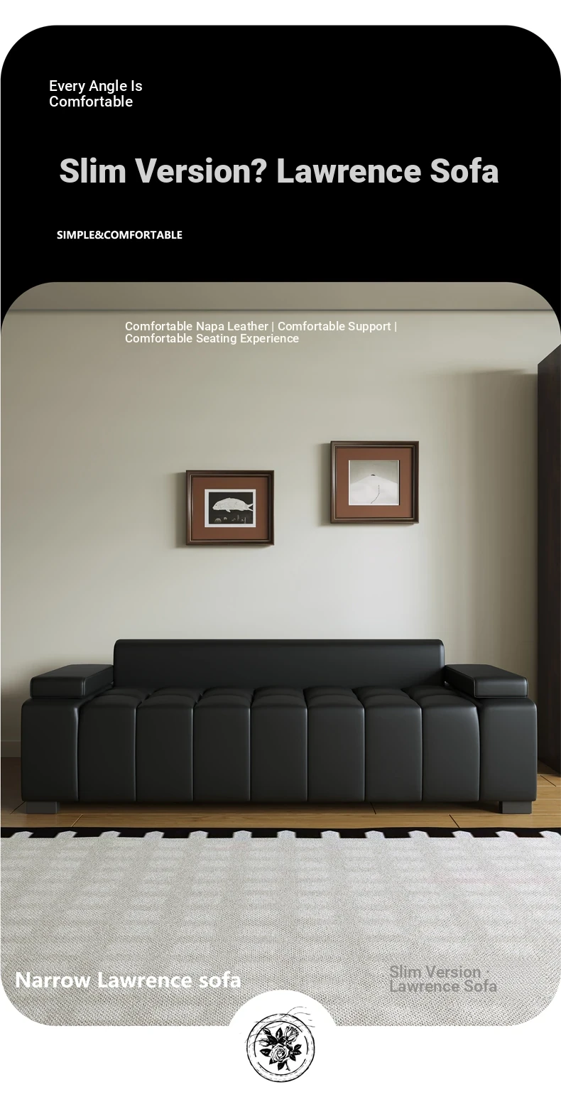 Italian Minimalist Lawrence Narrow Sofa - Stylish Small Space Leather Couch for Living Room, Perfect for Couples and Small Families. Elegant and Compact Design for a Luxurious Touch!