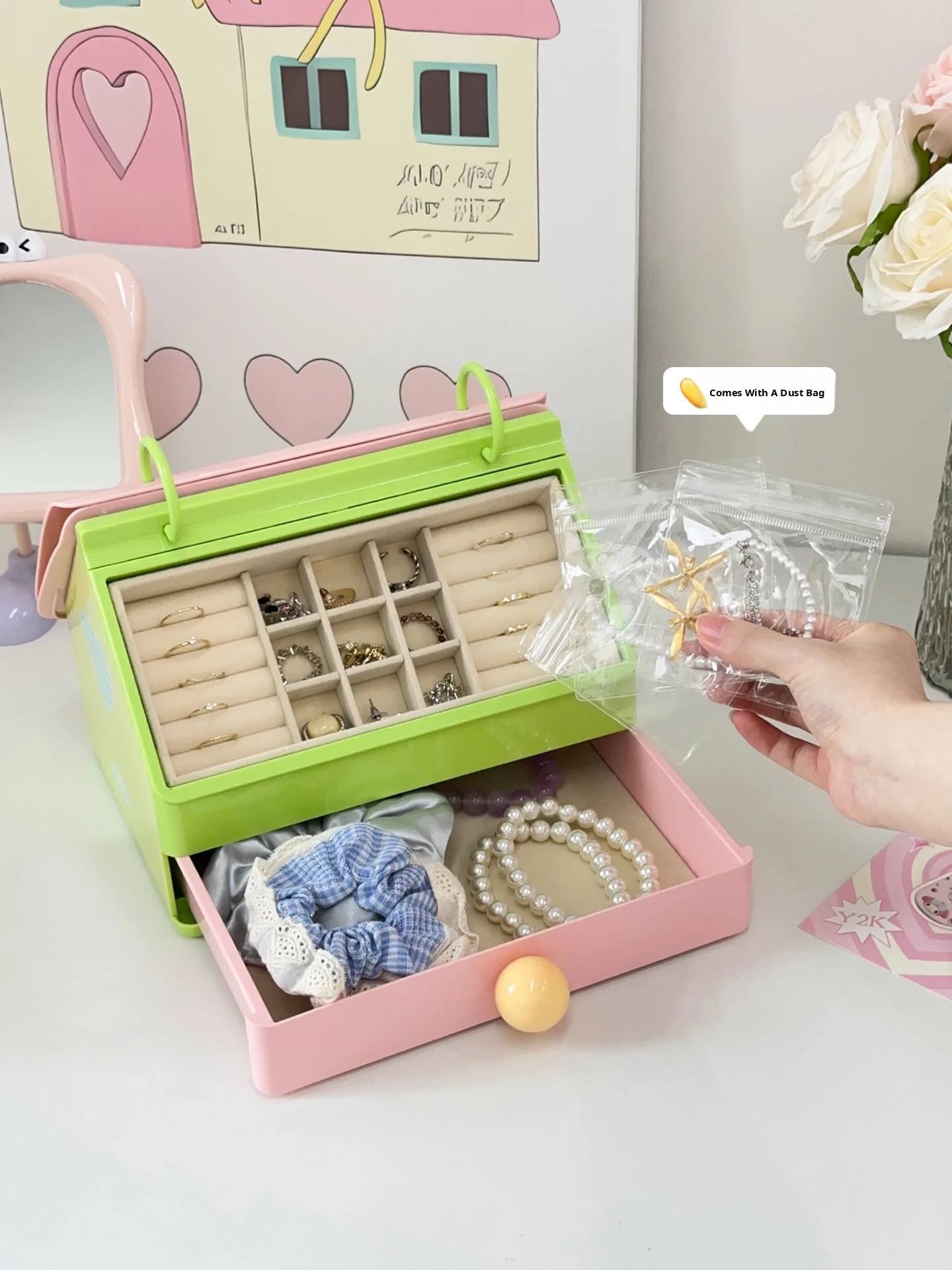 Jewelry Organizer Box - Perfect Storage for Earrings, Rings, Bracelets, Necklaces, Hair Ties, and Clips - Keep Your Gold and Gemstone Accessories Neat and Tidy!
