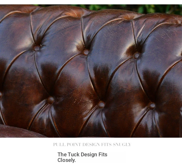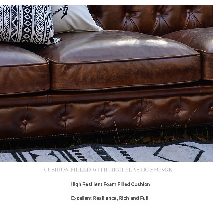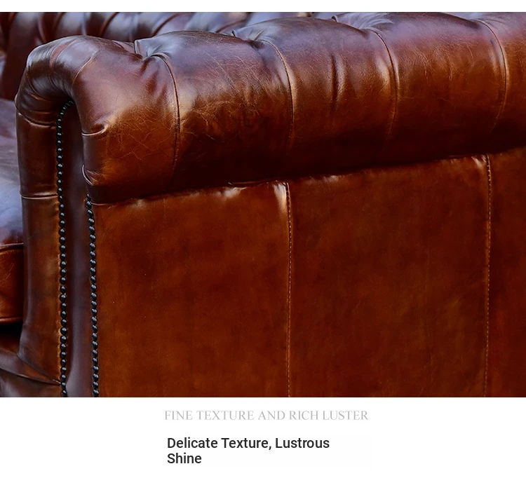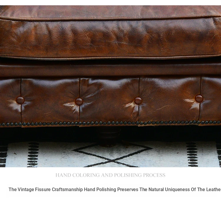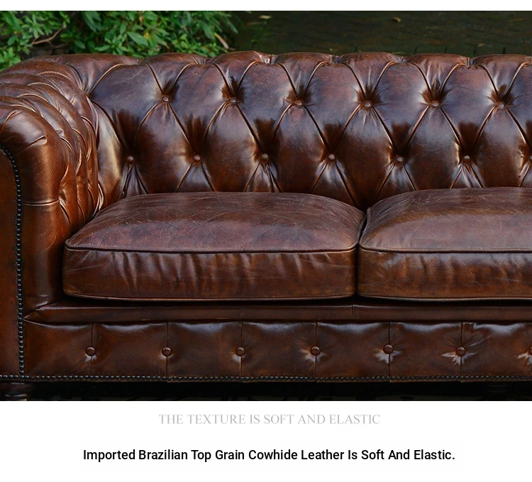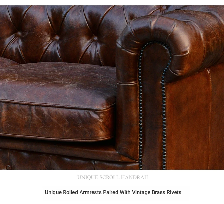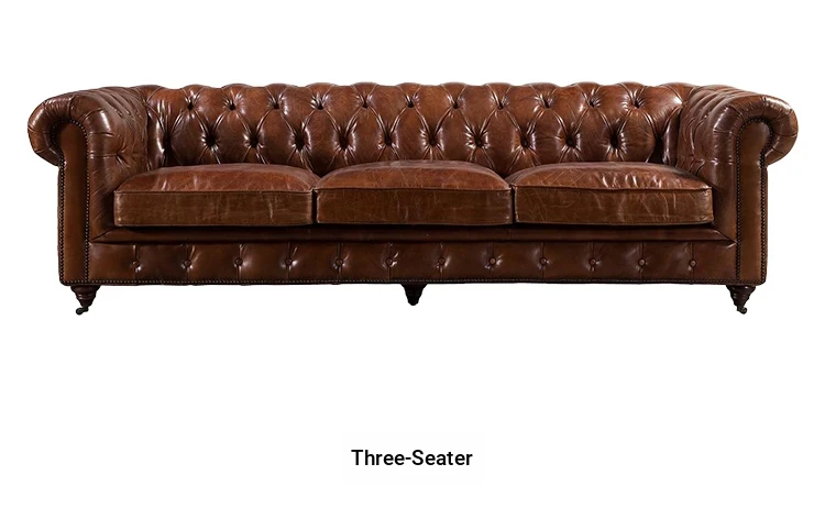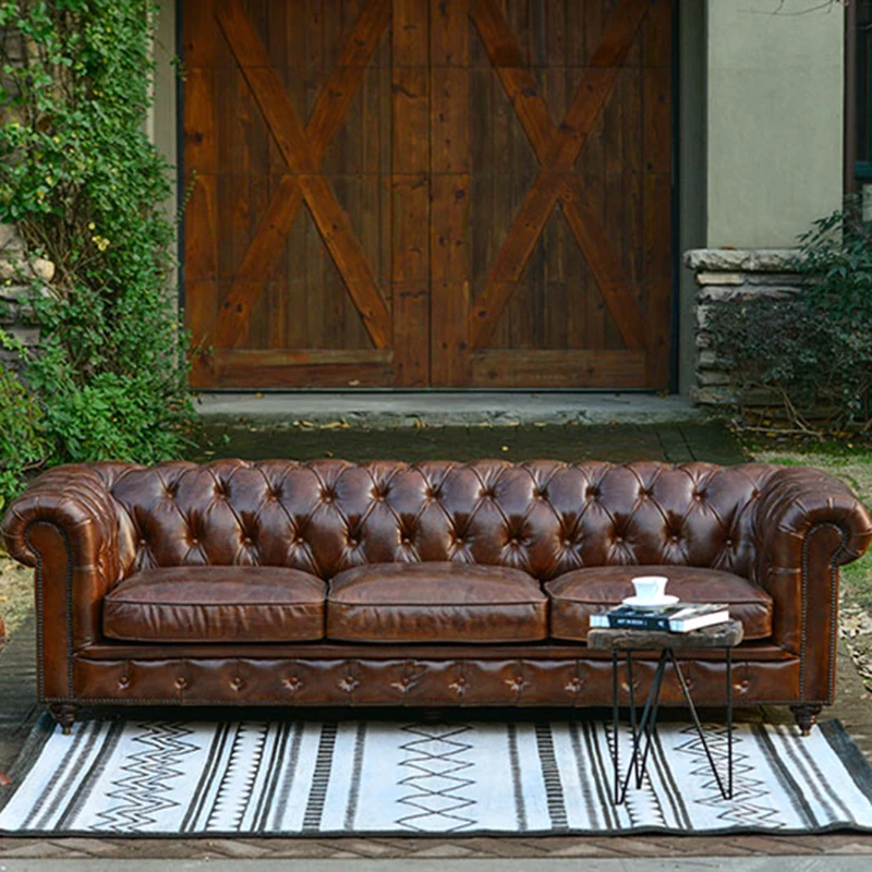 Kagulu Vintage Genuine Leather Sofa - Three-Seater European Style with Top Grain Waxed Cowhide for Living Room, Unique Shape Furniture