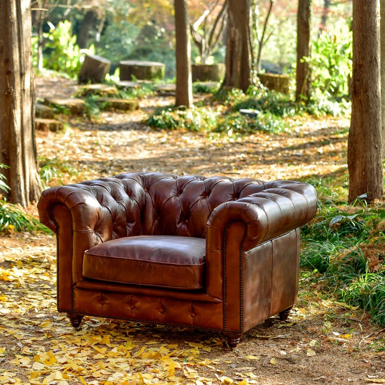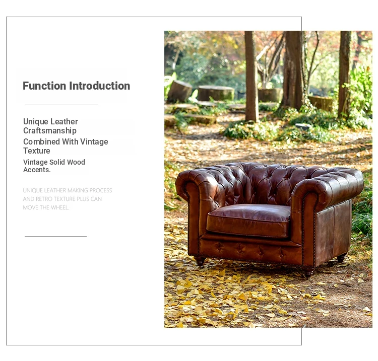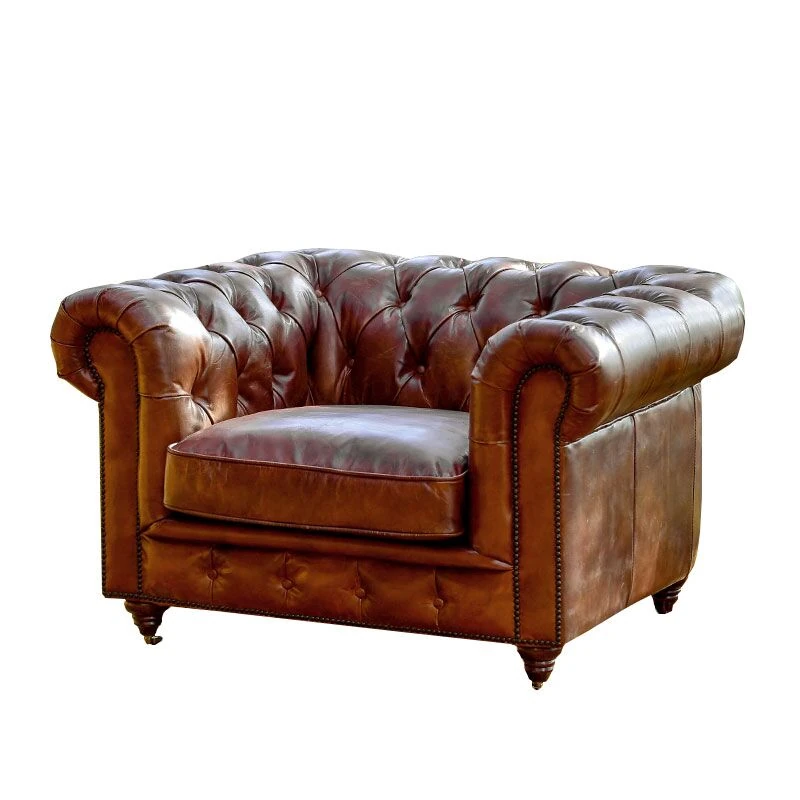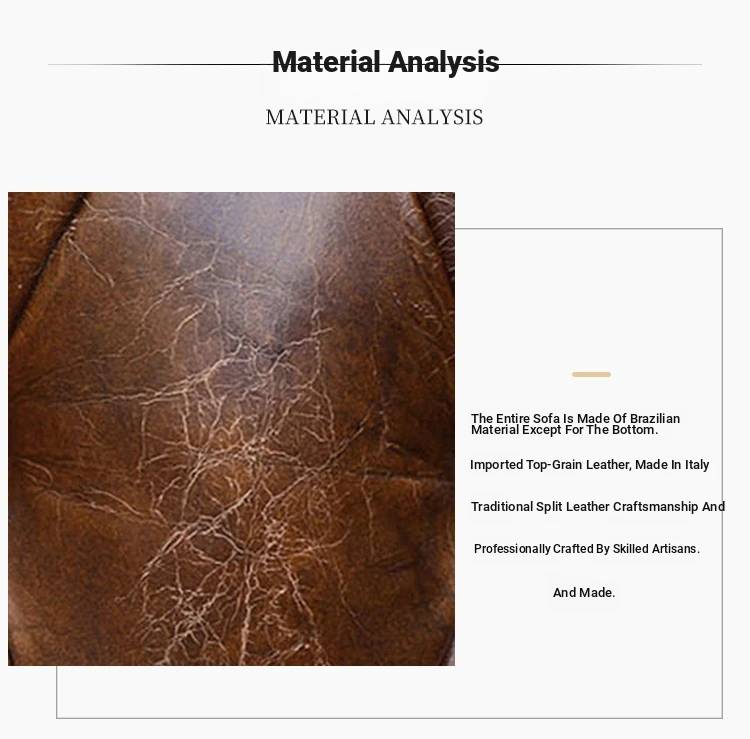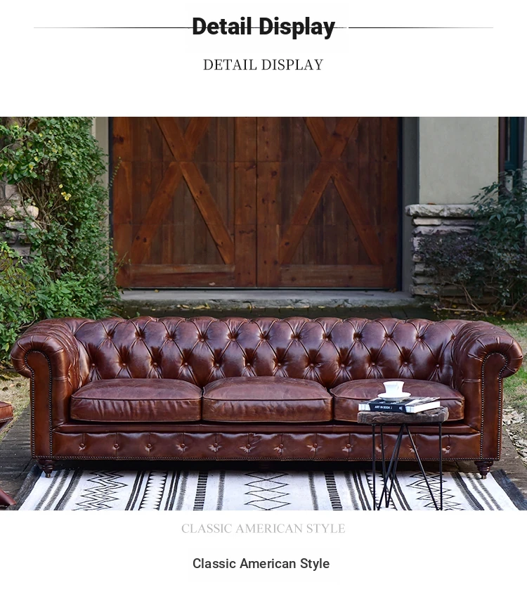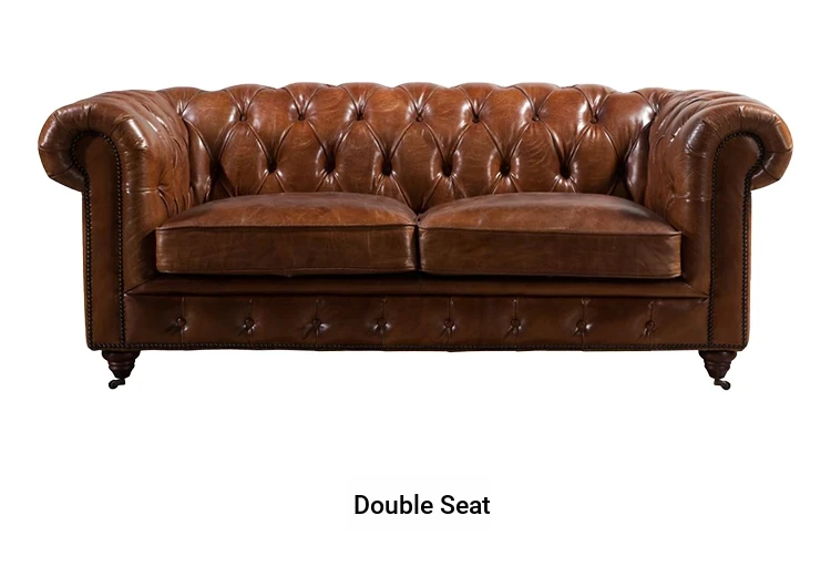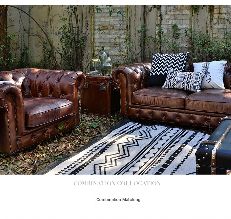 Kagulu Vintage Genuine Leather Sofa - Three-Seater European Style with Top Grain Waxed Cowhide for Living Room, Unique Shape Furniture