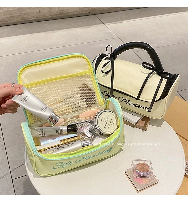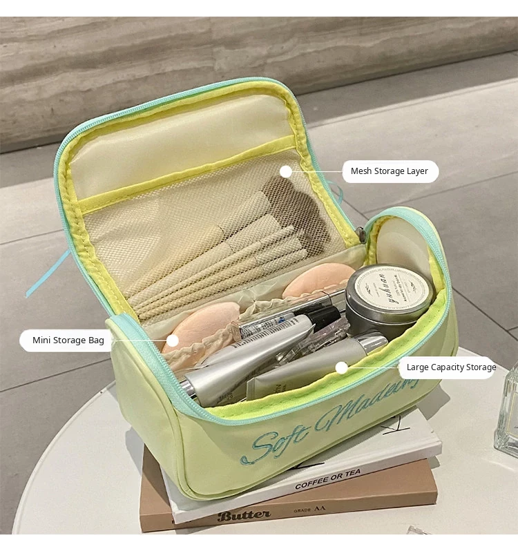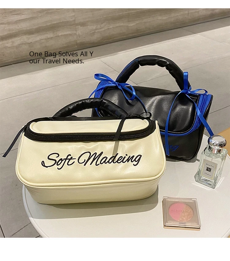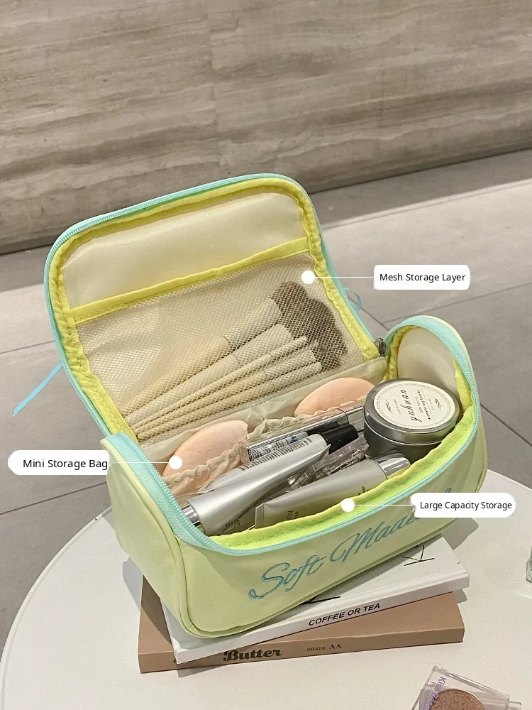 Large Capacity Ins Style Makeup Bag - Stylish Portable Travel Toiletry Case with Dividers for Organized Storage