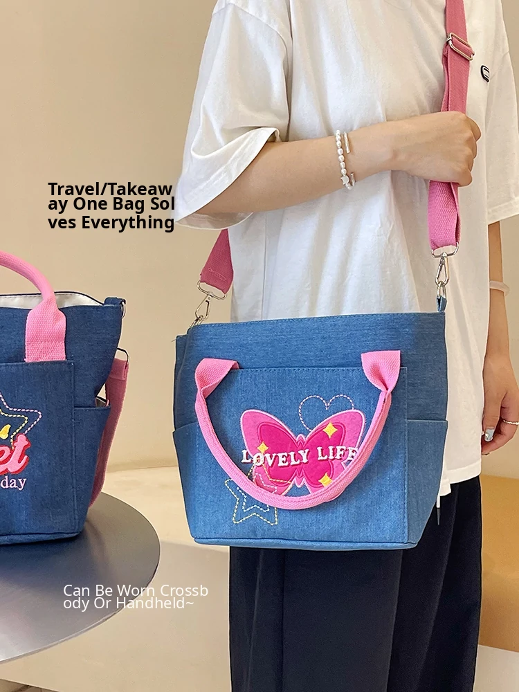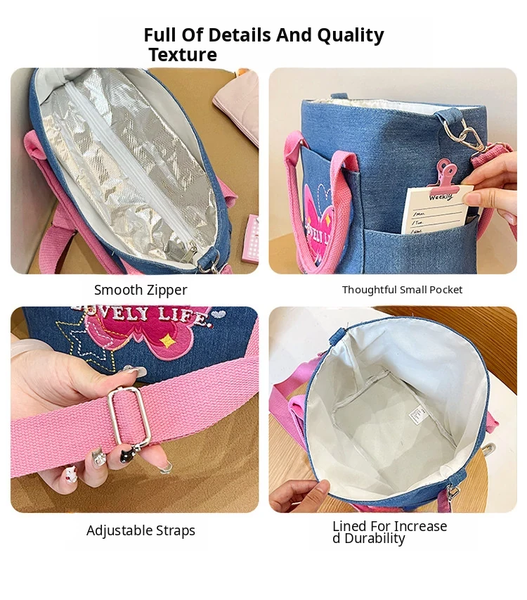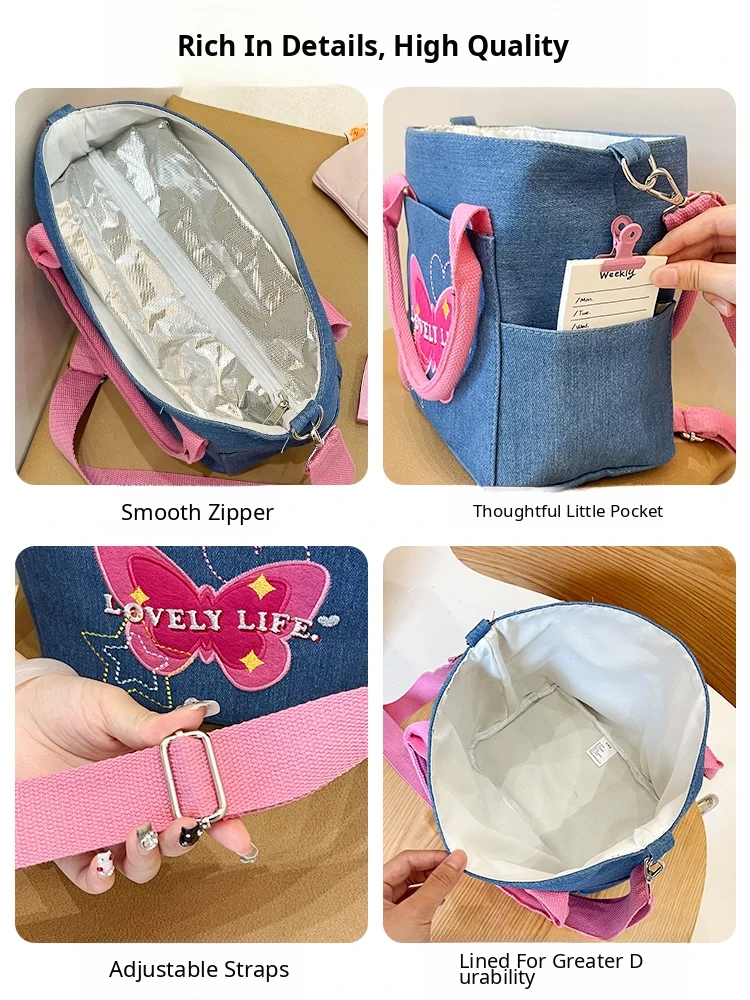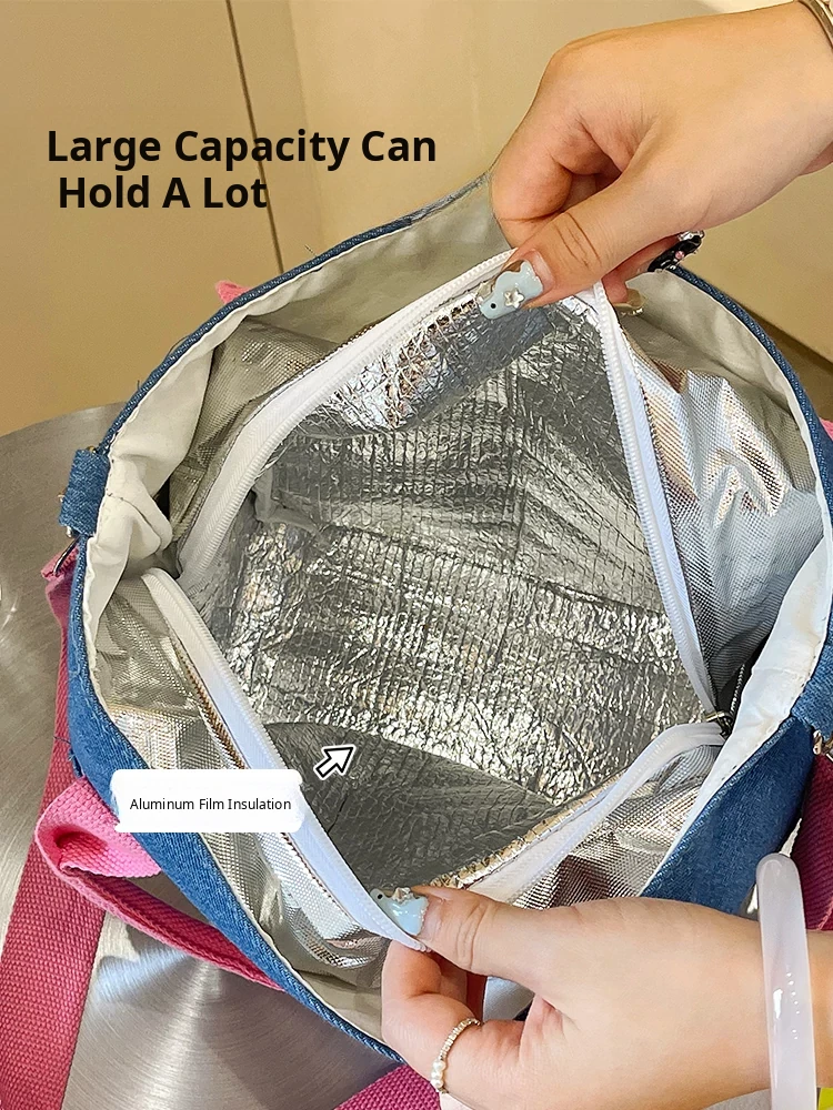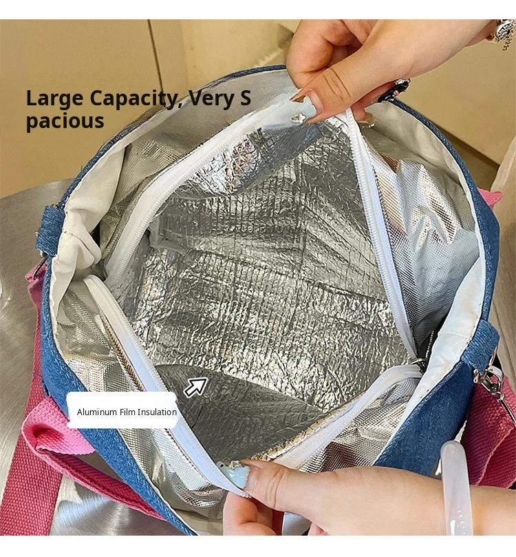 Large Capacity Insulated Canvas Crossbody Bag for Women - Stylish Denim Lunch Tote for Work, Perfect for Food Storage and Casual Use