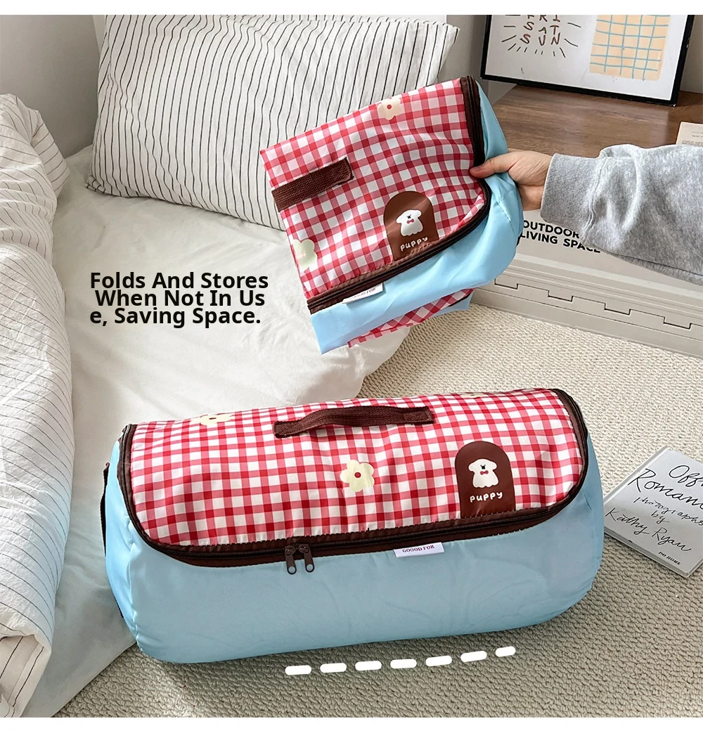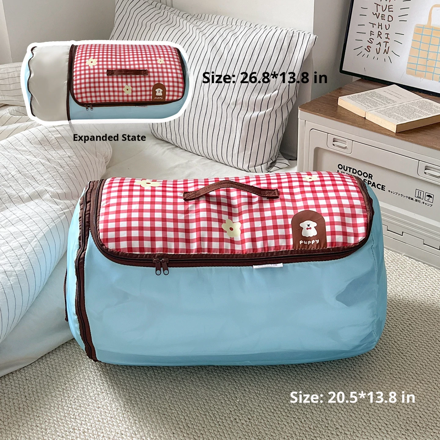 Red Plaid Puppy [Large Size] Zipper Compressible