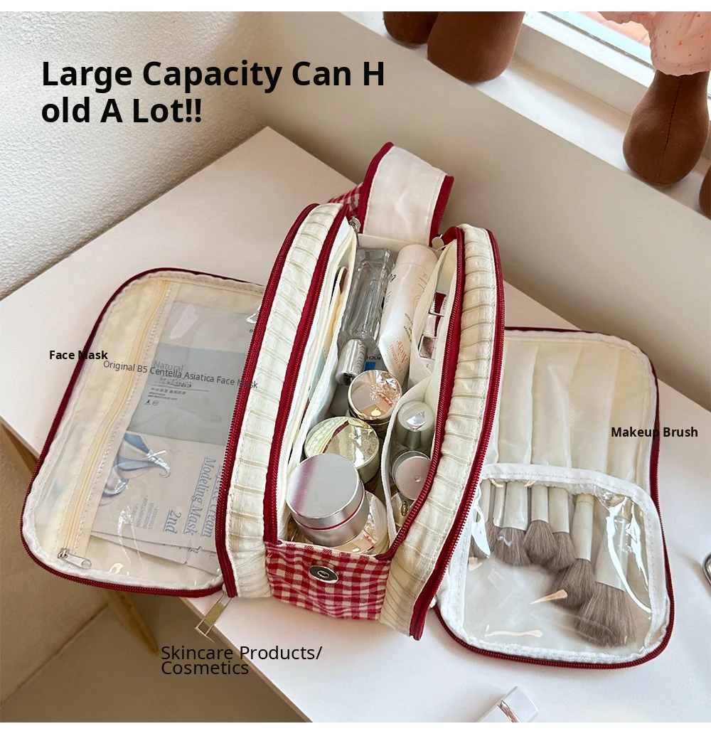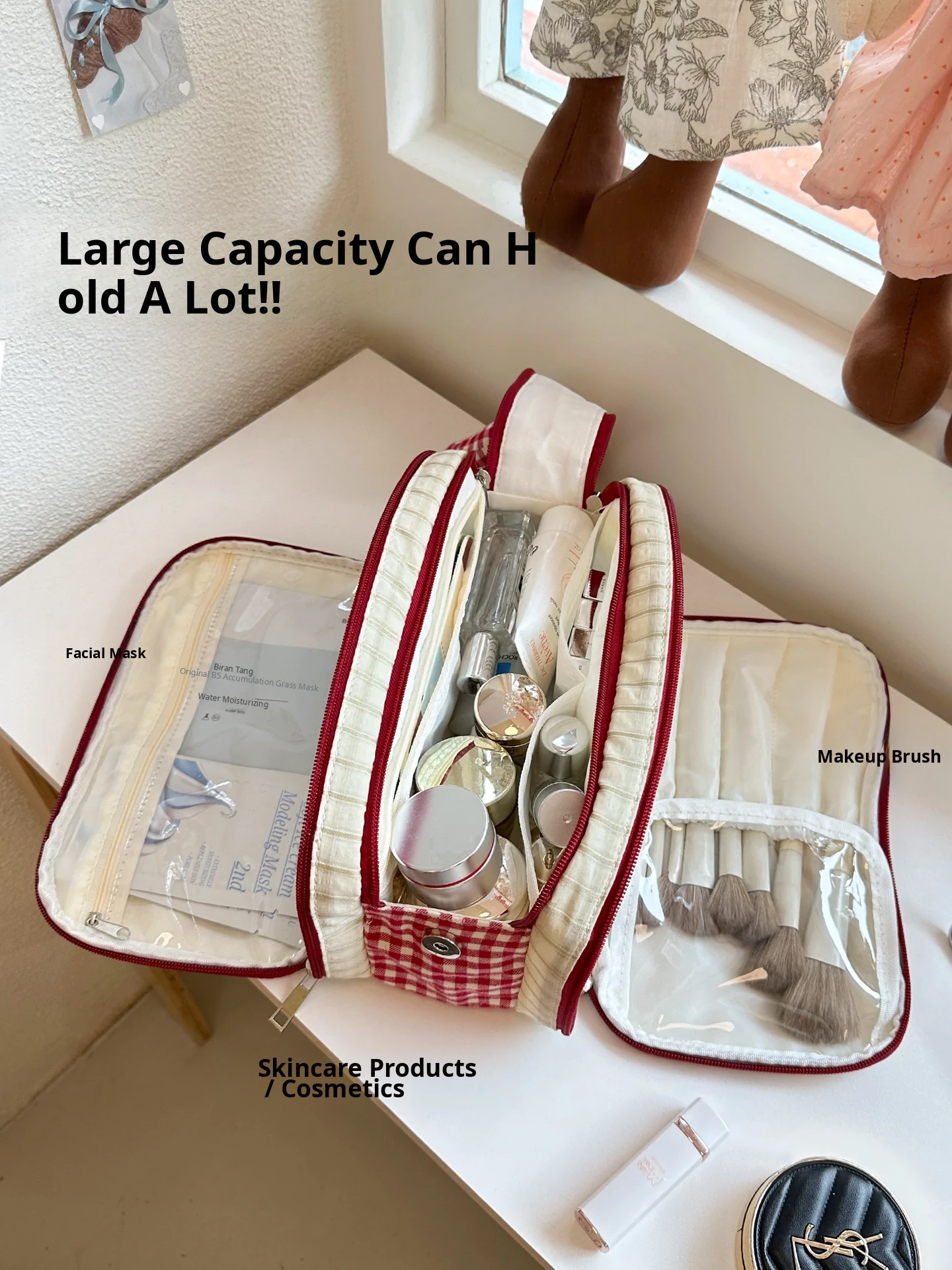 Large Capacity Travel Makeup Bag for Women - 2025 New High-End Skincare and Makeup Brush Organizer with Dividers, Perfect for On-the-Go Essentials!
