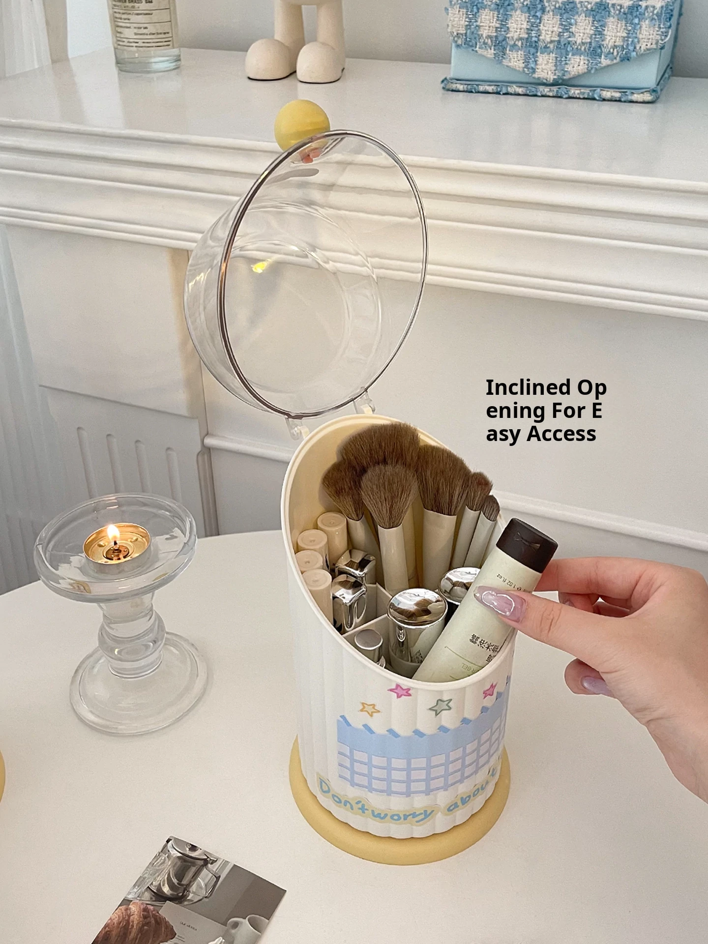Makeup Brush Organizer with Dividers - Dustproof Desktop Storage for Cosmetics, Lipsticks, and Eyeshadows - Stylish Vanity Holder for a Neat and Tidy Makeup Setup
