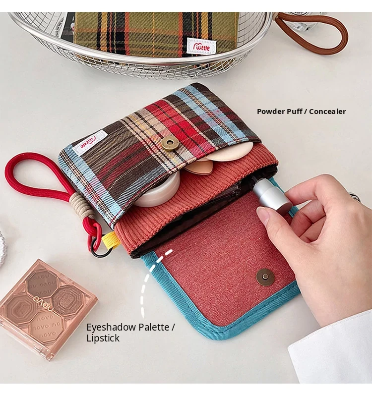 Mini Makeup Bag – Portable Cosmetic and Skincare Organizer with Chic Plaid Design for On-the-Go Beauty Essentials – New for 2025!